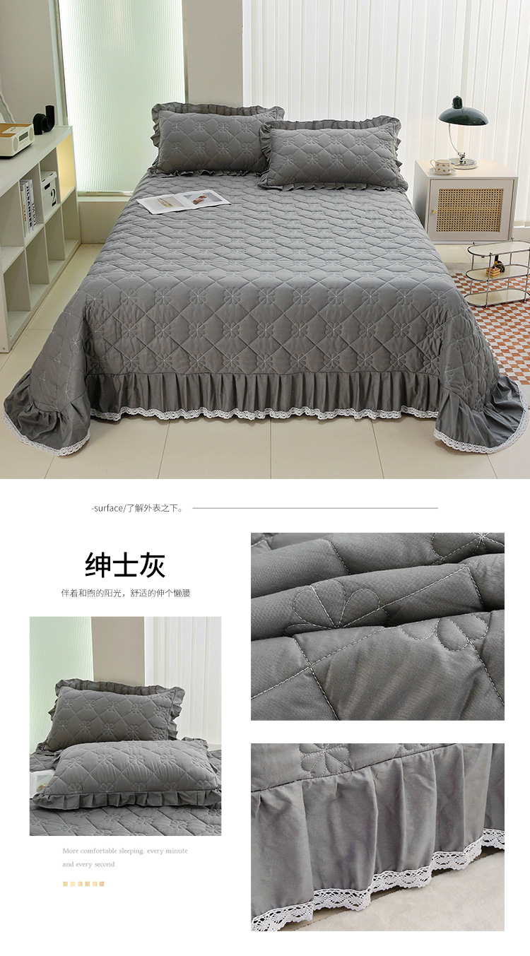 (总)情煊家纺 2023新款全棉夹棉纯色床盖三件套(可定制尺寸)