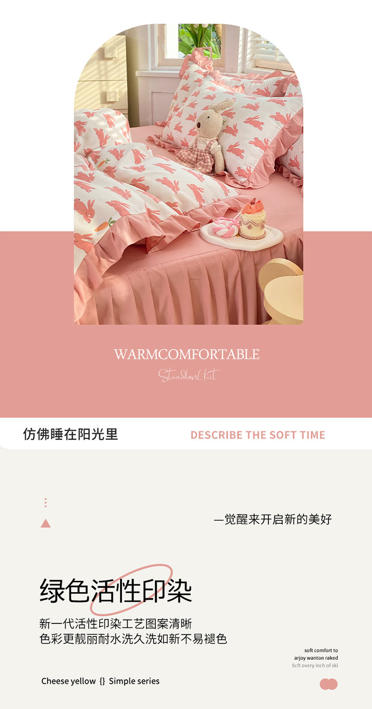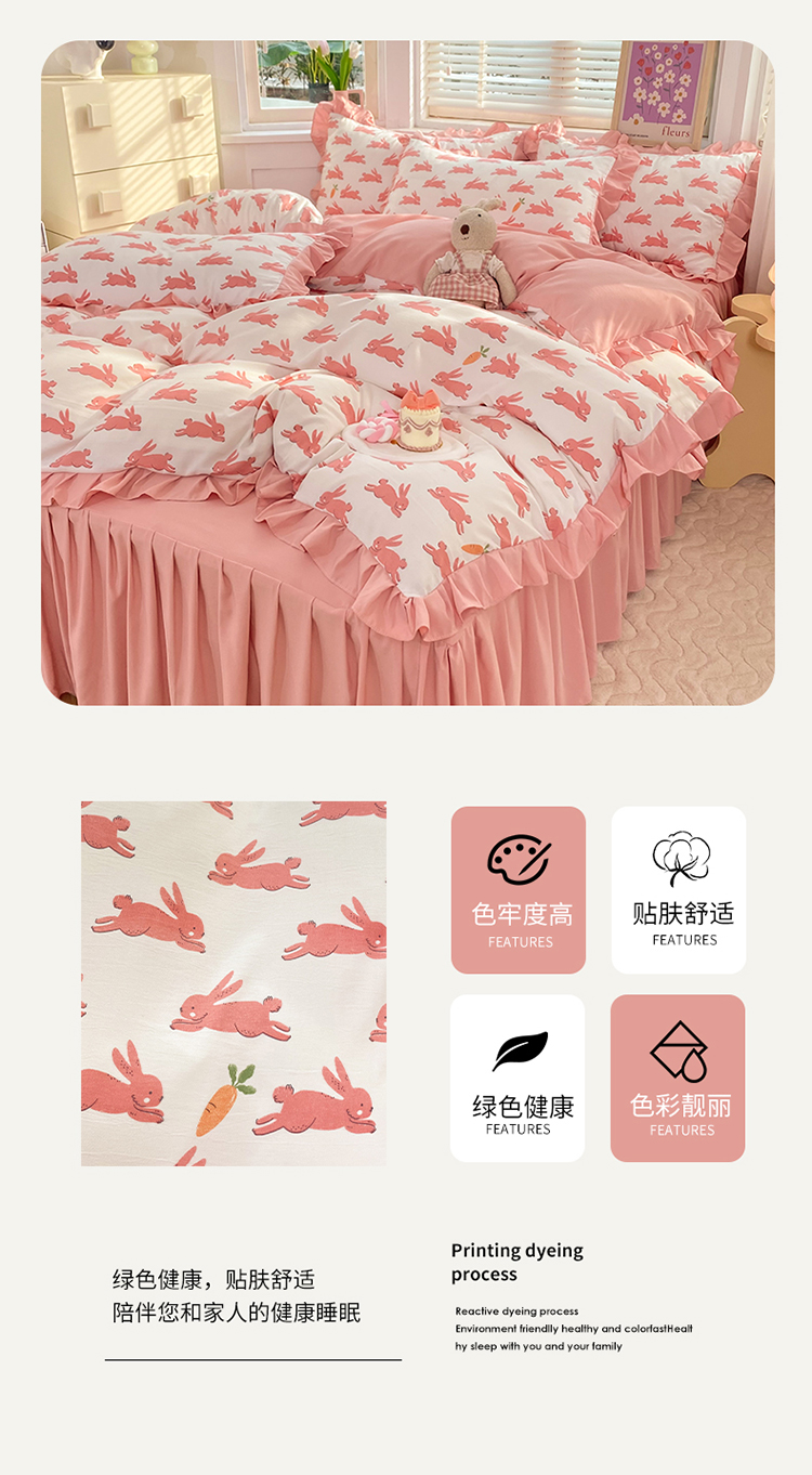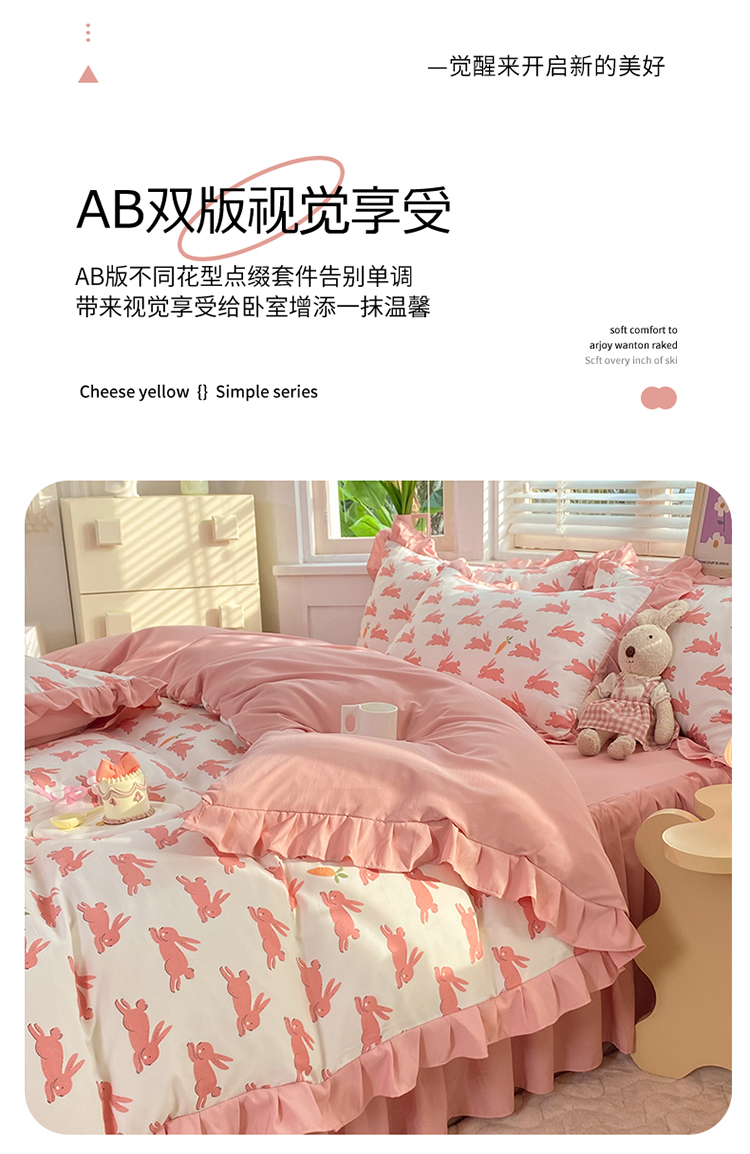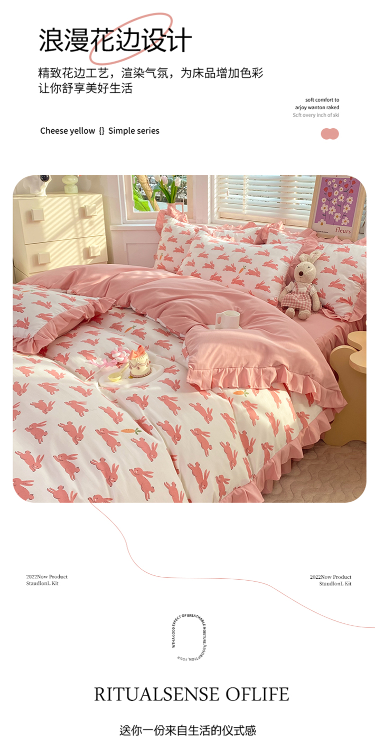 当前位置: 91家纺网 > 商品网购 > 床品套件 > 四件套 > 棉麻四件套 > 梦之岛 2023新款棉麻水洗双层纱床裙四件套 大展宏兔
