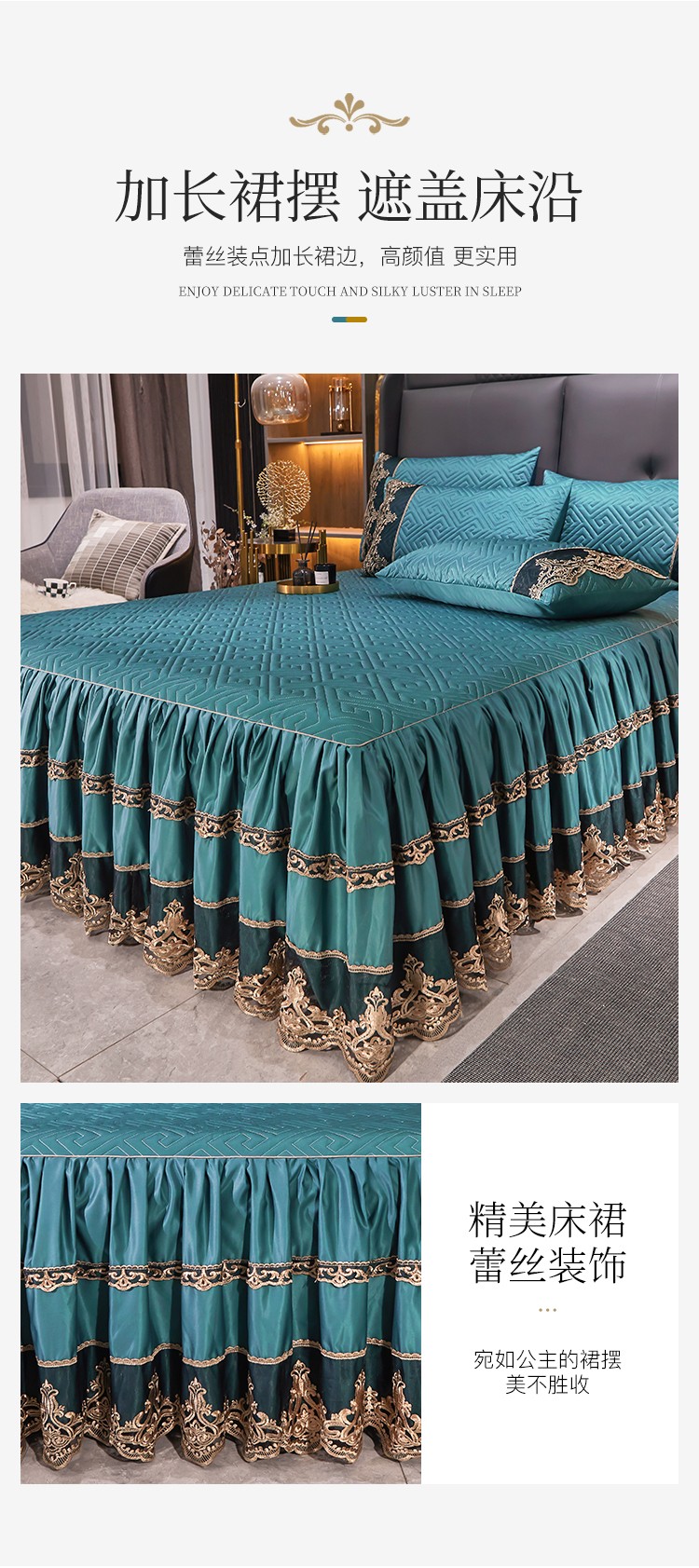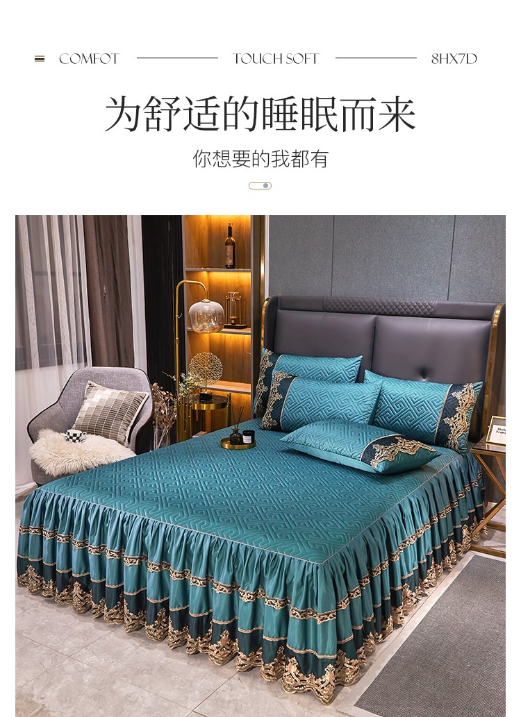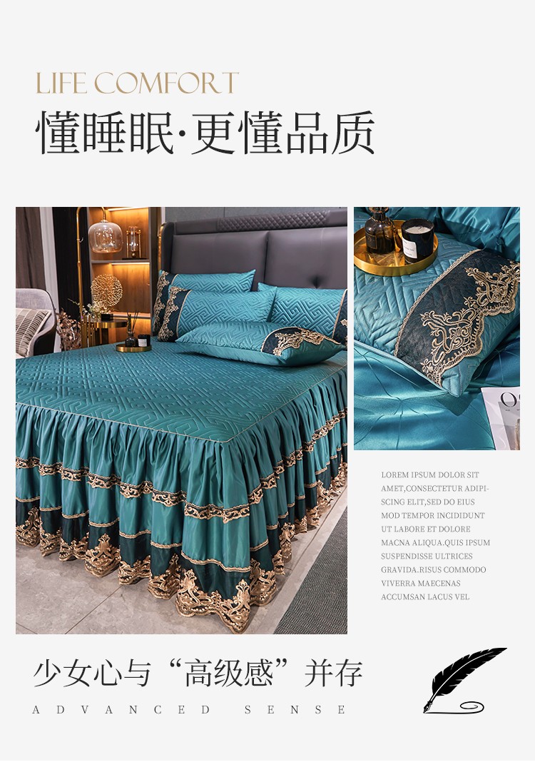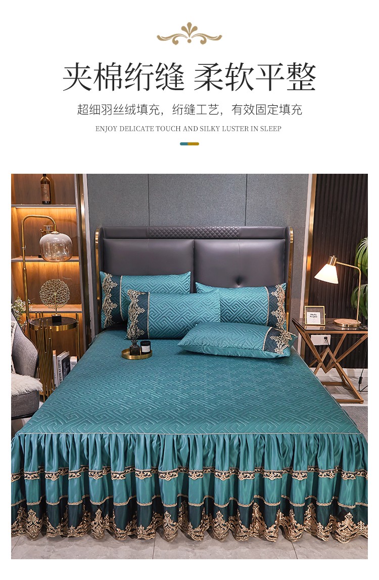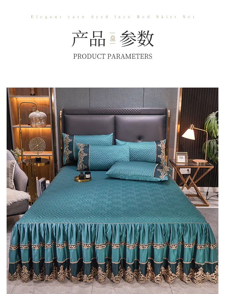 • 91家纺网 家纺一手货源 找家纺 罗艺轩 2024新款贡缎提花夹棉床裙尊享系列三件套 宾利兰
