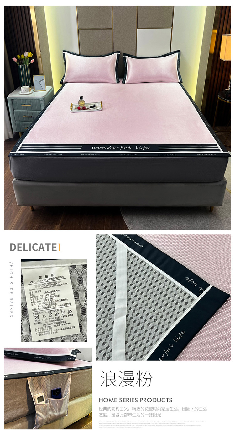 (总)宅部落 2025新款加厚牛奶绒泡泡绒单床笠床笠单品床笠单件,淡雅橙,深灰,星空灰,优雅白,优雅粉,优雅驼