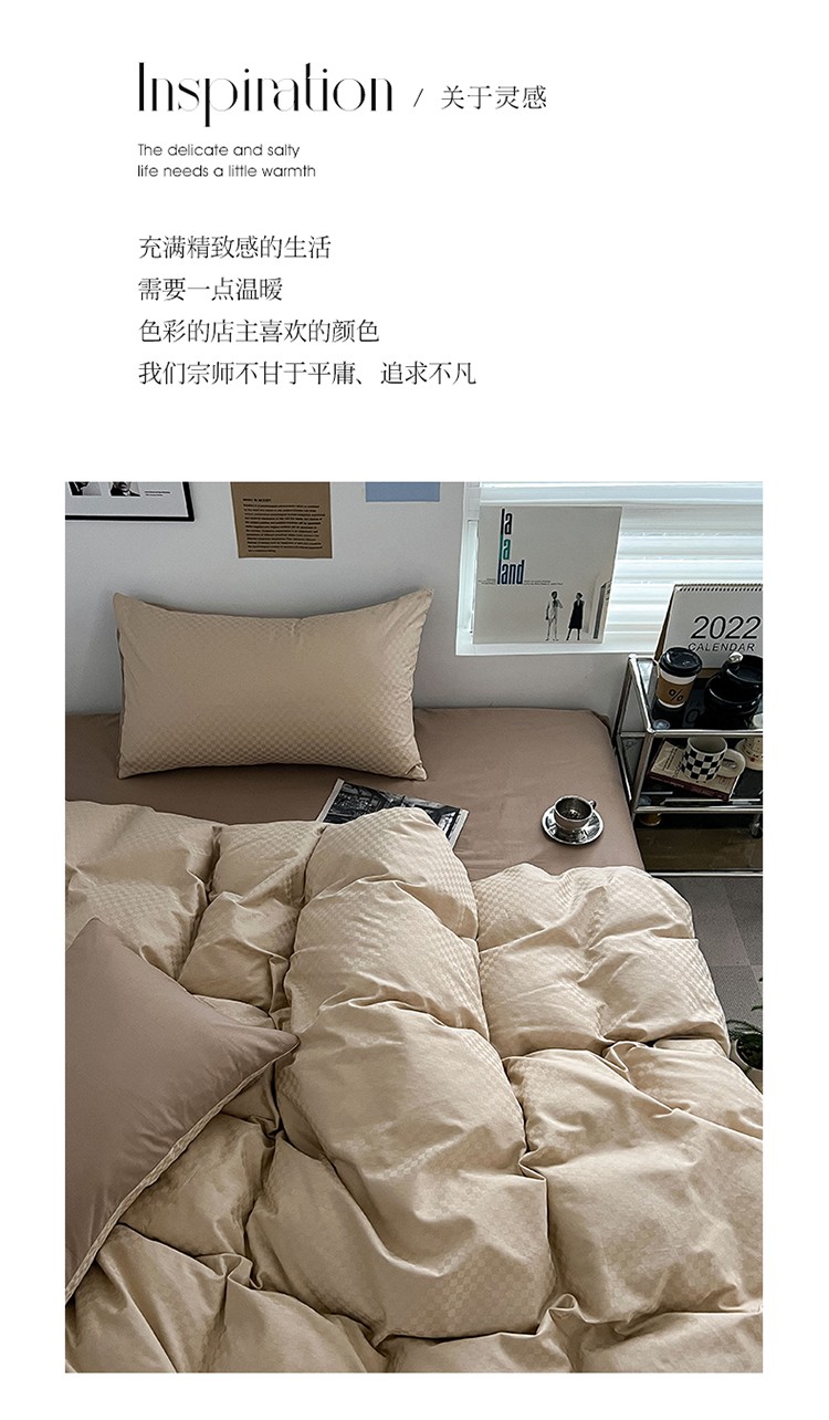 商品名称:三朵 2023新款提花混搭缎格DG系列四件套 可可棕