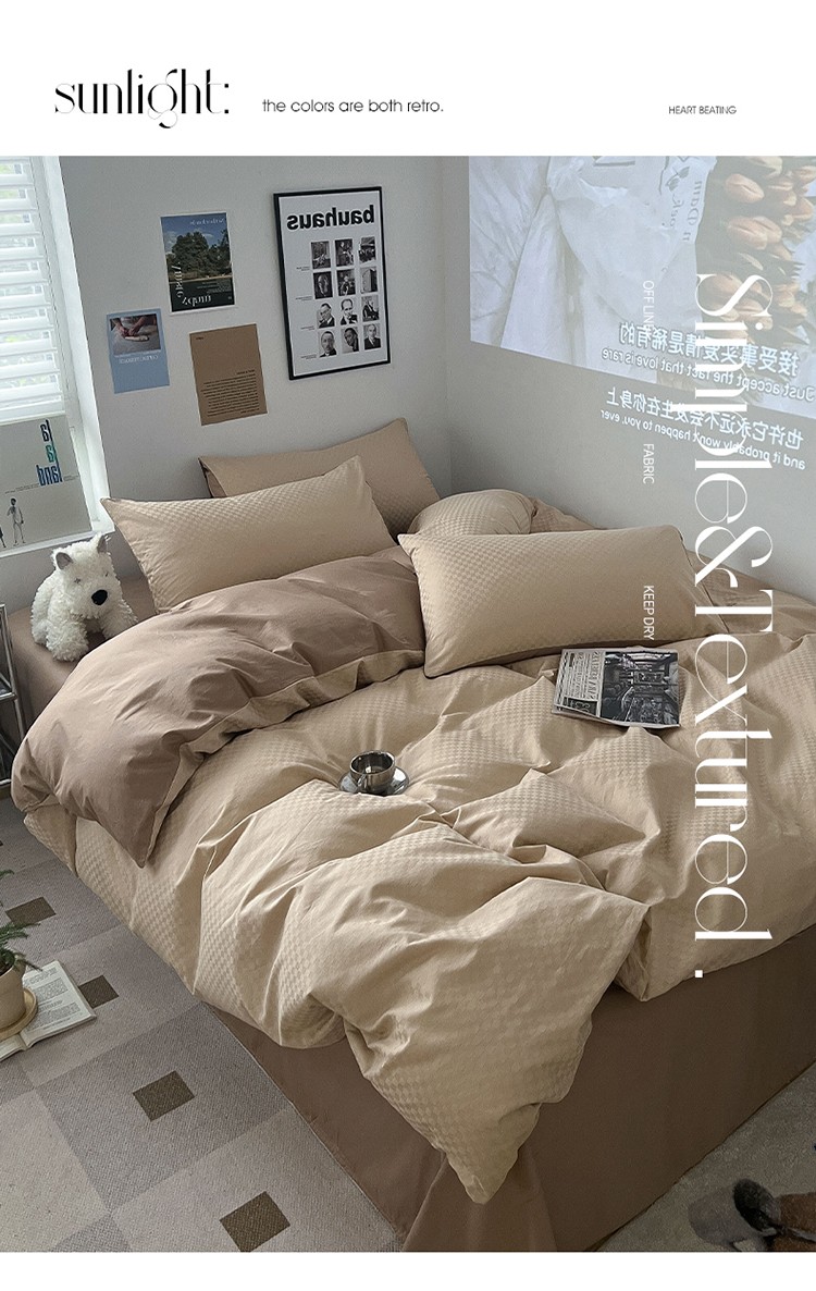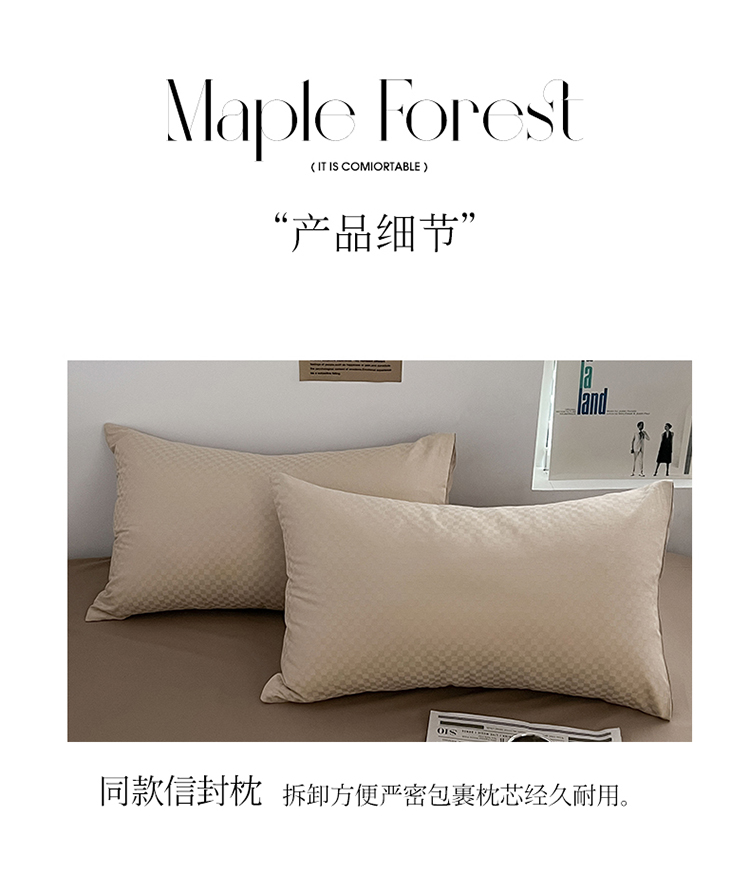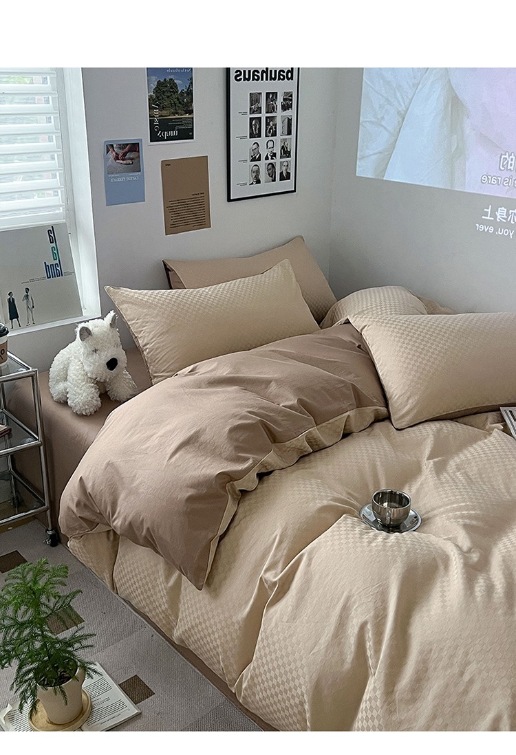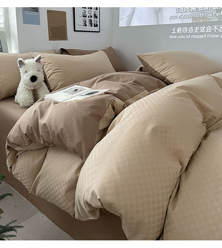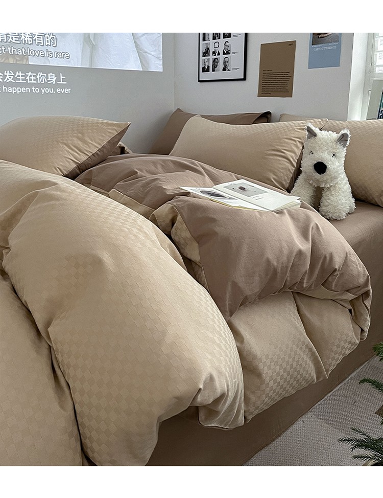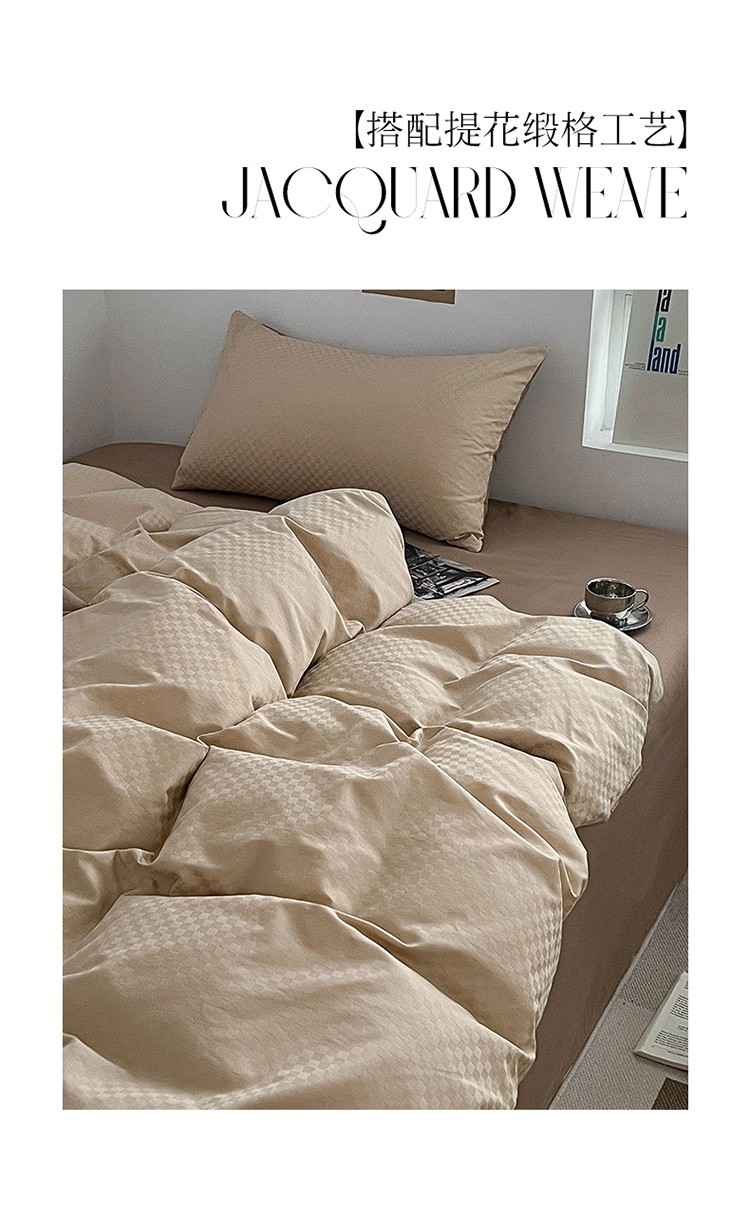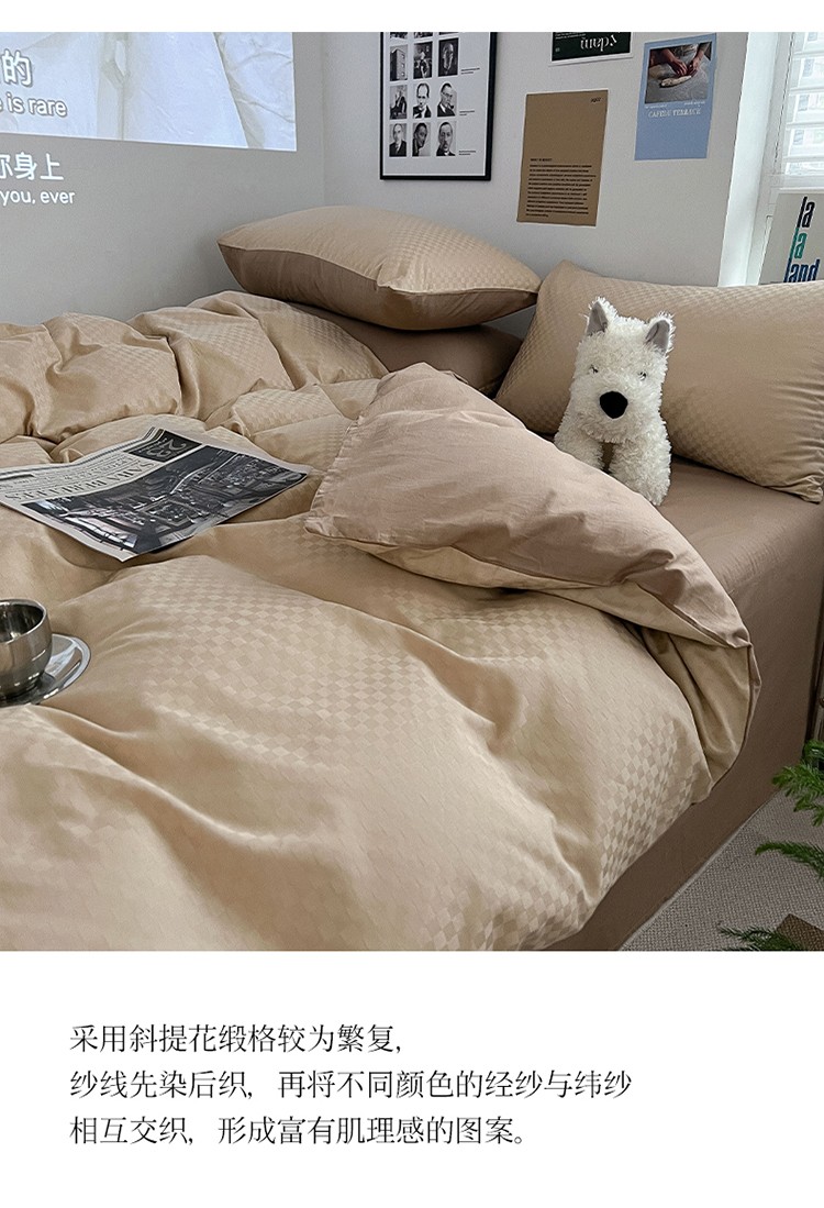 三朵 2023新款提花混搭缎格DG系列四件套 可可棕