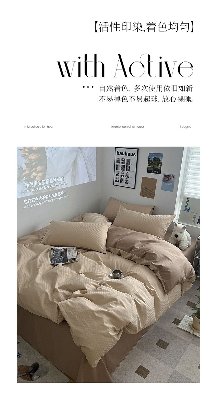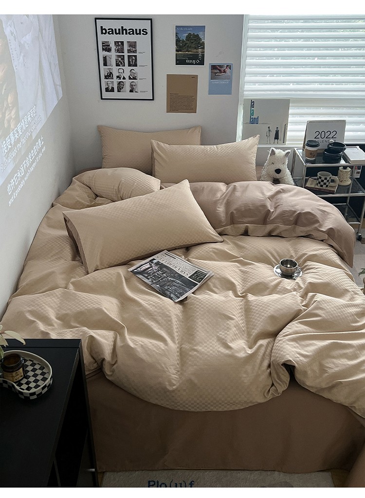 (总)三朵家纺 2026新款ins风全棉纯色双拼水洗棉四件套极简风系列,风青月白,焦糖曲奇,蓝韵雾纱,流光奶绿,抹茶奶黄,浅蓝芝士,香芋奶昔,烟墨灰,云纱可可