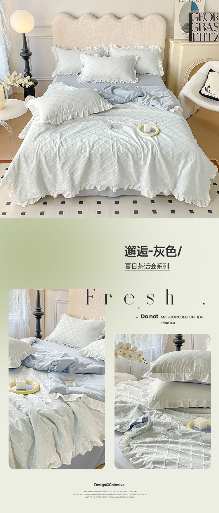 (总)澳梵家居 2023新款【夏日茶话会】系列-立体提花格夏被四件套