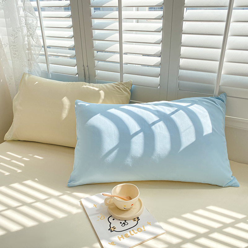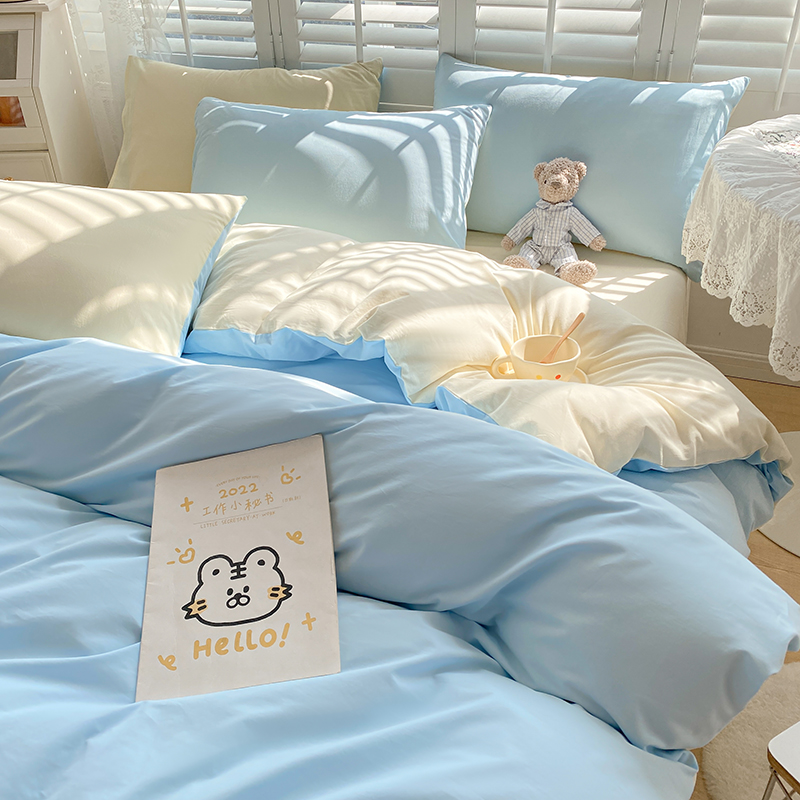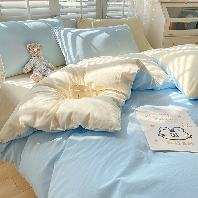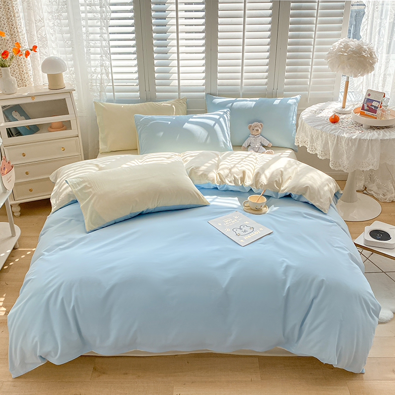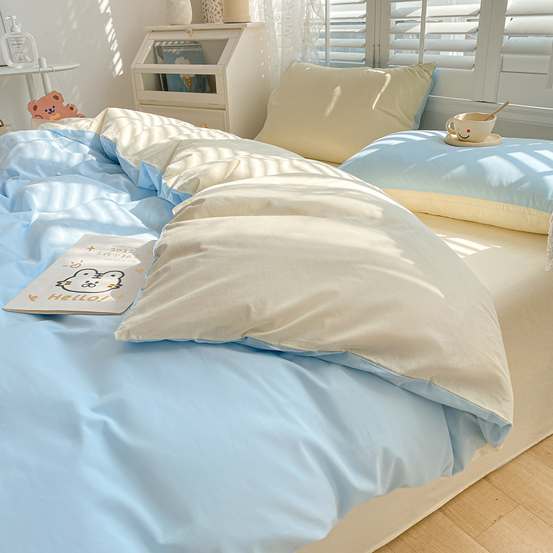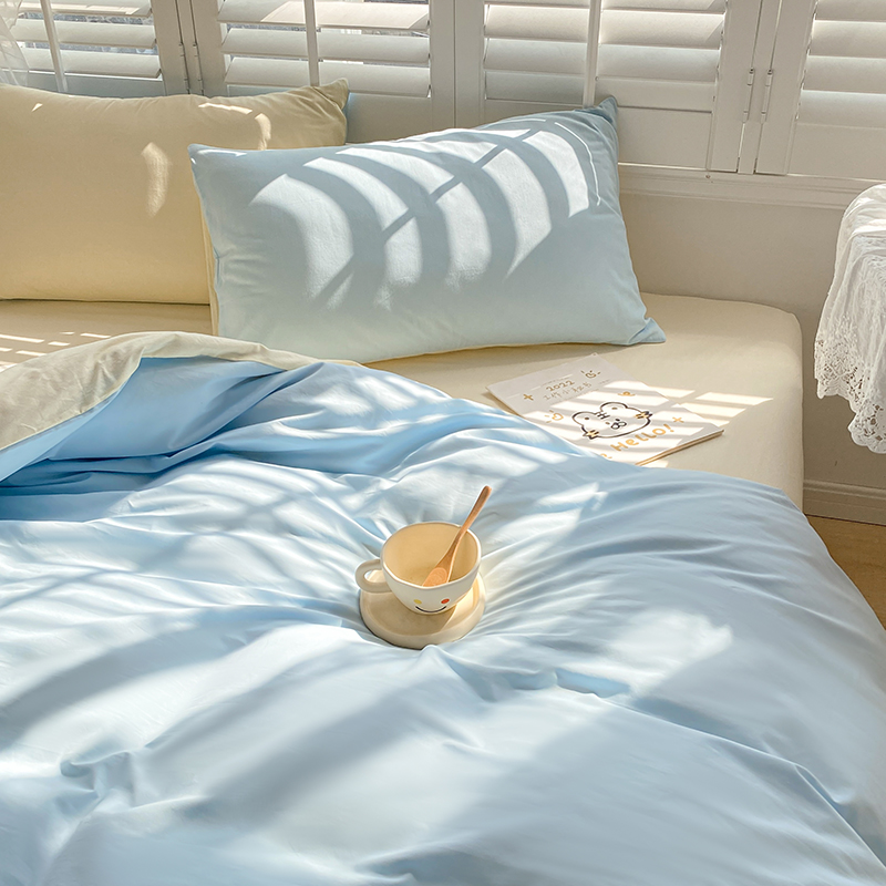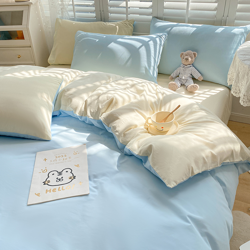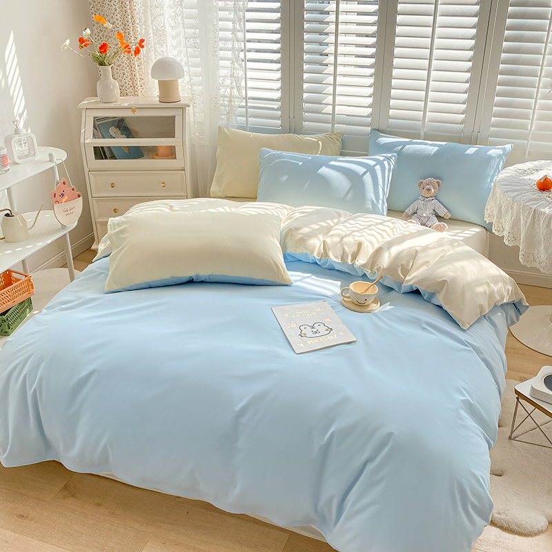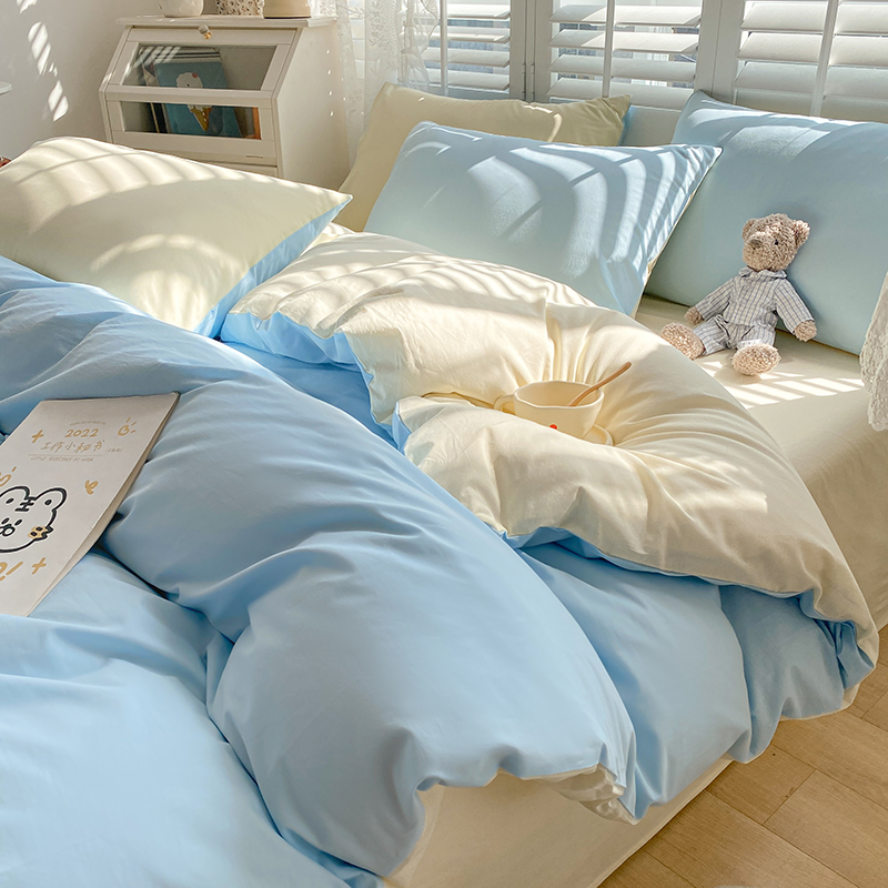 当前位置: 91家纺网 > 商品网购 > 床品套件 > 四件套 > 水洗棉四件套 > 盼季家纺 2023新款纯色双拼简约水洗棉四件套 蓝芝士双拼