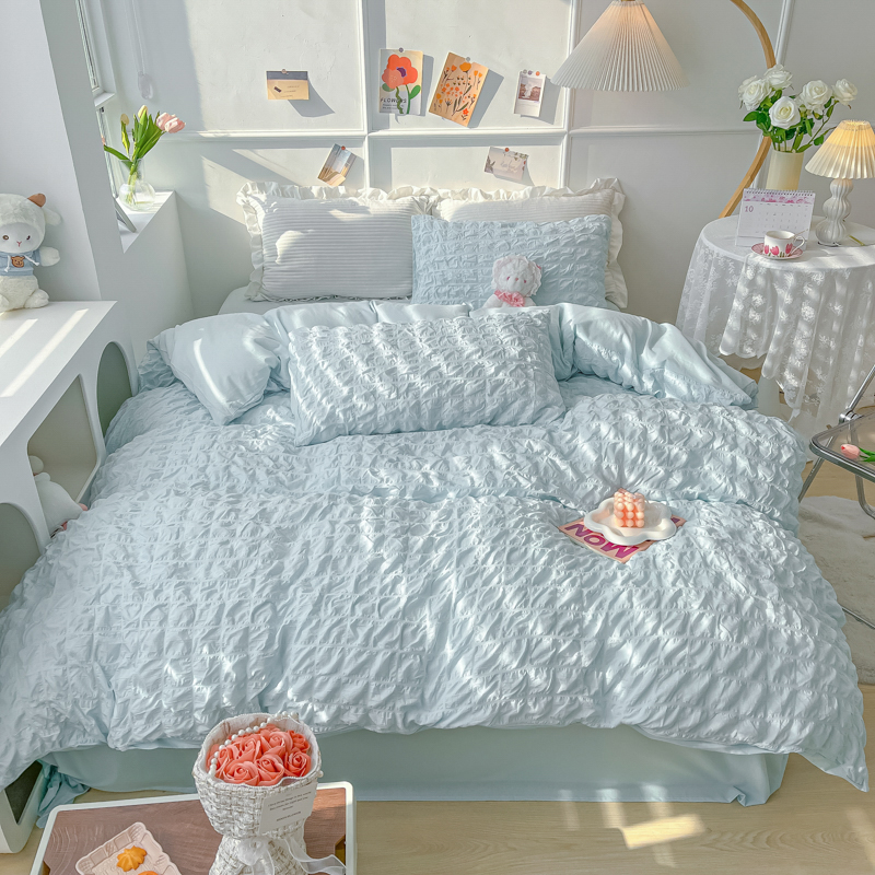 当前位置: 91家纺网 > 商品网购 > 床品套件 > 四件套 > 水洗棉四件套 > 盼季家纺2023款春夏简约小清新泡泡纱水洗棉床上四件套 格子泡泡-奶蓝