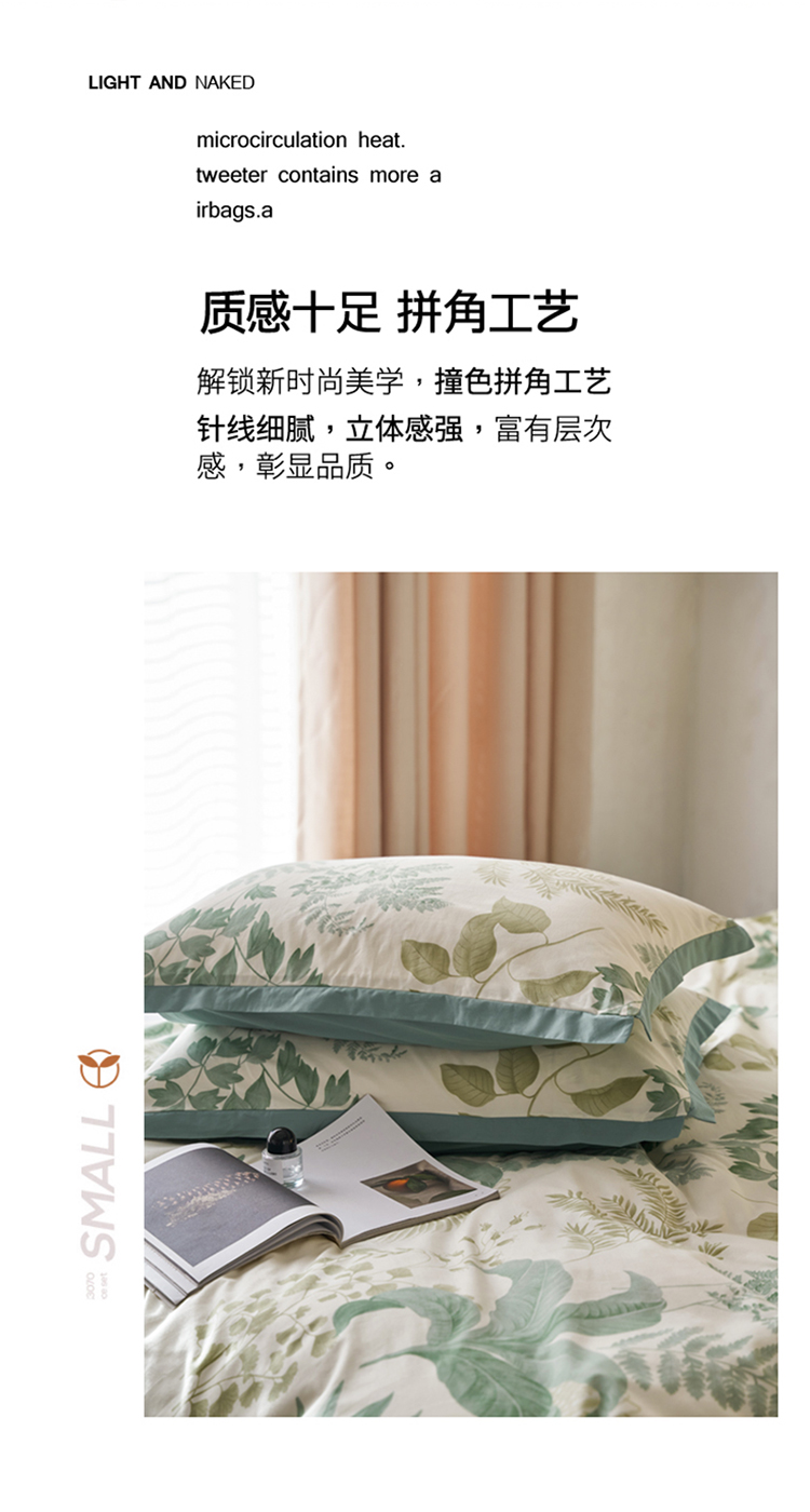 千朵森 2024新款全棉长绒棉拼角款印花四件套 绿茵