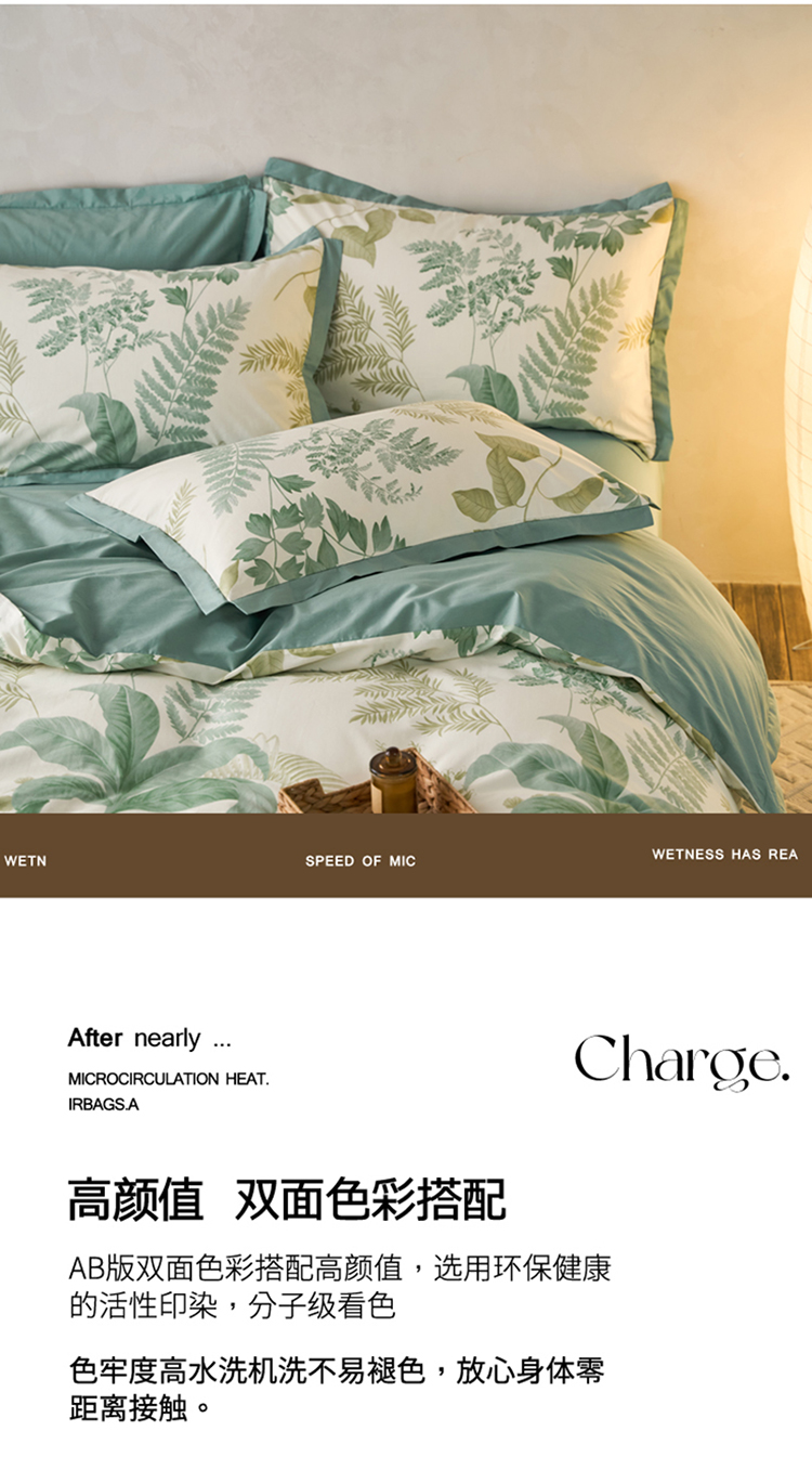 商品名称:千朵森 2024新款全棉长绒棉拼角款印花四件套 绿茵