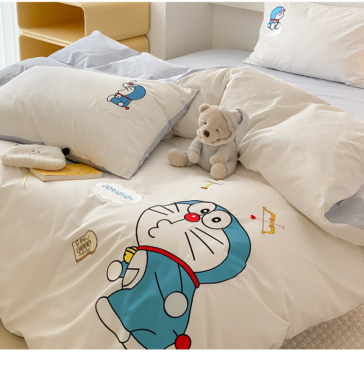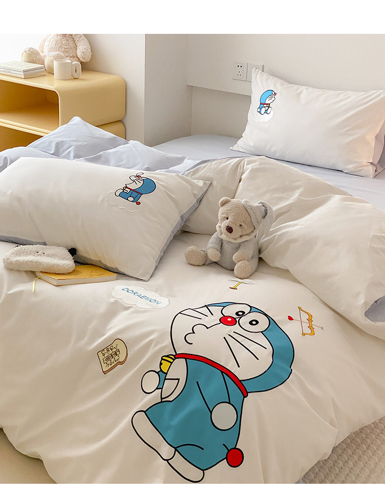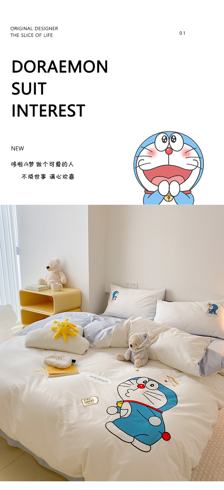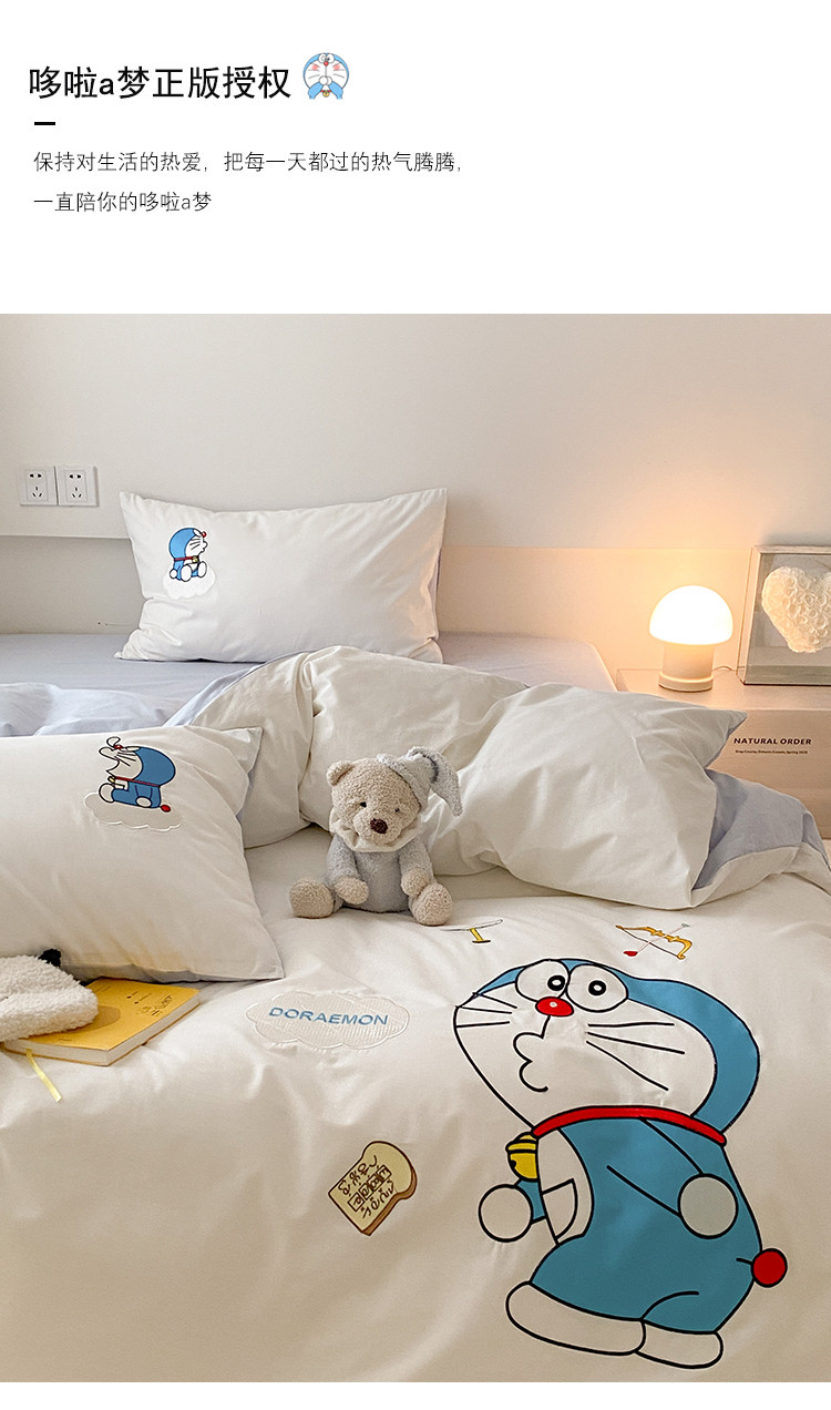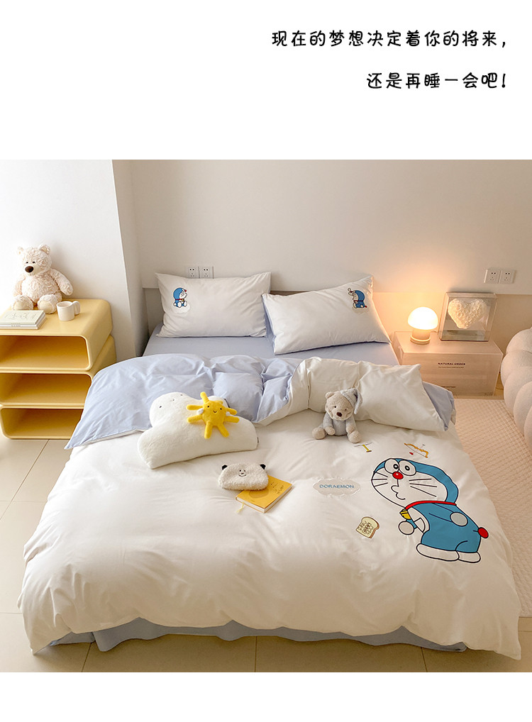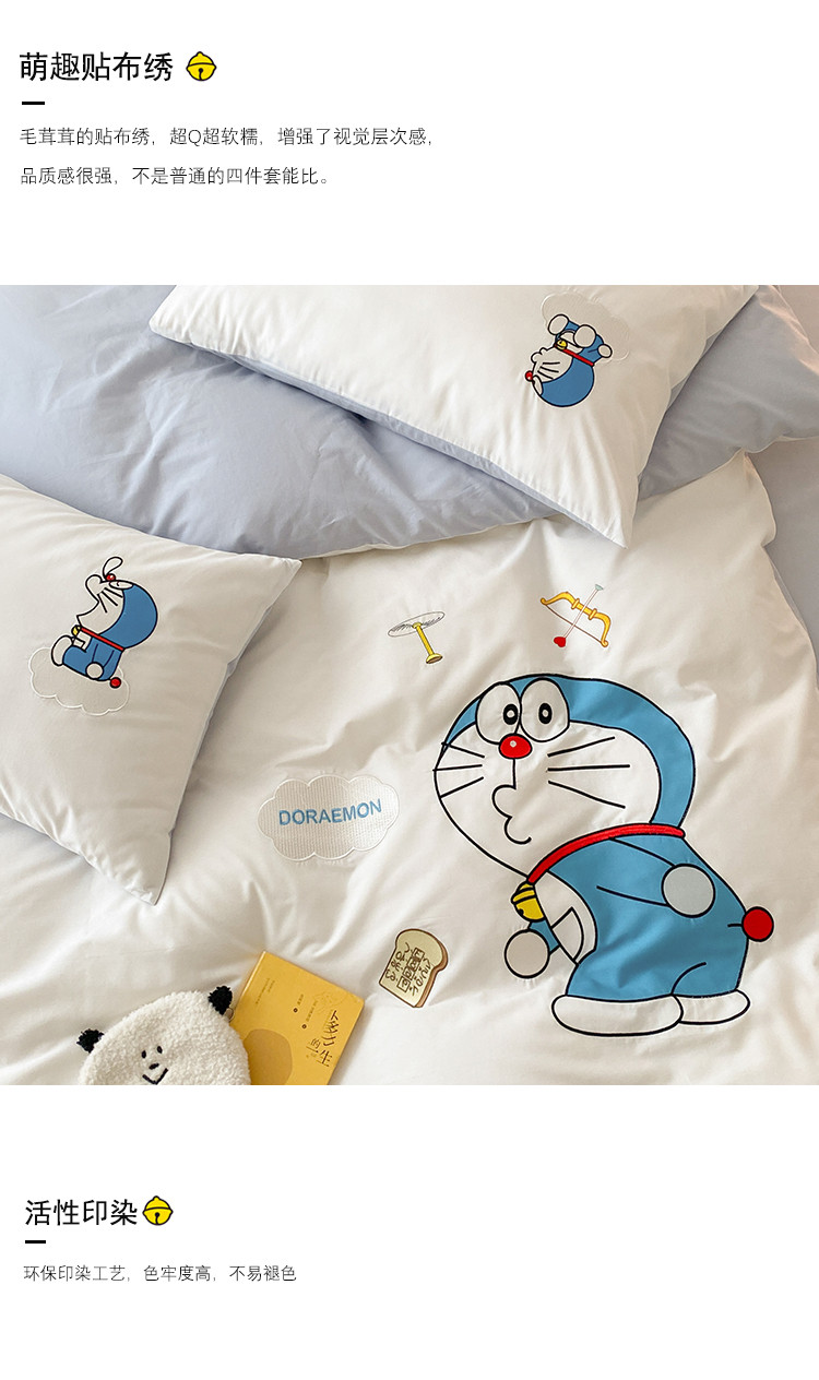 猪先生 2023新款 叮当猫纯棉绣花四件套 嘟嘟嘴白蓝