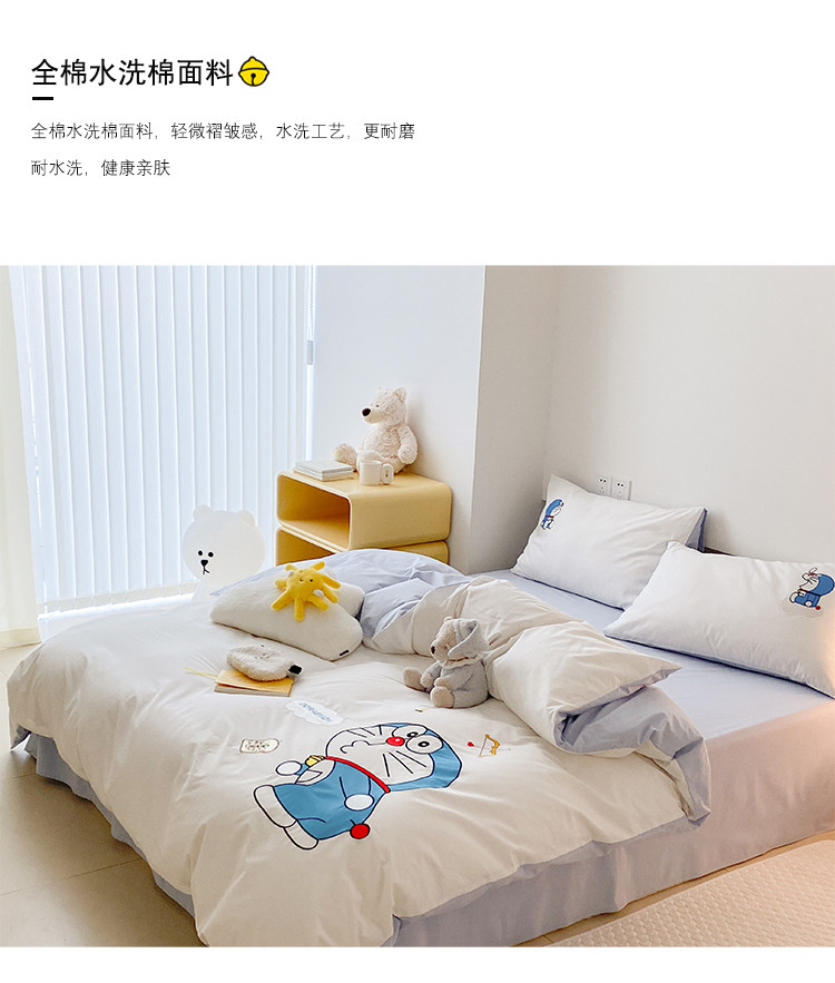 商品名称:猪先生 2023新款 叮当猫纯棉绣花四件套 嘟嘟嘴白蓝