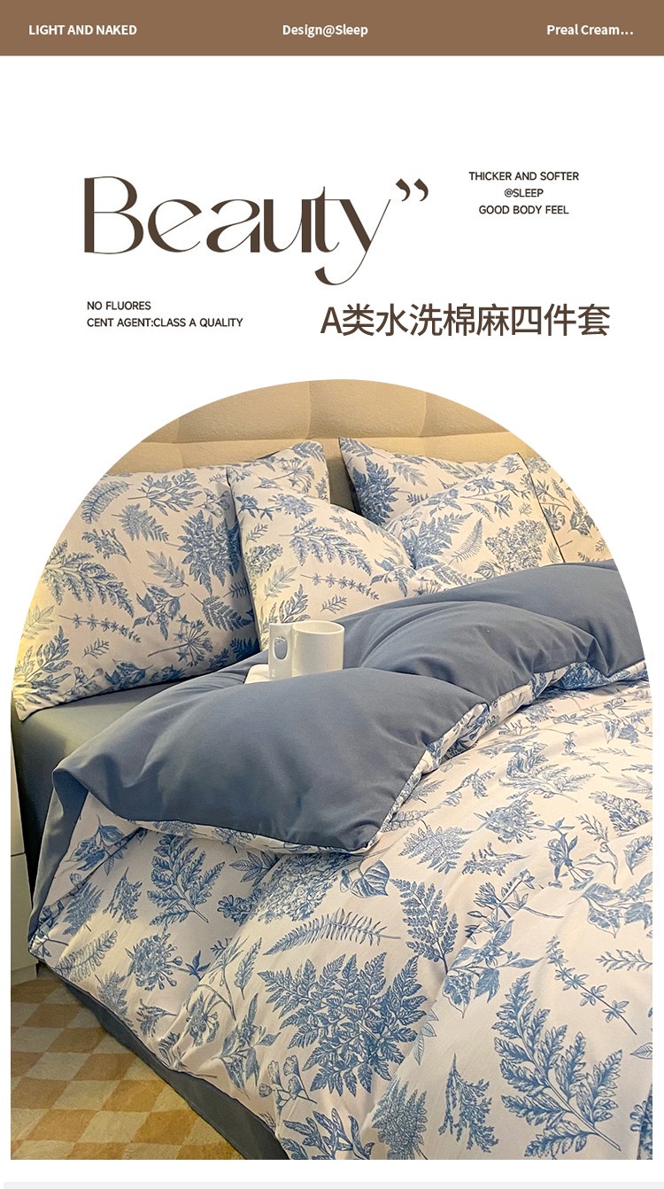 妖妖家纺2023新款水洗棉麻四件套 简约