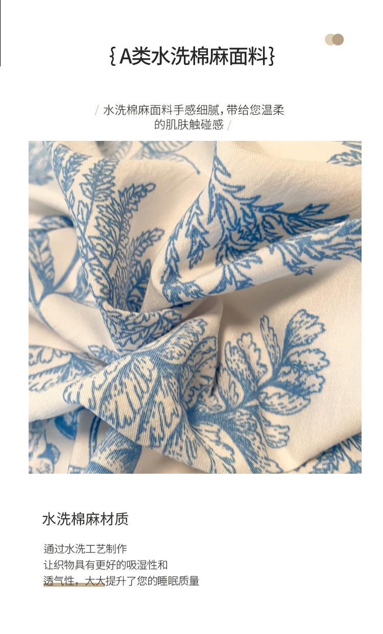商品名称:妖妖家纺2023新款水洗棉麻四件套 简约