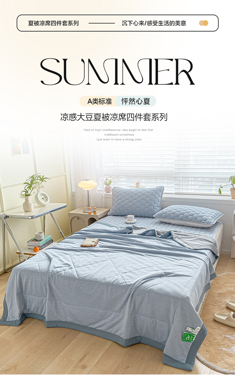 当前位置: 91家纺网 > 商品网购 > 床上用品 > 凉席 > 凉席套件 > 东宇 2023新款凉感大豆夏被凉席四件套系列 条纹蓝