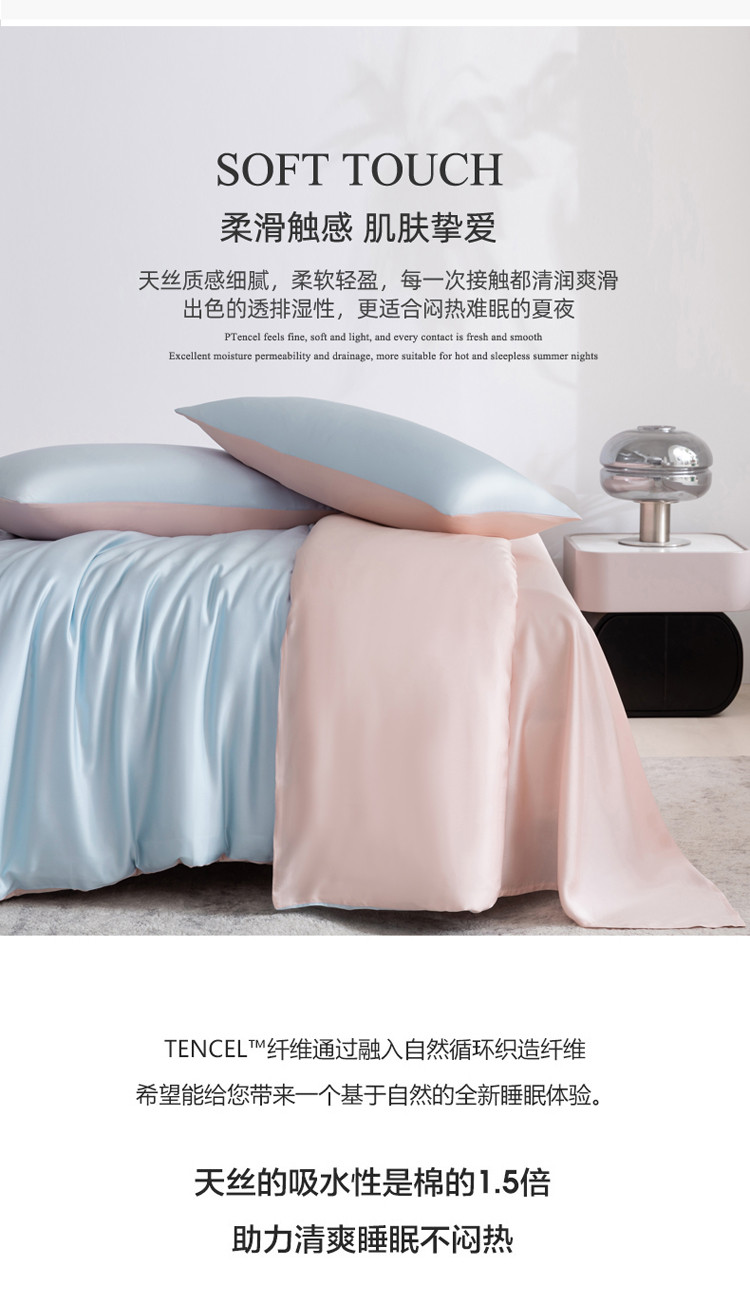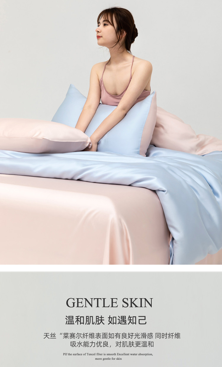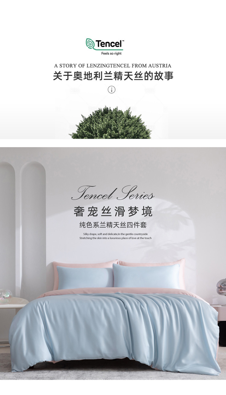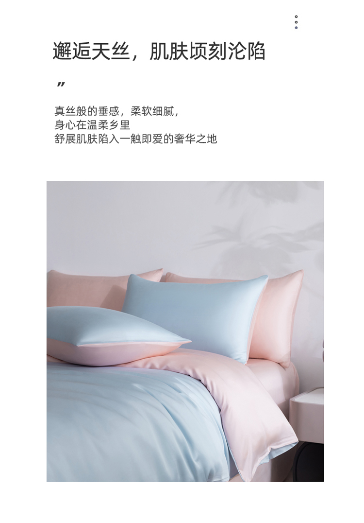 当前位置: 91家纺网 > 商品网购 > 床品套件 > 四件套 > 莱赛尔四件套 > 轩和新款50支纯色天丝四件套单品被套床单床笠枕套系列 夏日蓝+告白粉