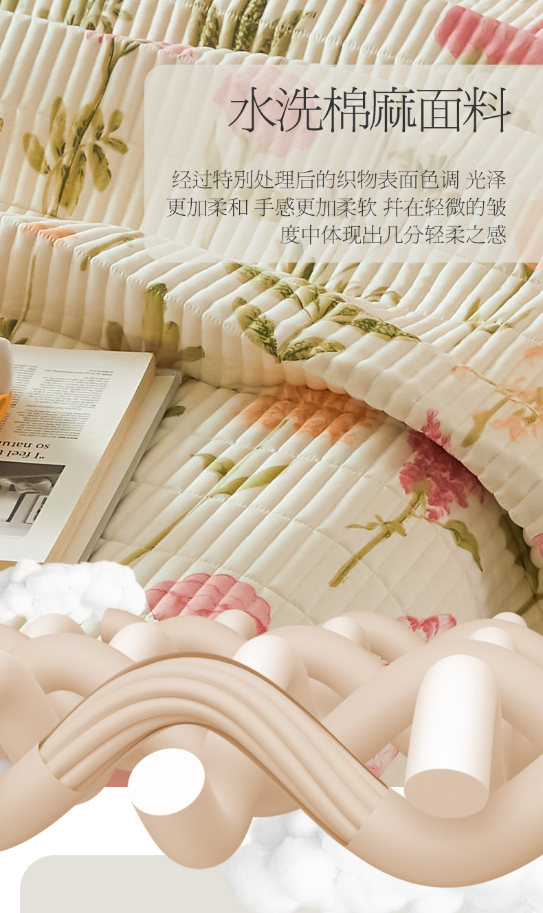 商品名称:水洗棉麻床盖大豆纤维夹棉加厚宿舍铺盖两用床单床裙保护垫 繁花似锦