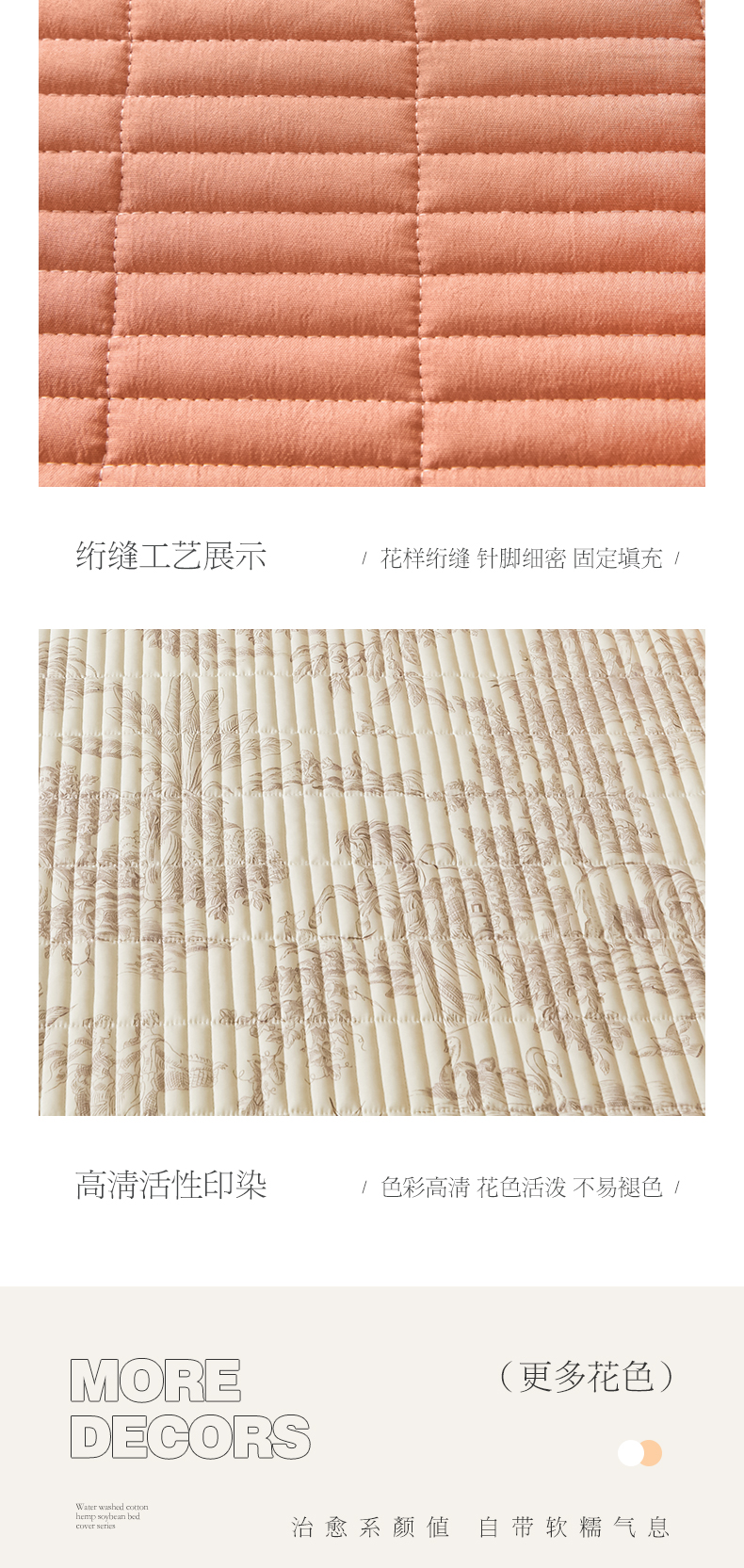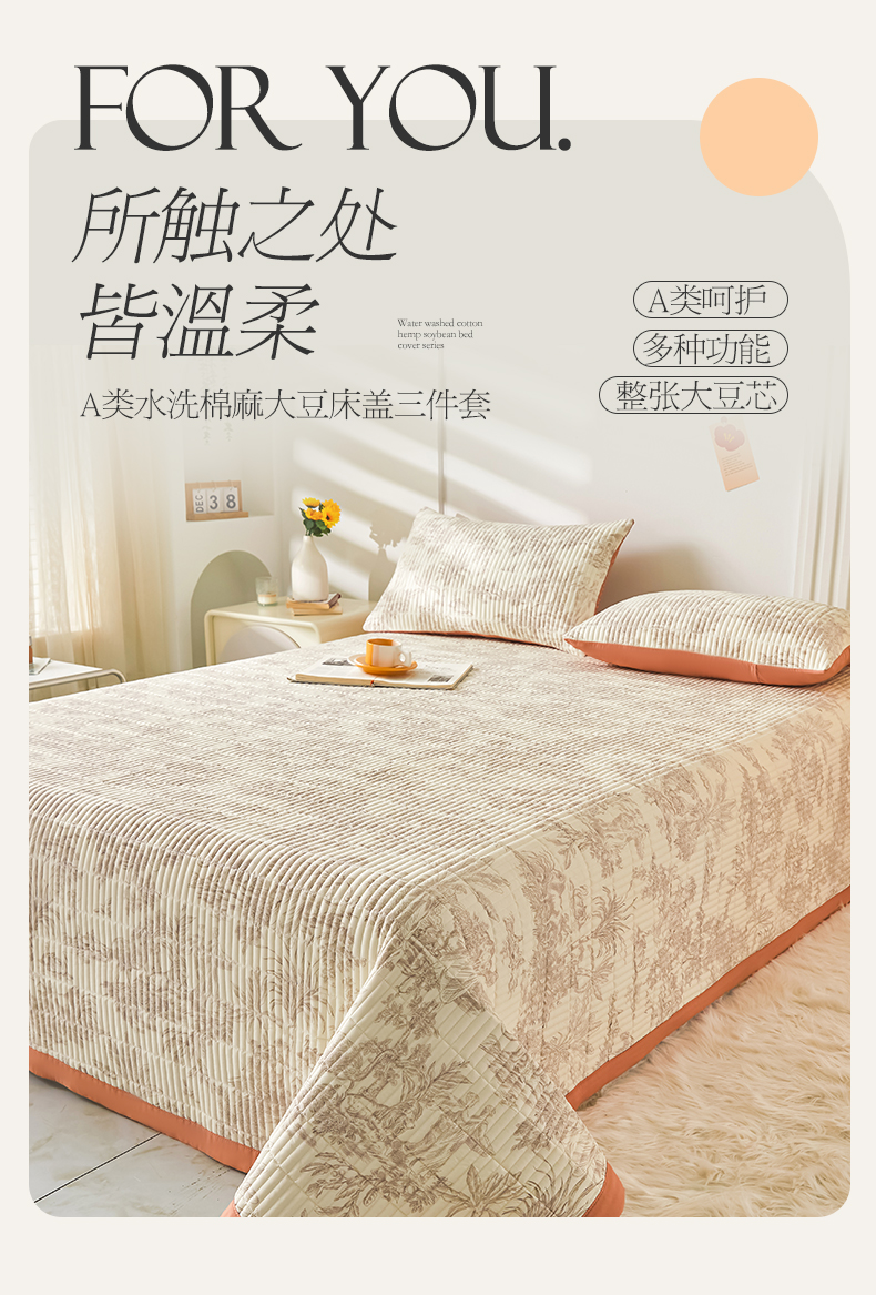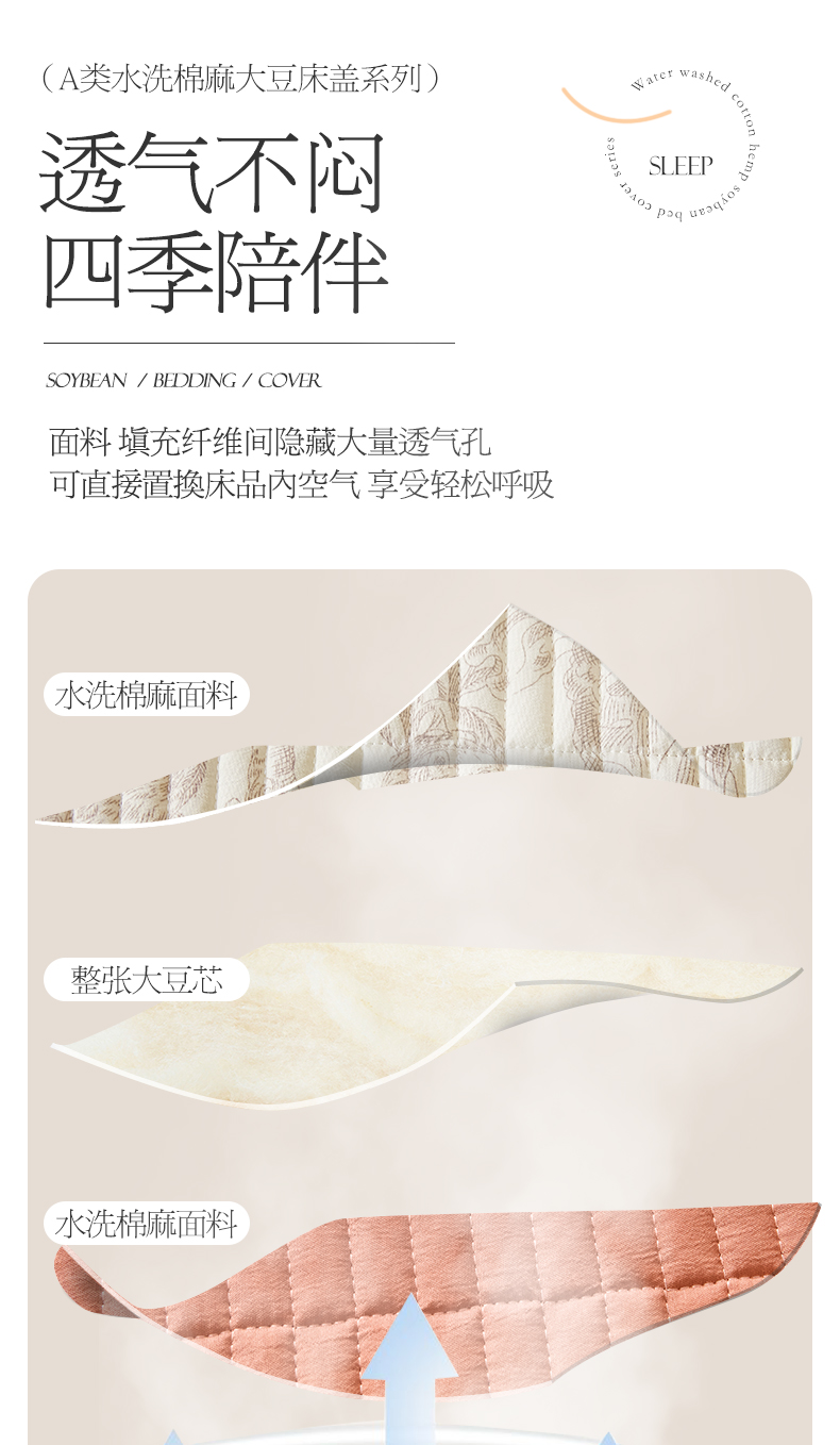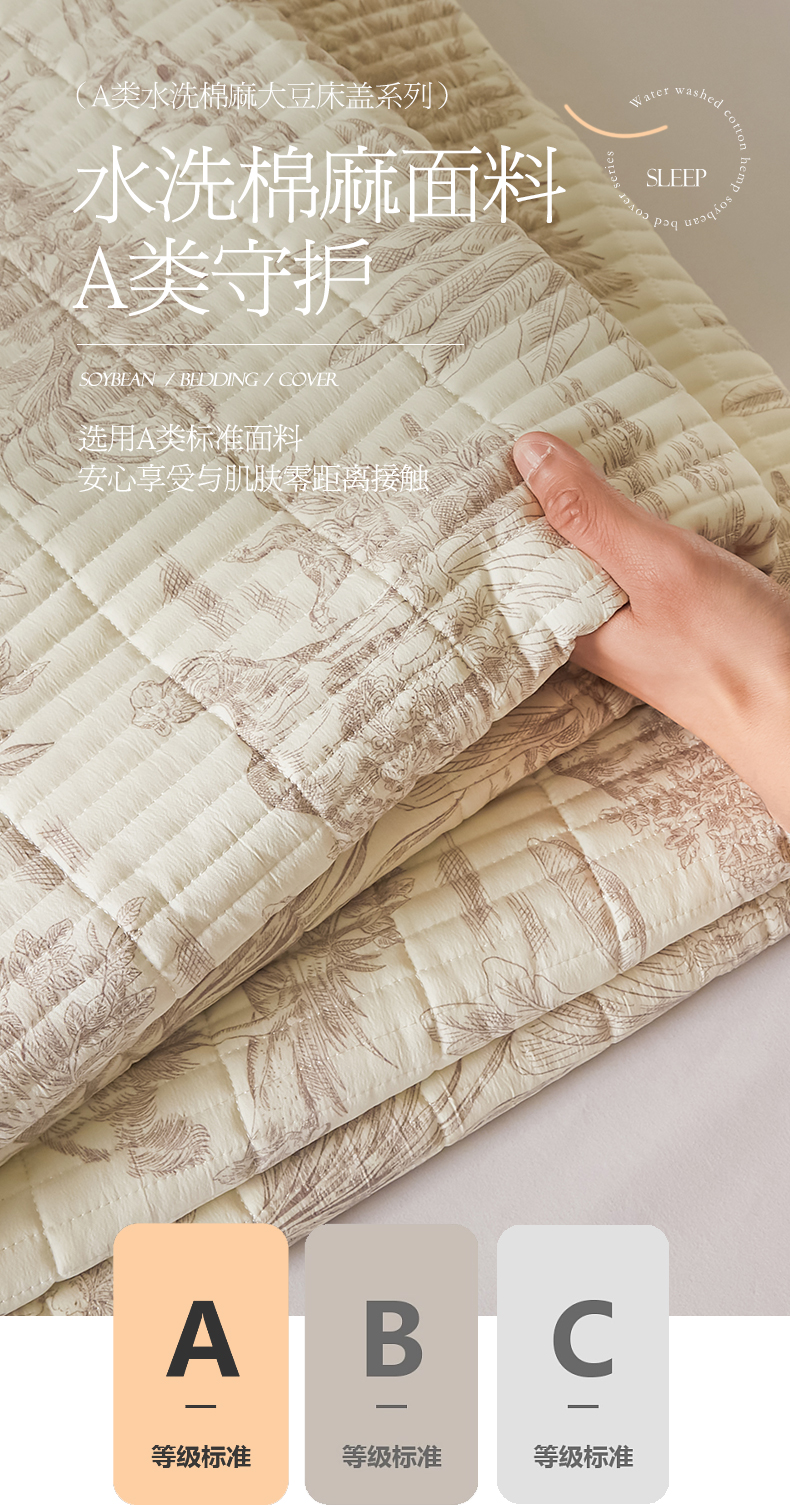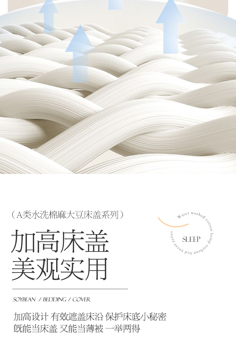 商品名称:水洗棉麻床盖大豆纤维夹棉加厚宿舍铺盖两用床单床裙保护垫 逐风