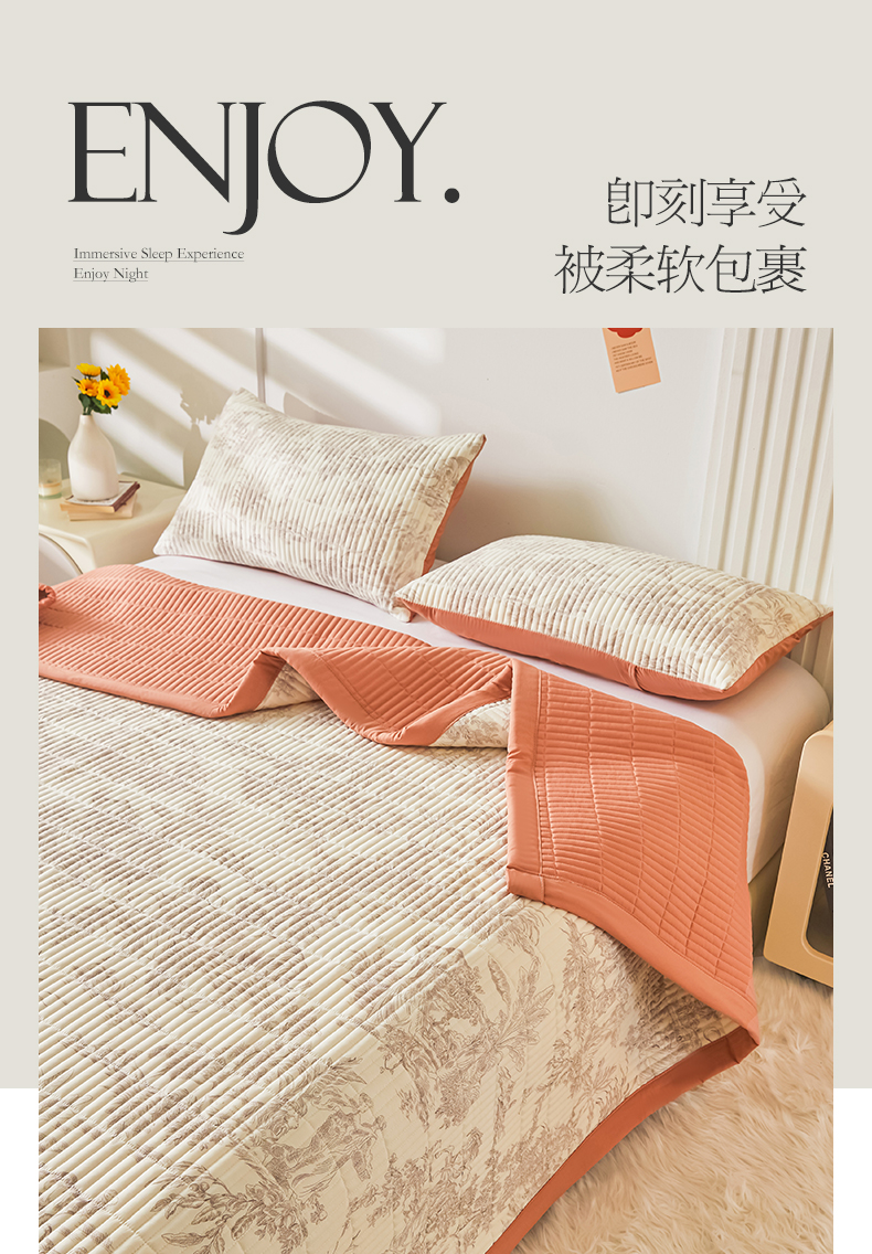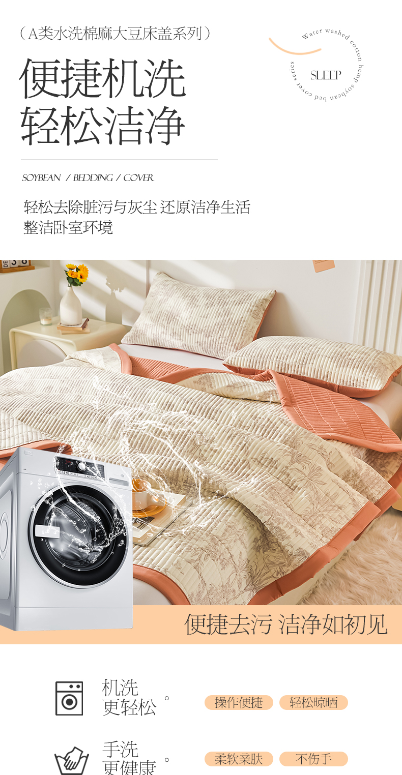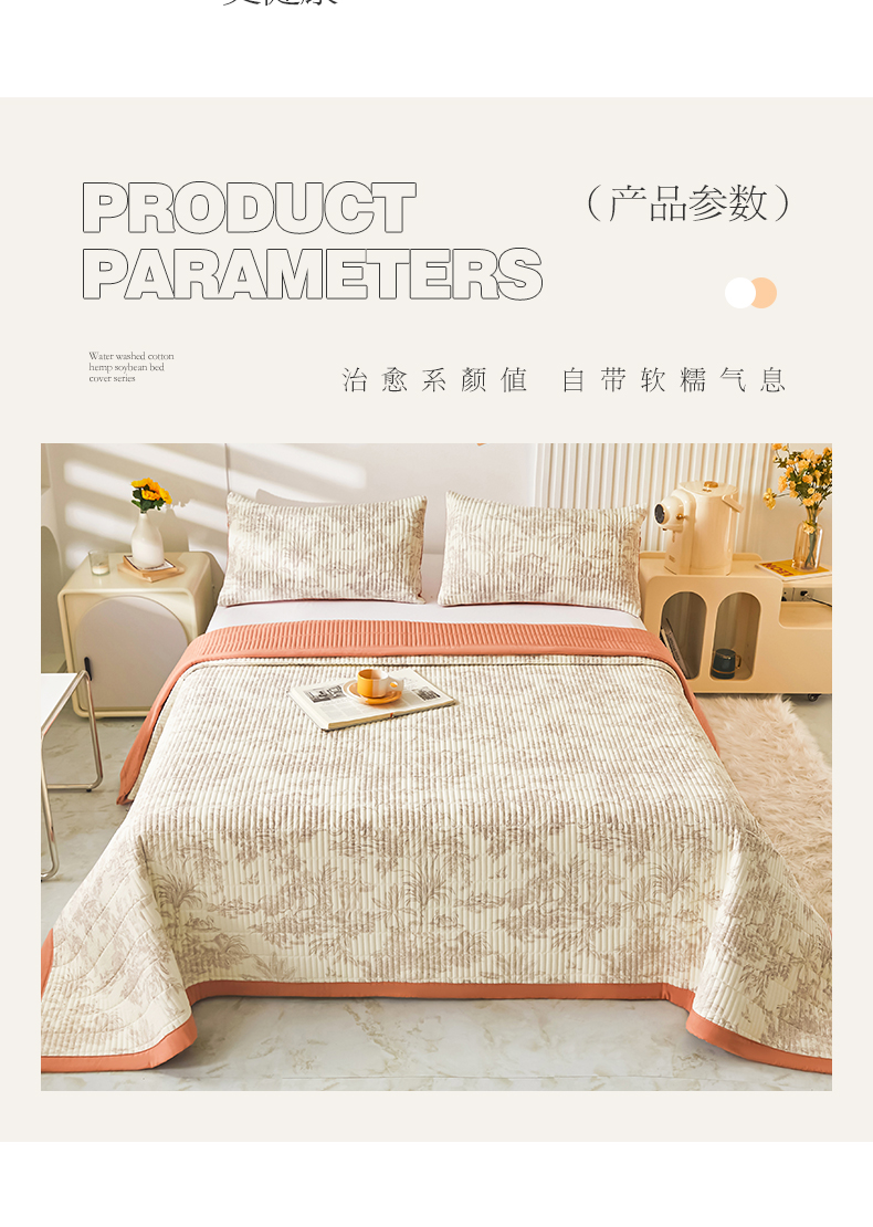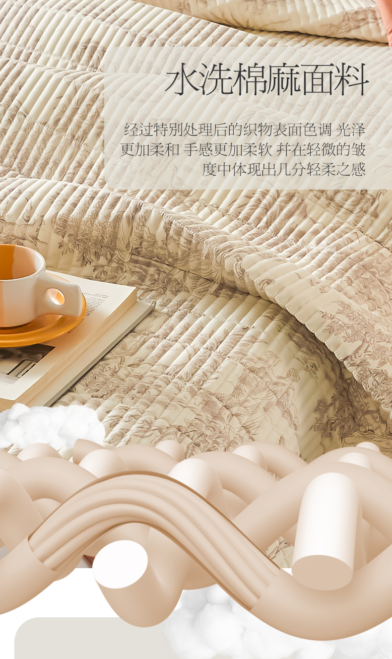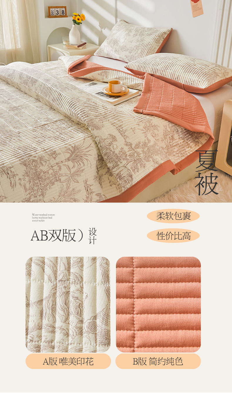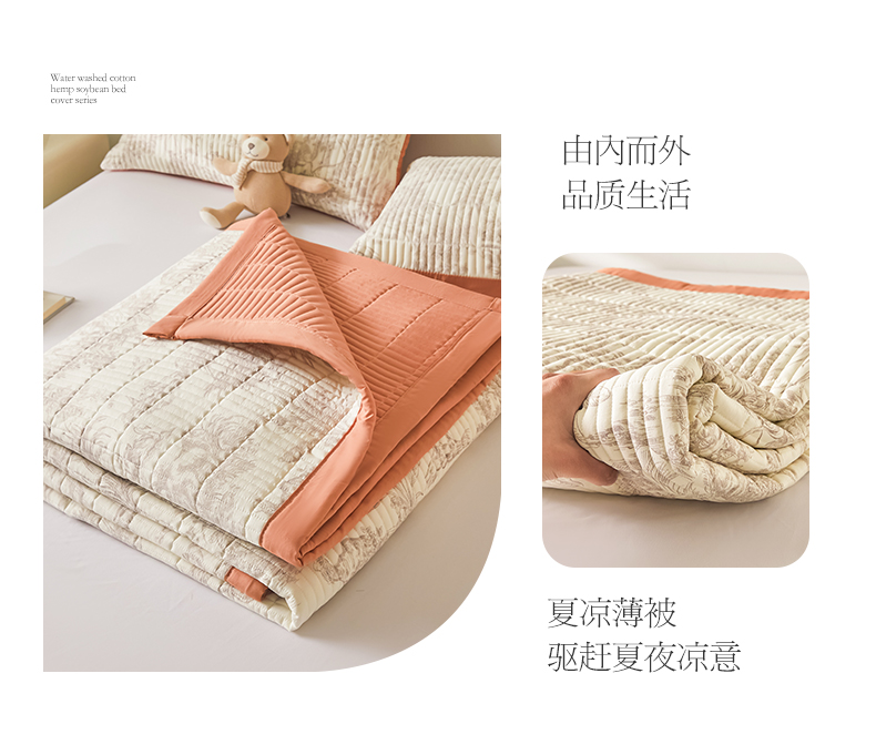 商品名称:水洗棉麻床盖大豆纤维夹棉加厚宿舍铺盖两用床单床裙保护垫 逐风
