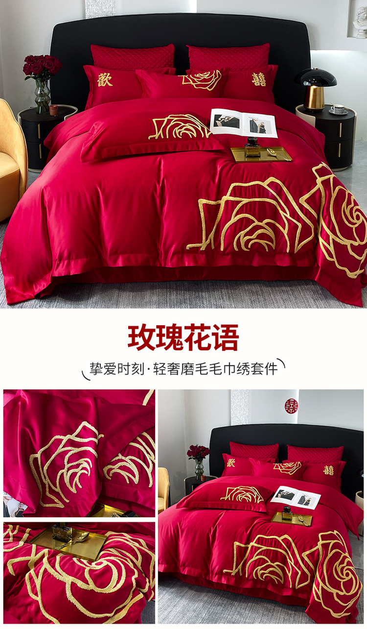 商品名称:优悦 2023新款轻奢磨毛婚庆毛巾绣四件套 玫瑰花语