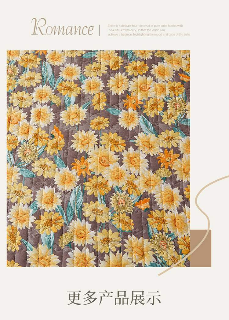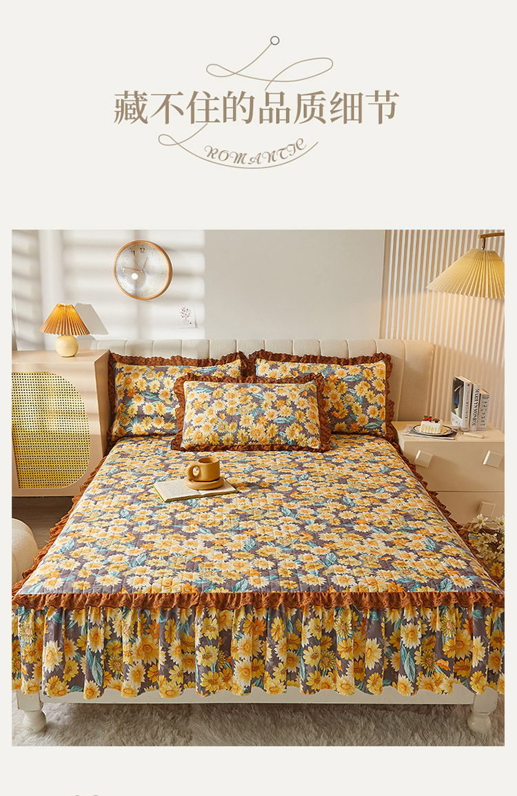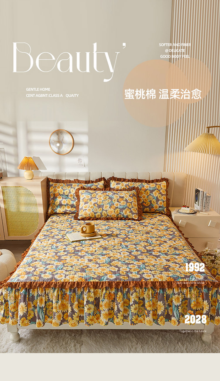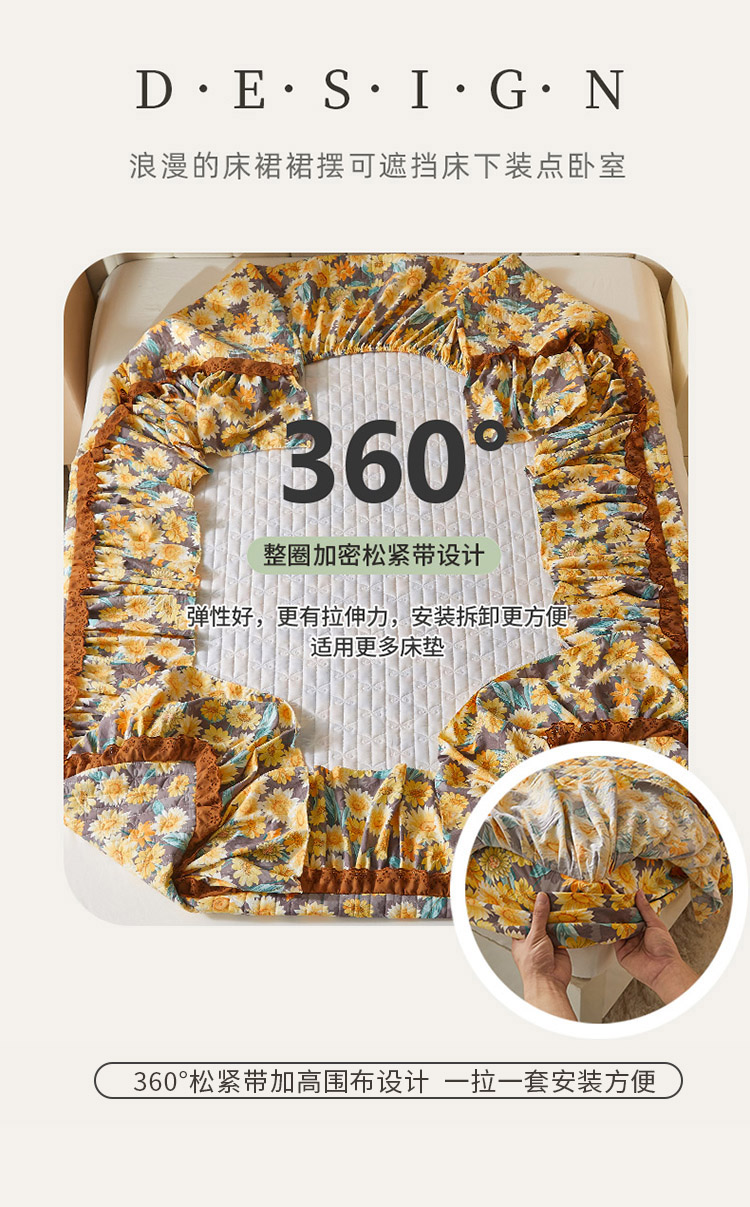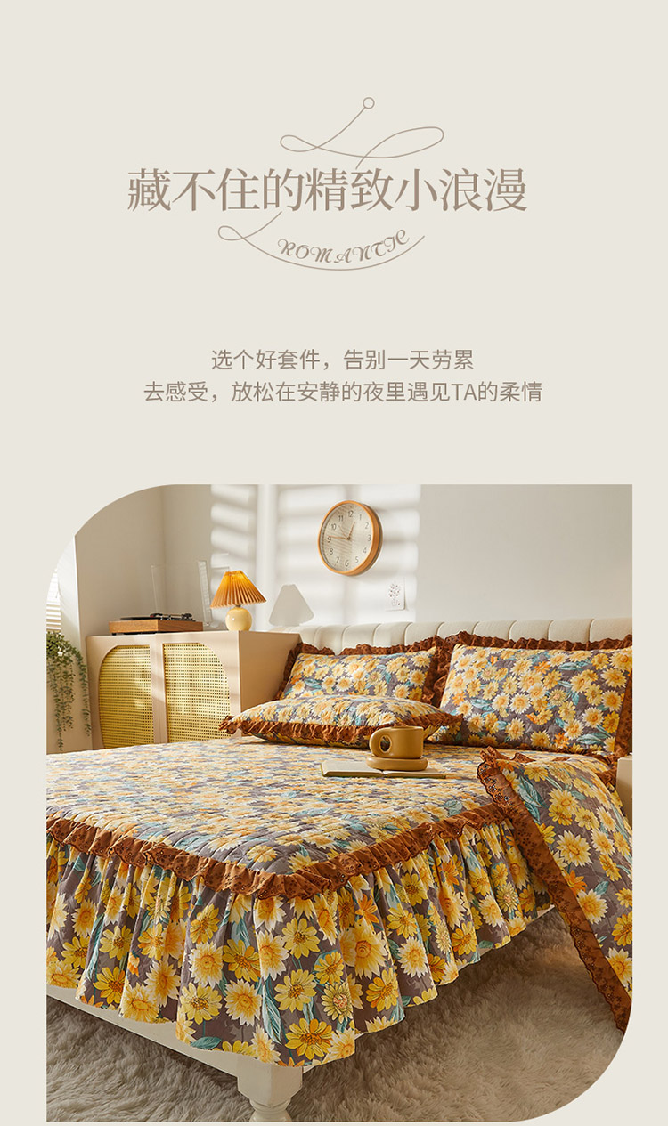 • 91家纺网 家纺一手货源 找家纺 恋尚 2023新款蜜桃棉印花床裙式床笠 向日葵