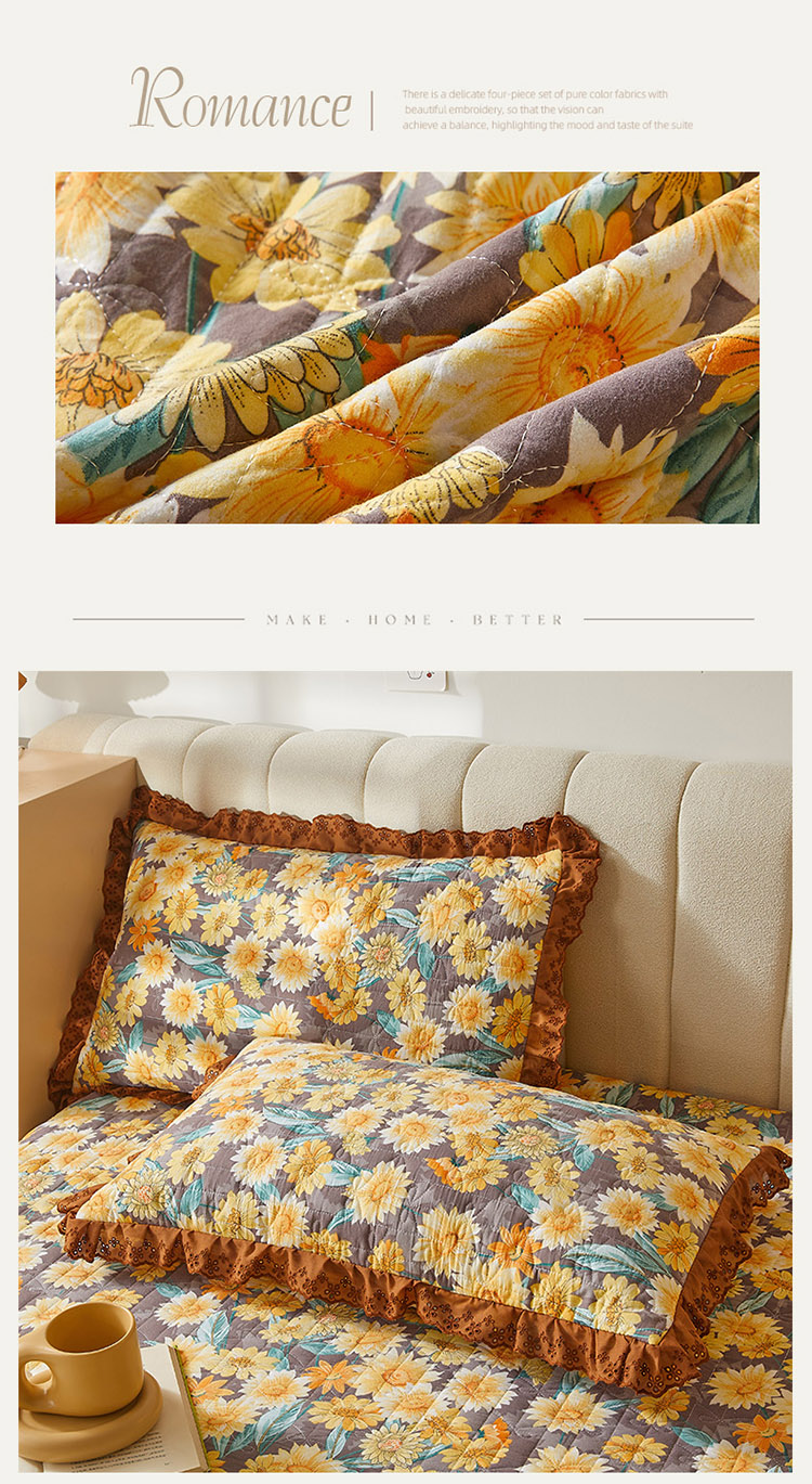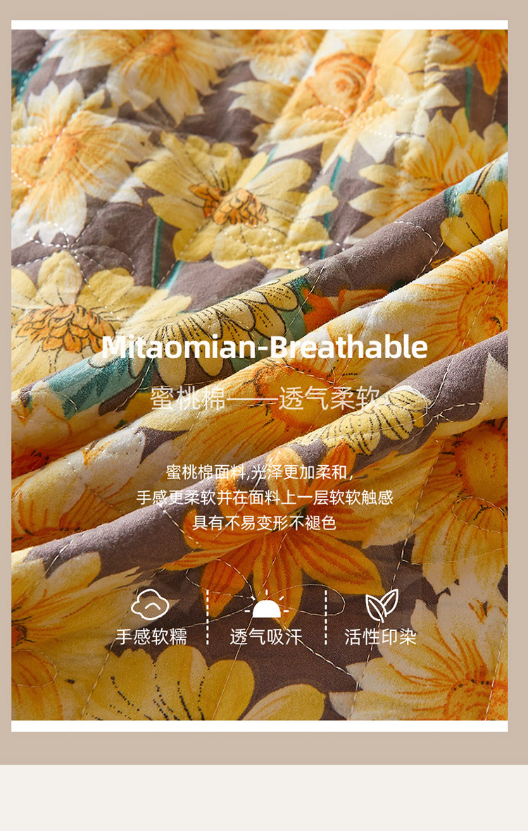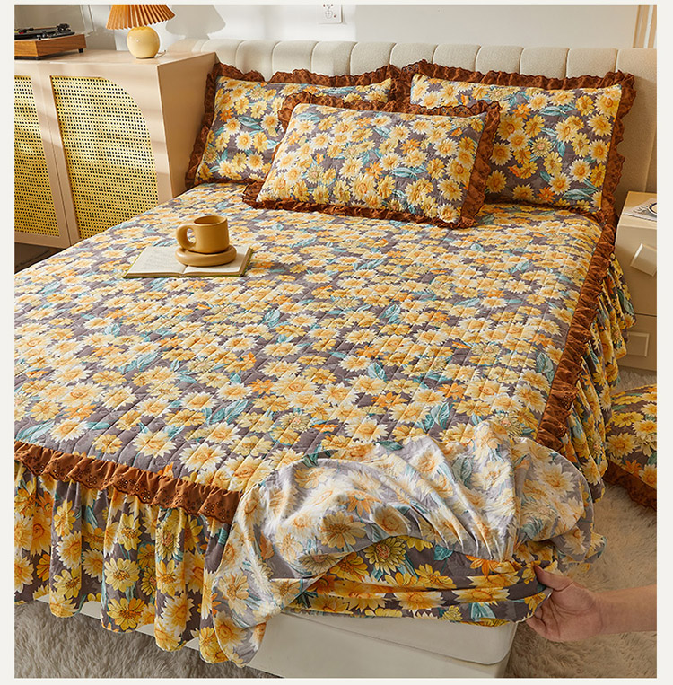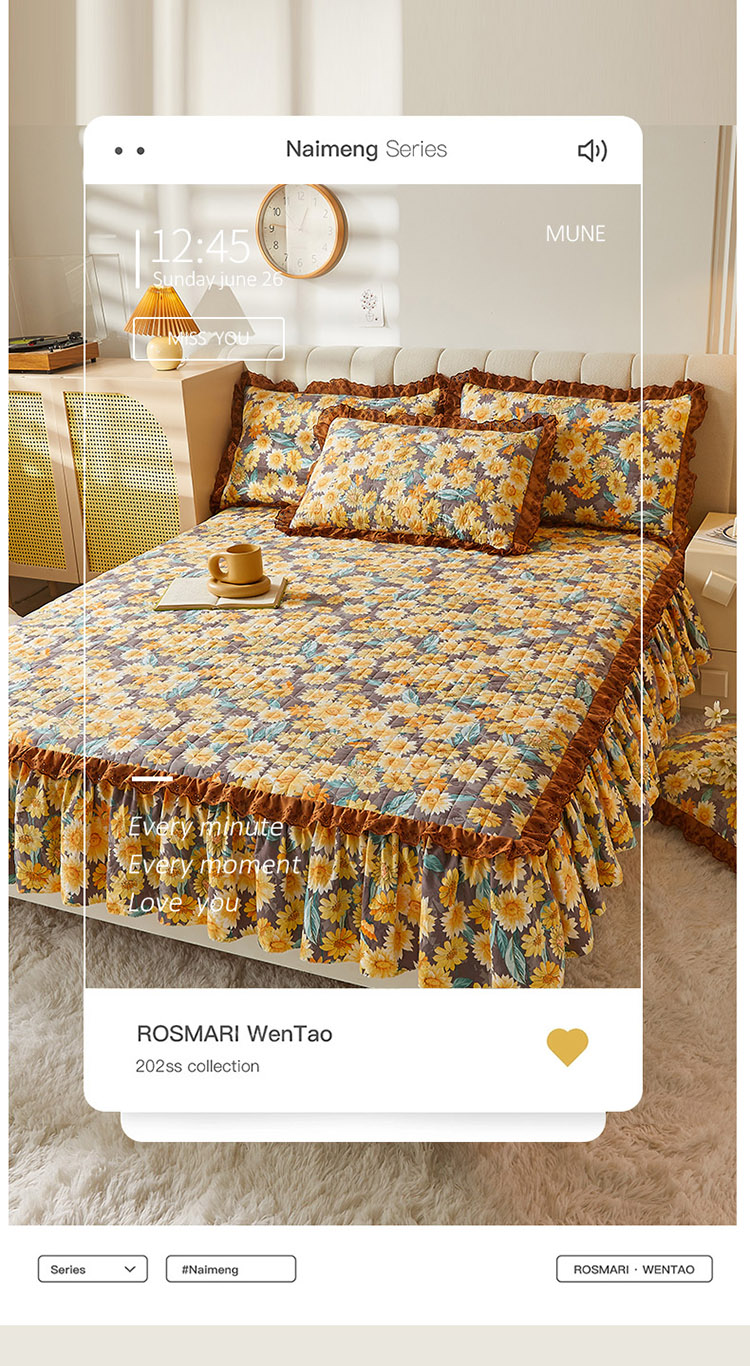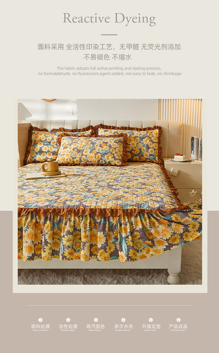 • 91家纺网 家纺一手货源 找家纺 恋尚 2023新款蜜桃棉印花床裙式床笠 向日葵