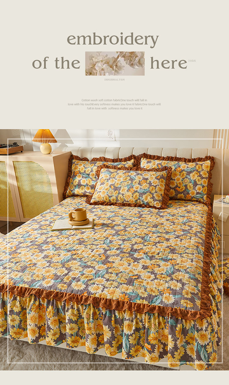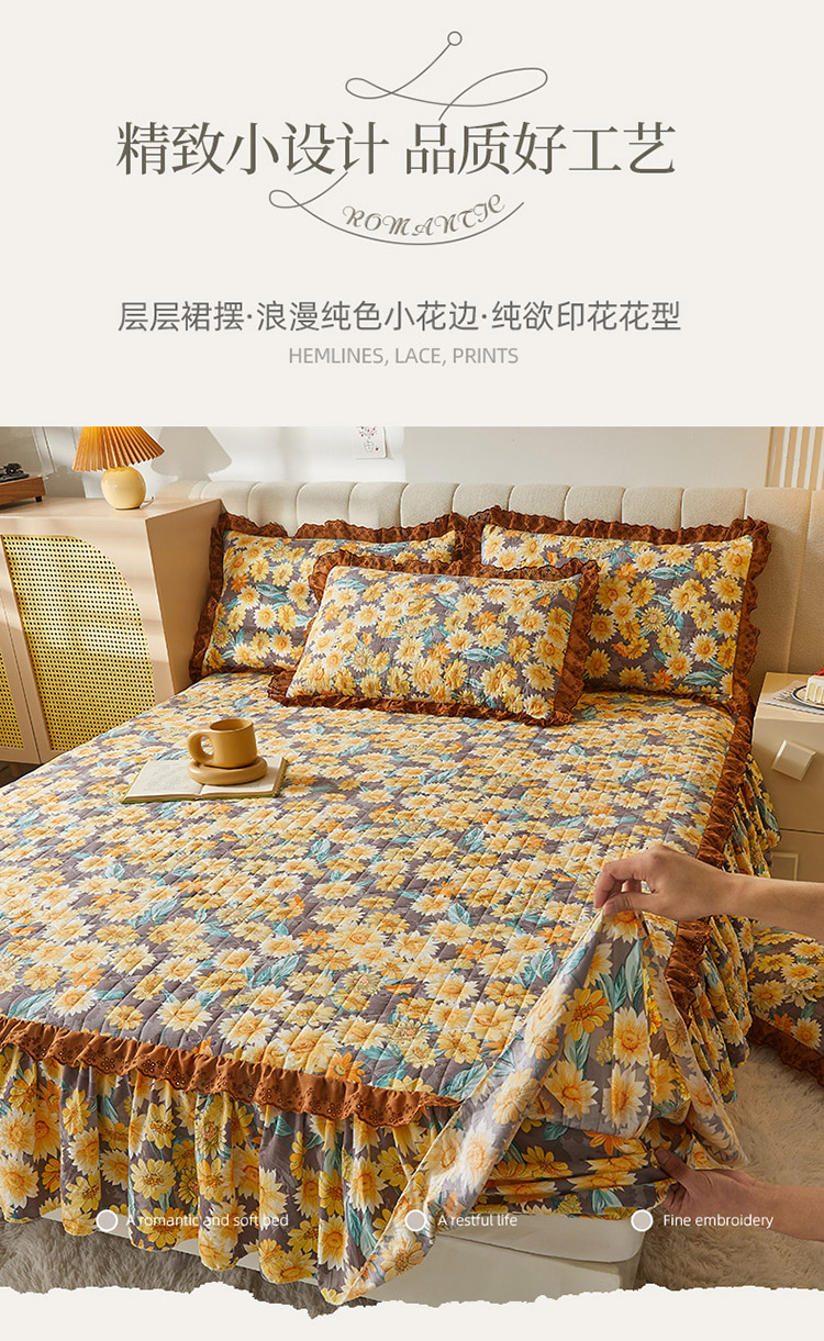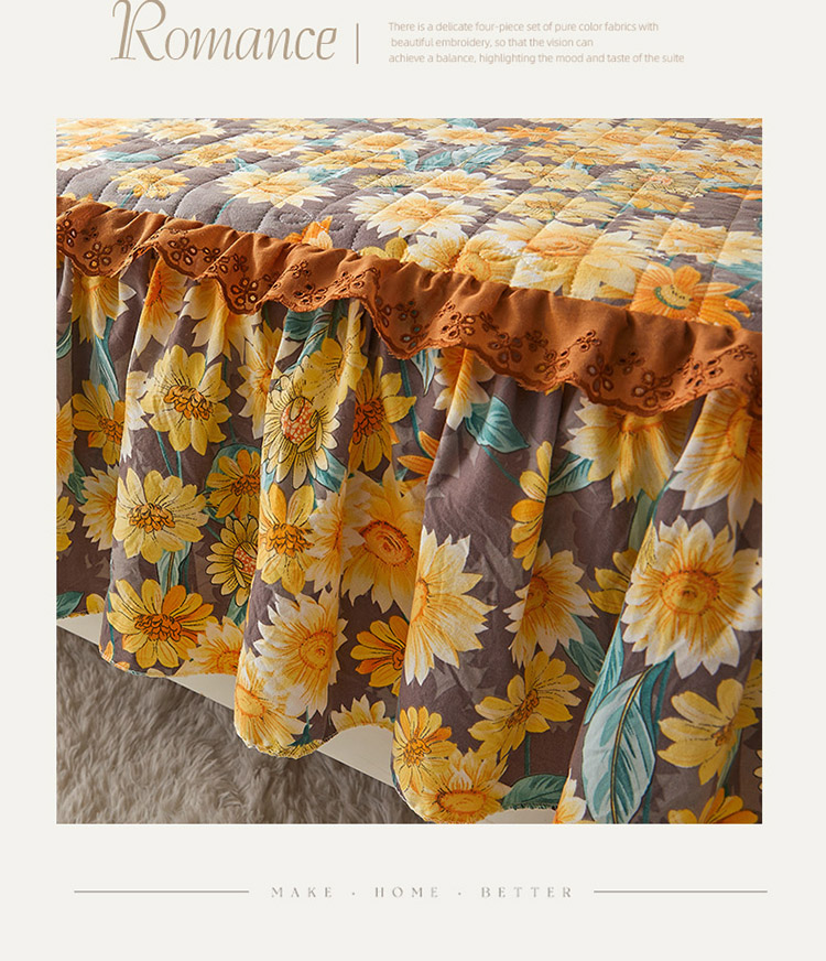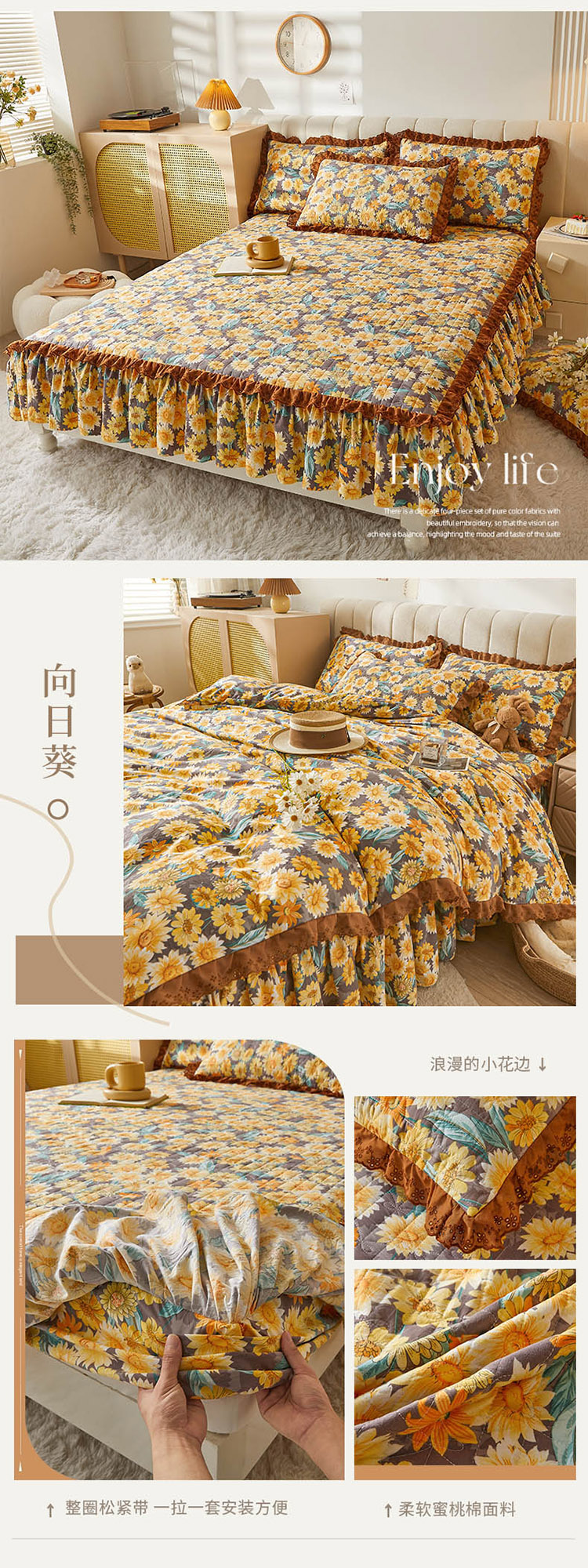 恋尚 2023新款蜜桃棉印花床裙式床笠 向日葵
