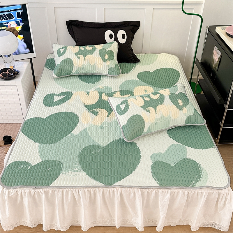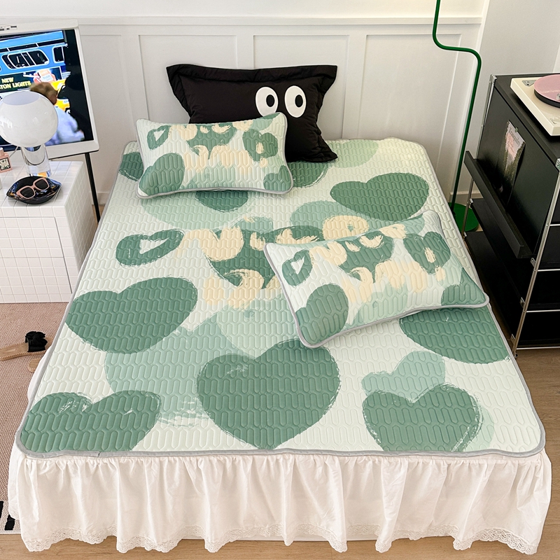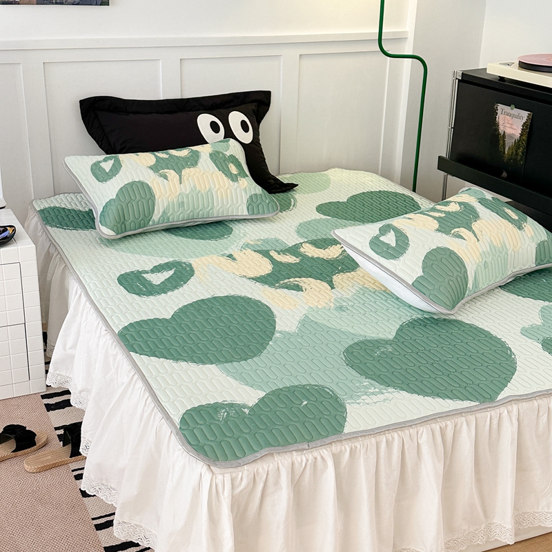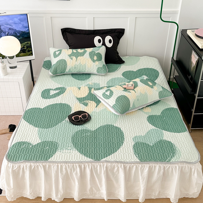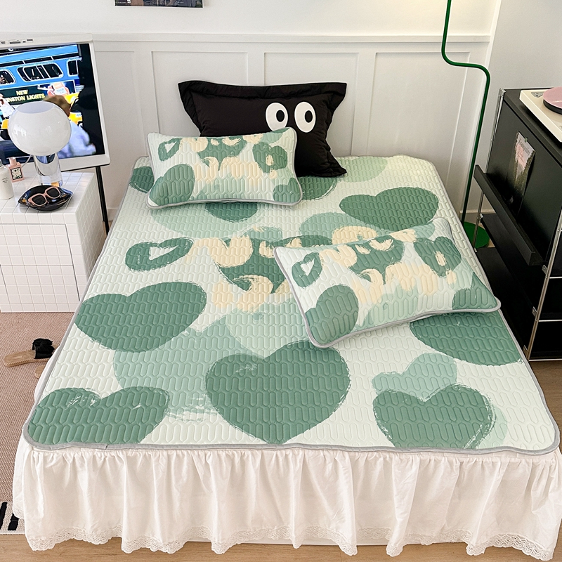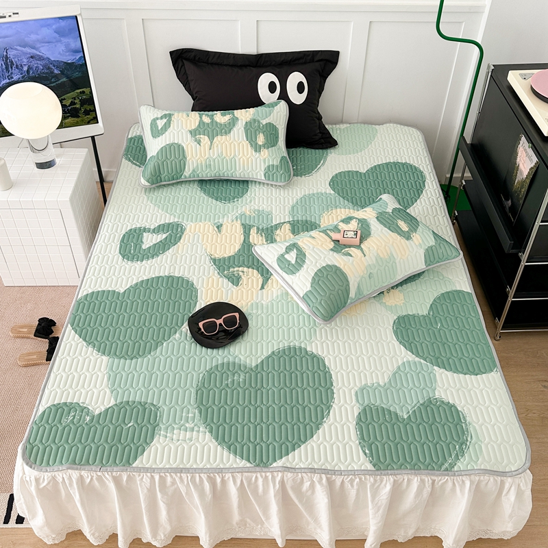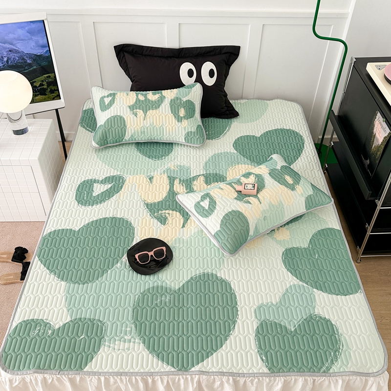 昔可2023新款ins简约风乳胶凉席 绿色爱心