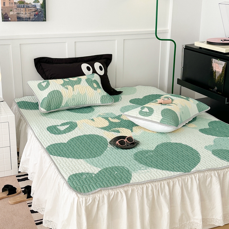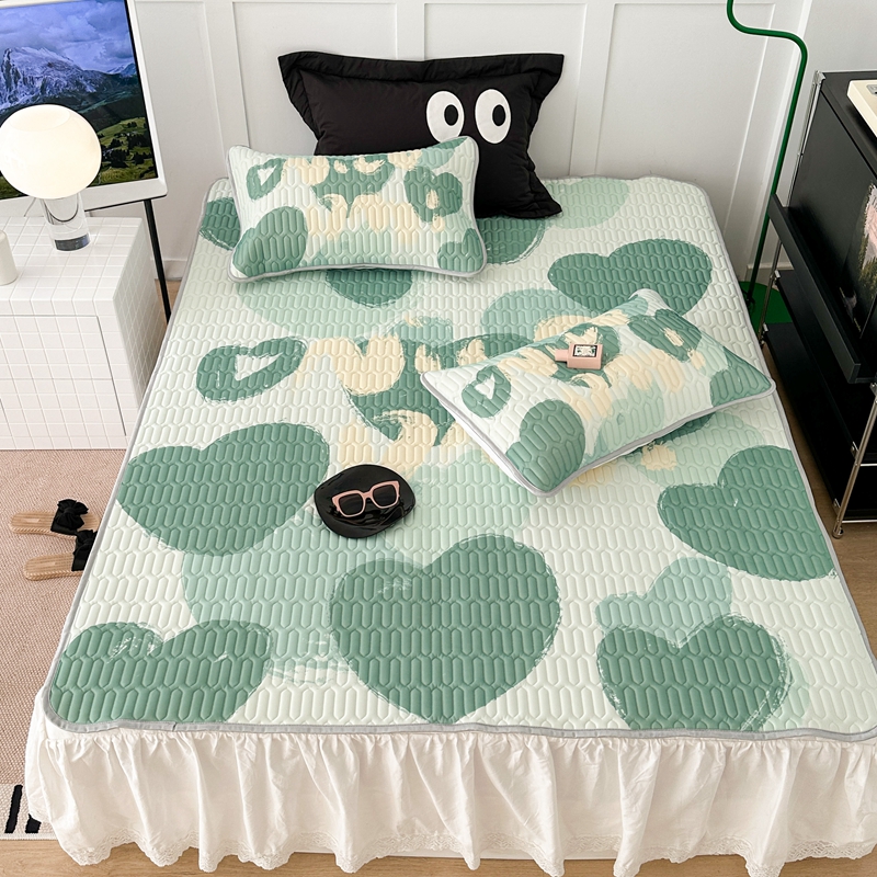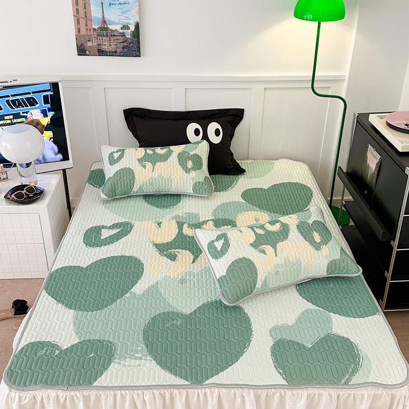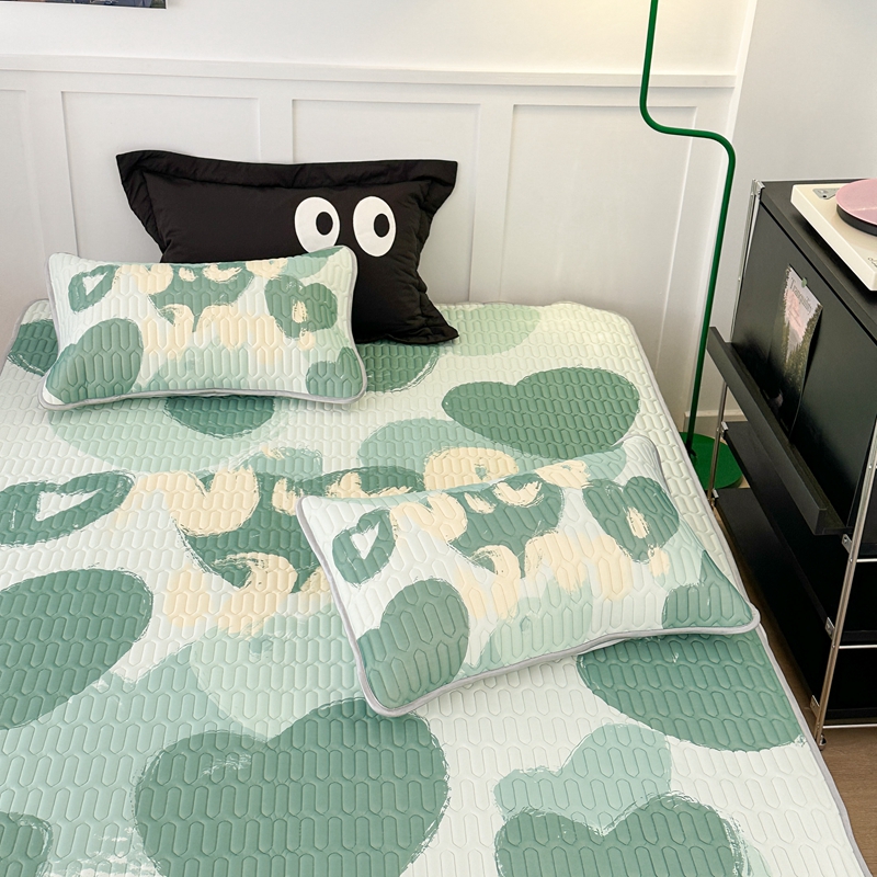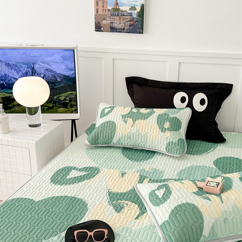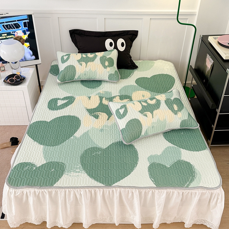 昔可2023新款ins简约风乳胶凉席 绿色爱心