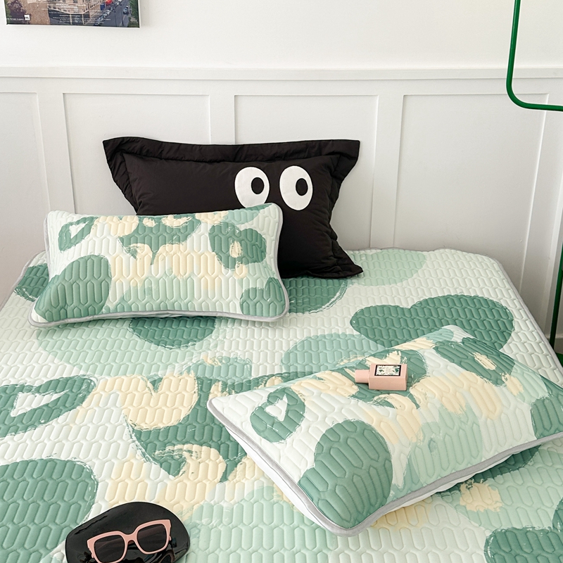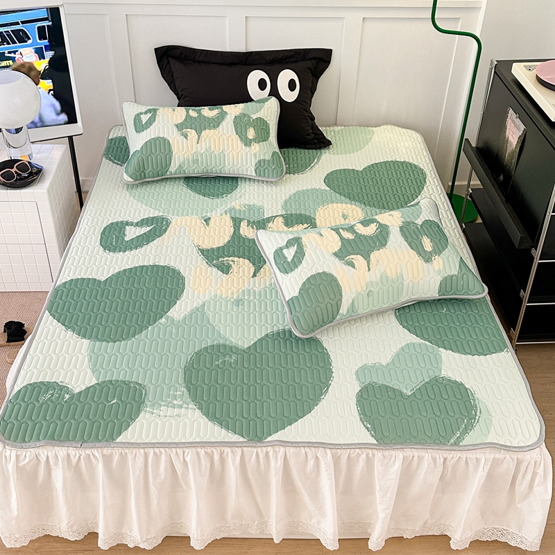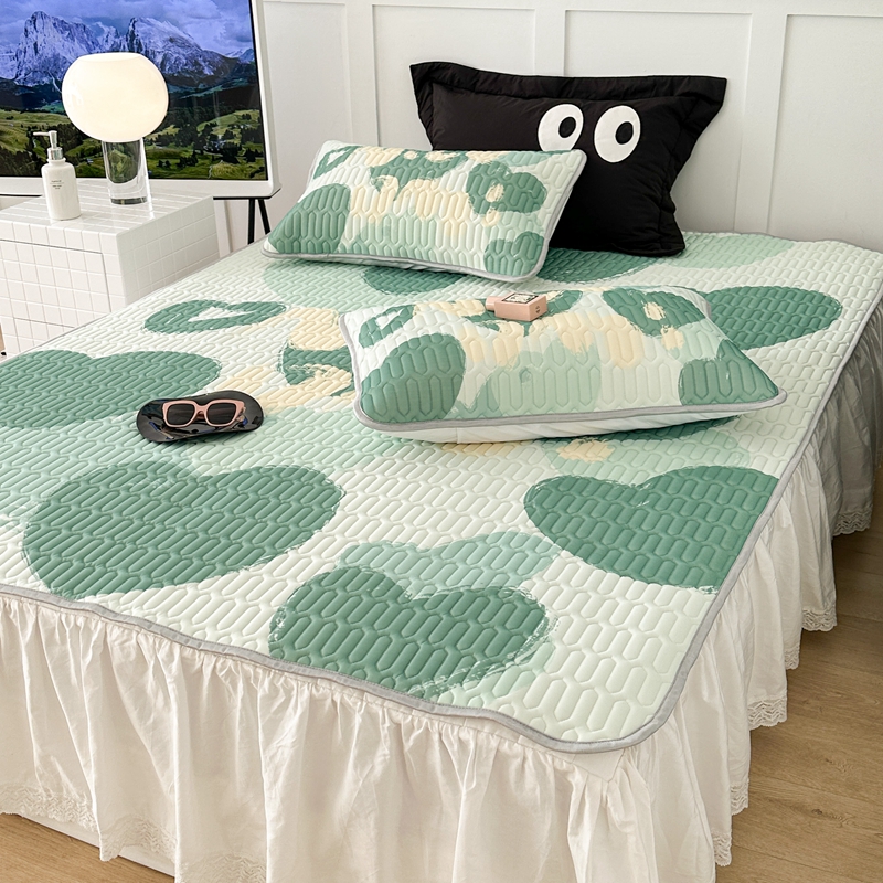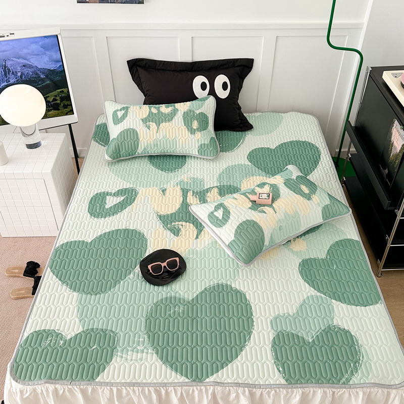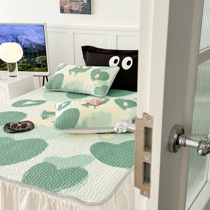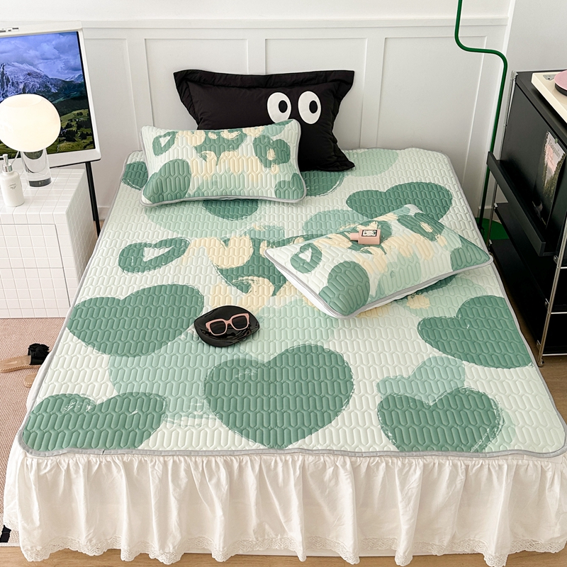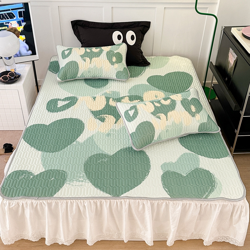 昔可2023新款ins简约风乳胶凉席 绿色爱心
