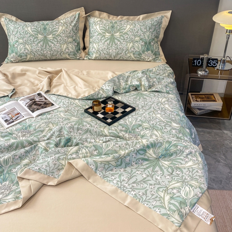商品名称:棉生活 2023新款莱赛尔天丝绣花夏被 洛丽塔 绿