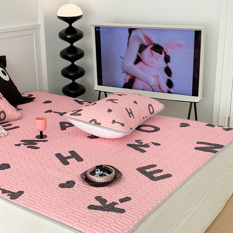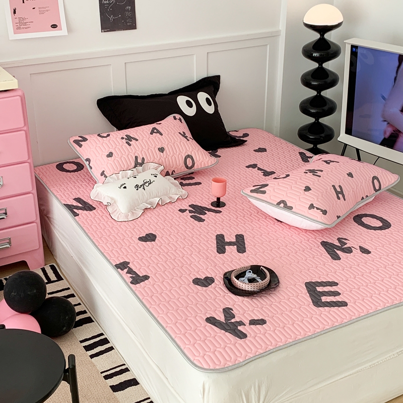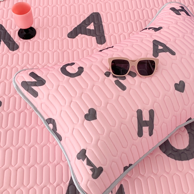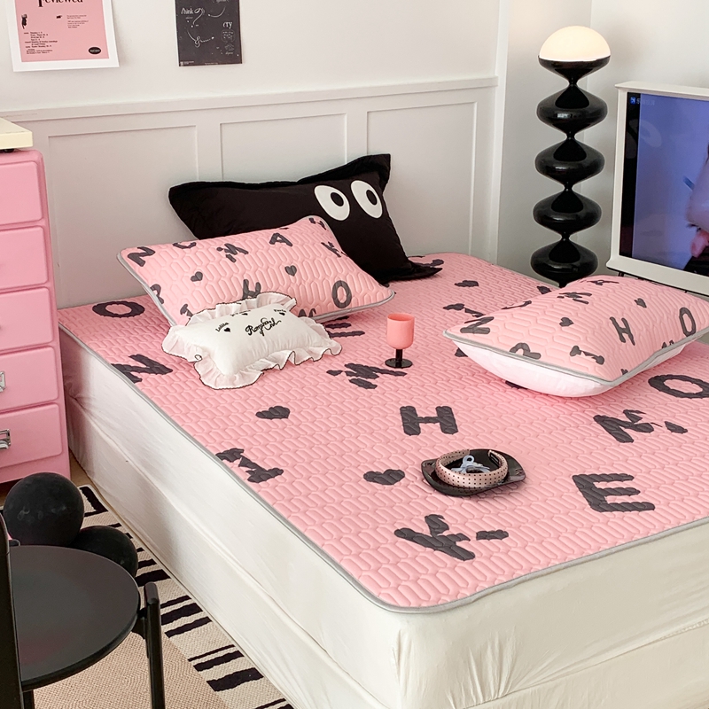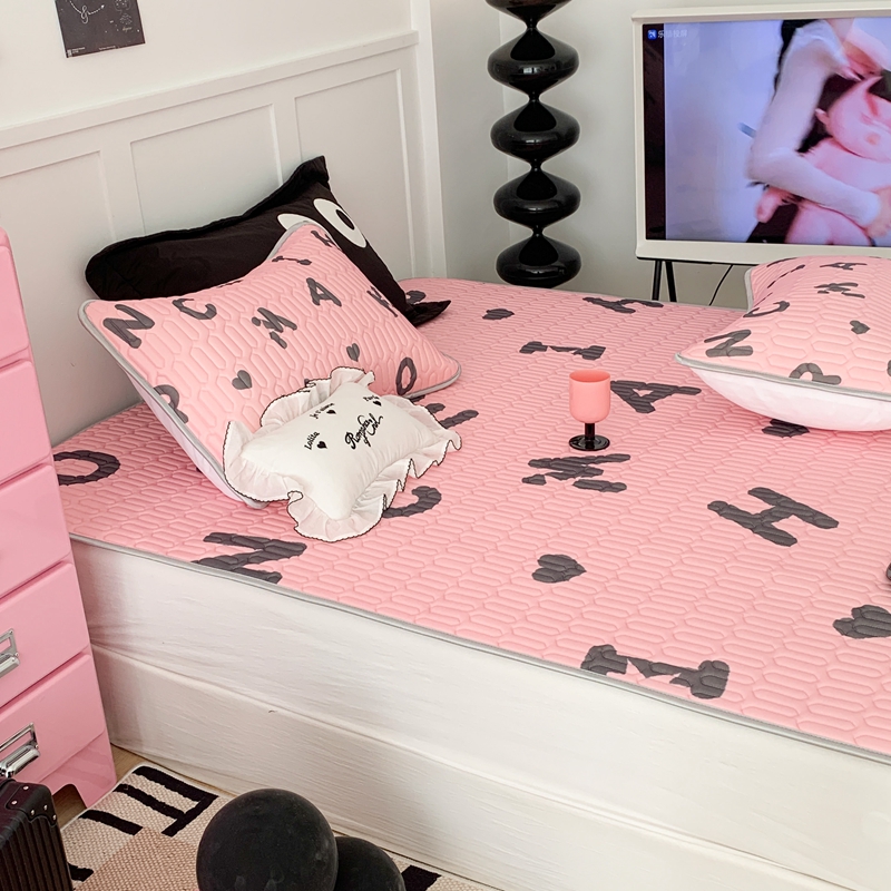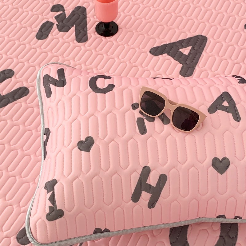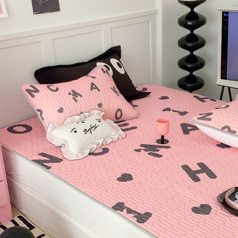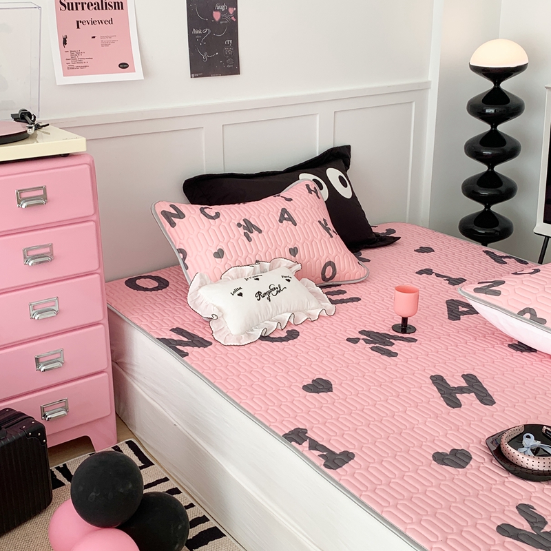 昔可家纺2023新款甜酷黑粉系列乳胶凉席 黑粉字母