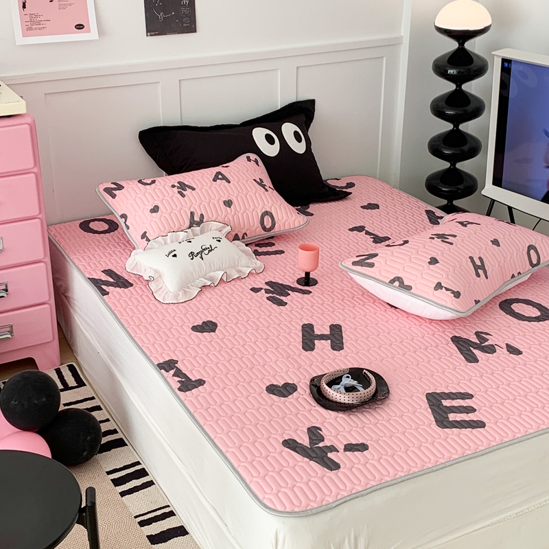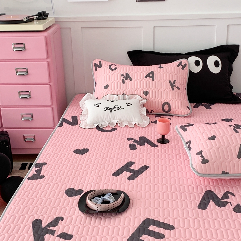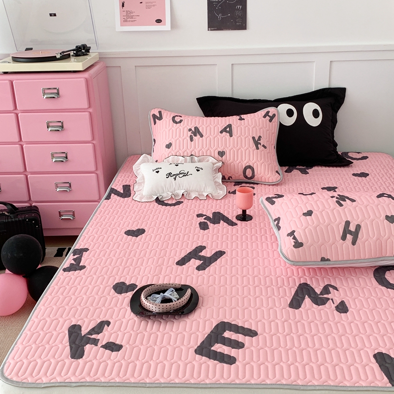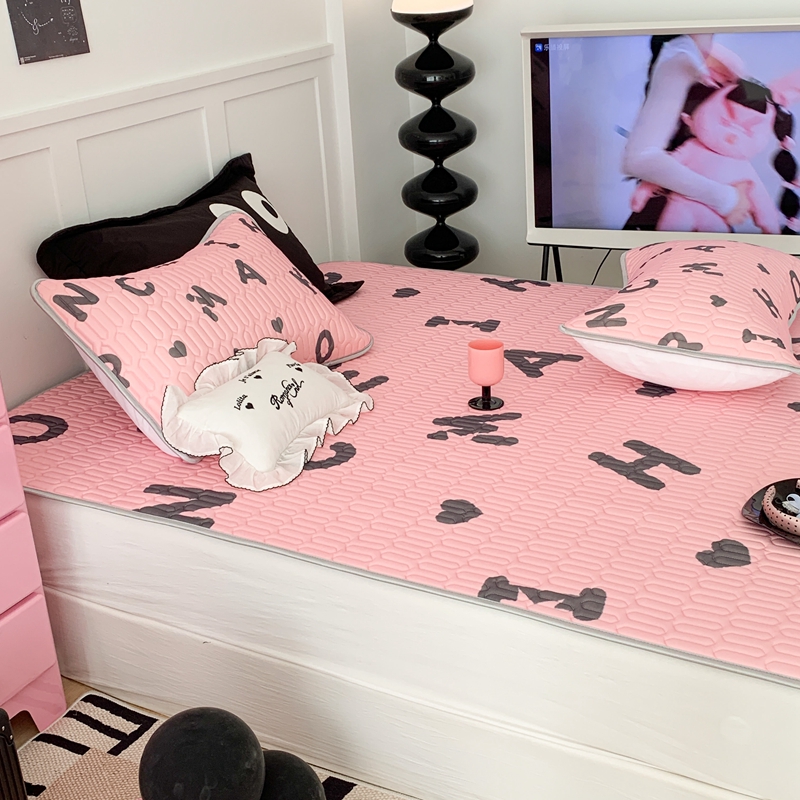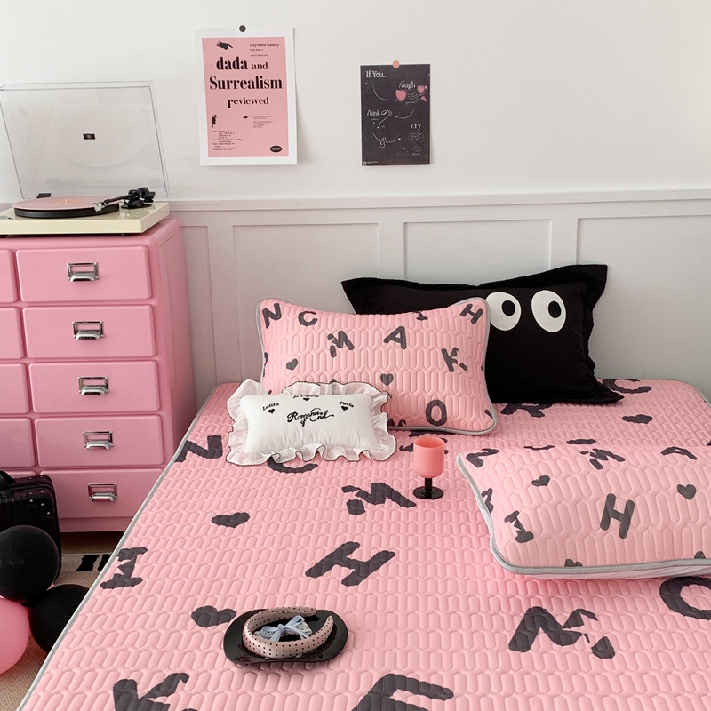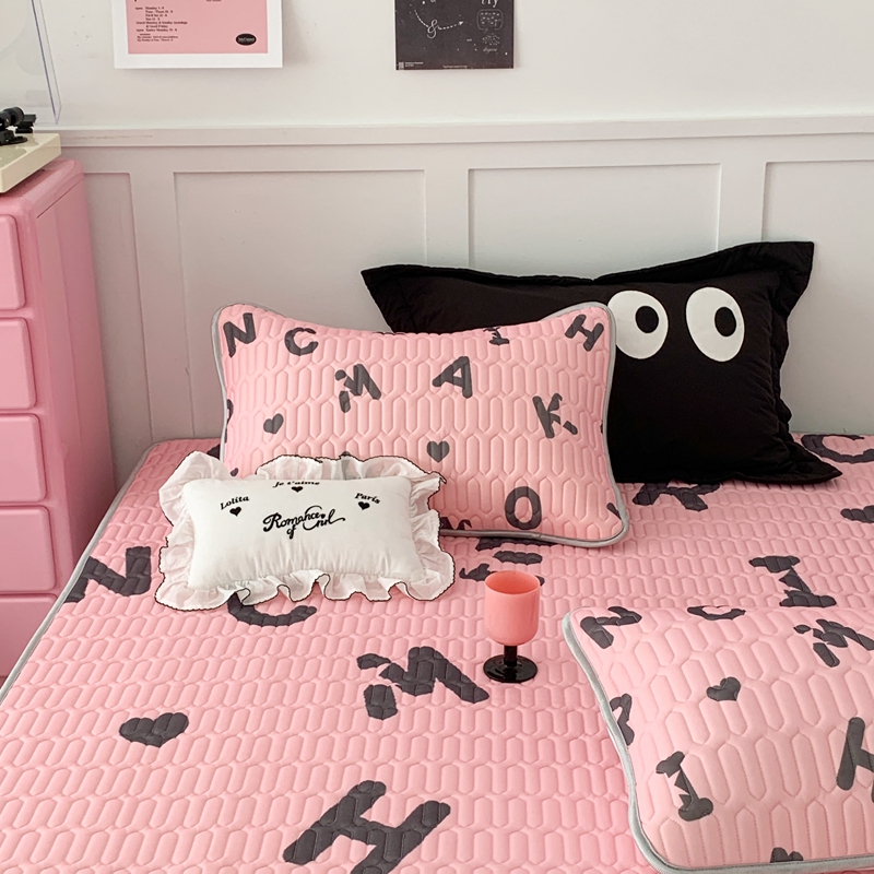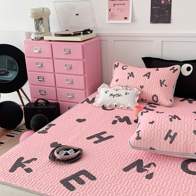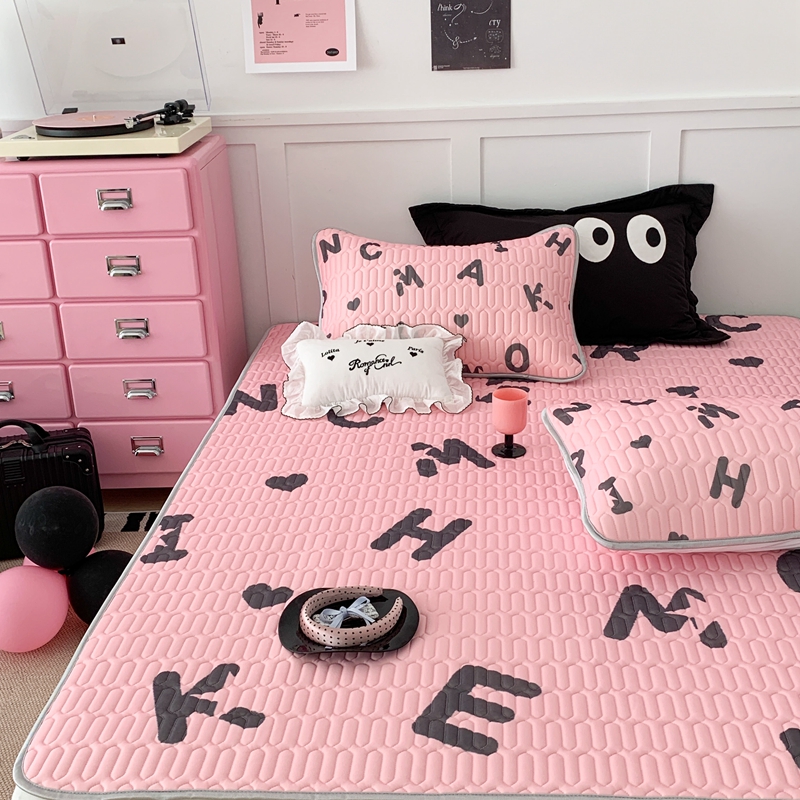 昔可家纺2023新款甜酷黑粉系列乳胶凉席 黑粉字母