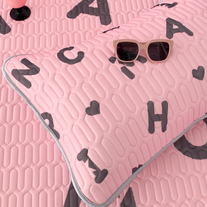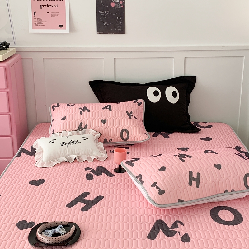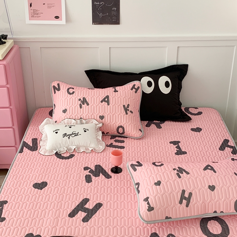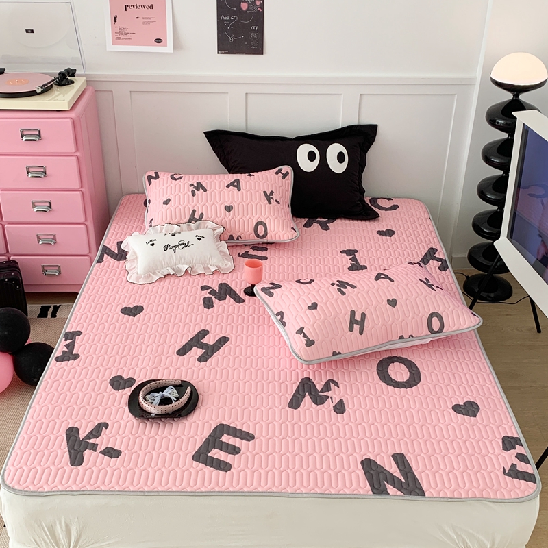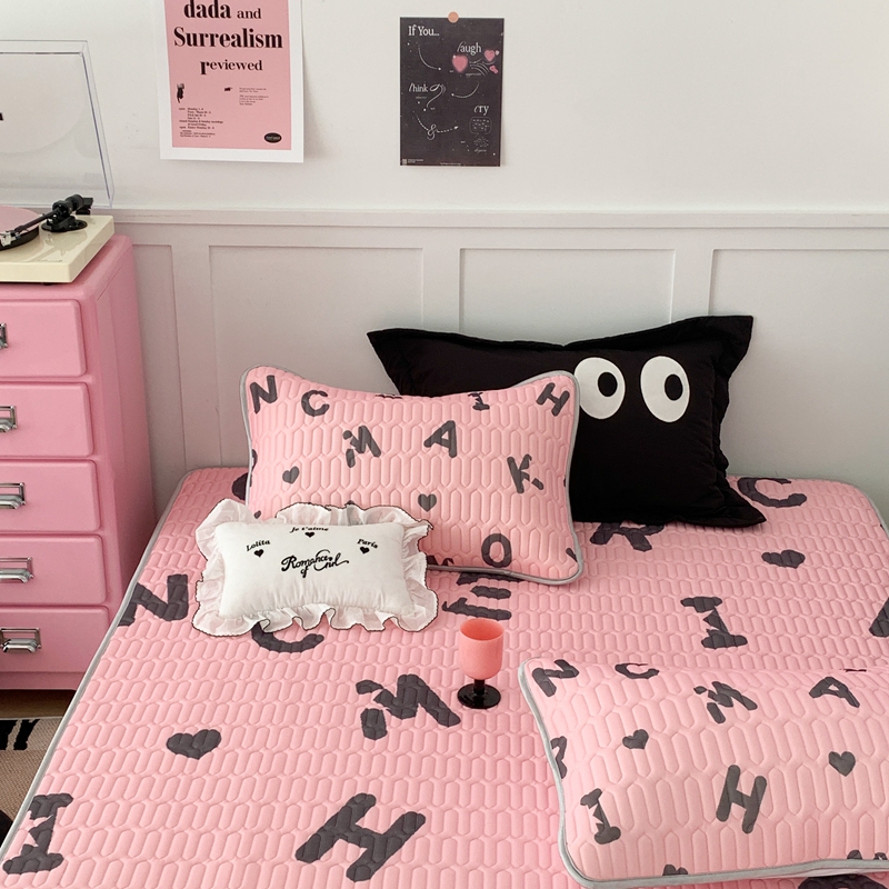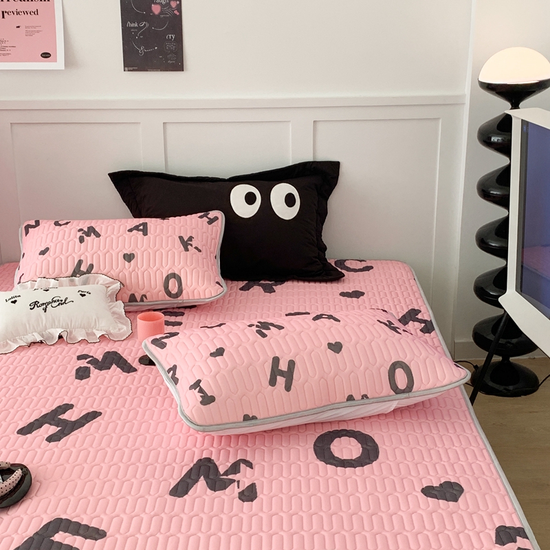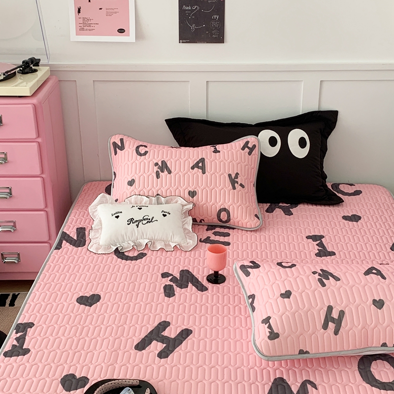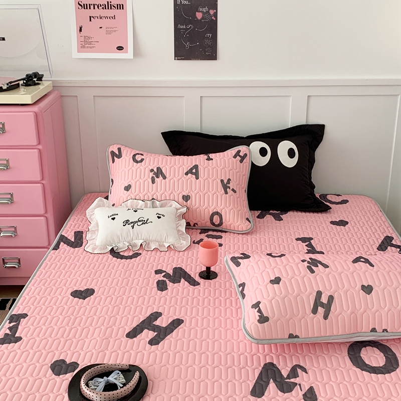 昔可家纺2023新款甜酷黑粉系列乳胶凉席 黑粉字母