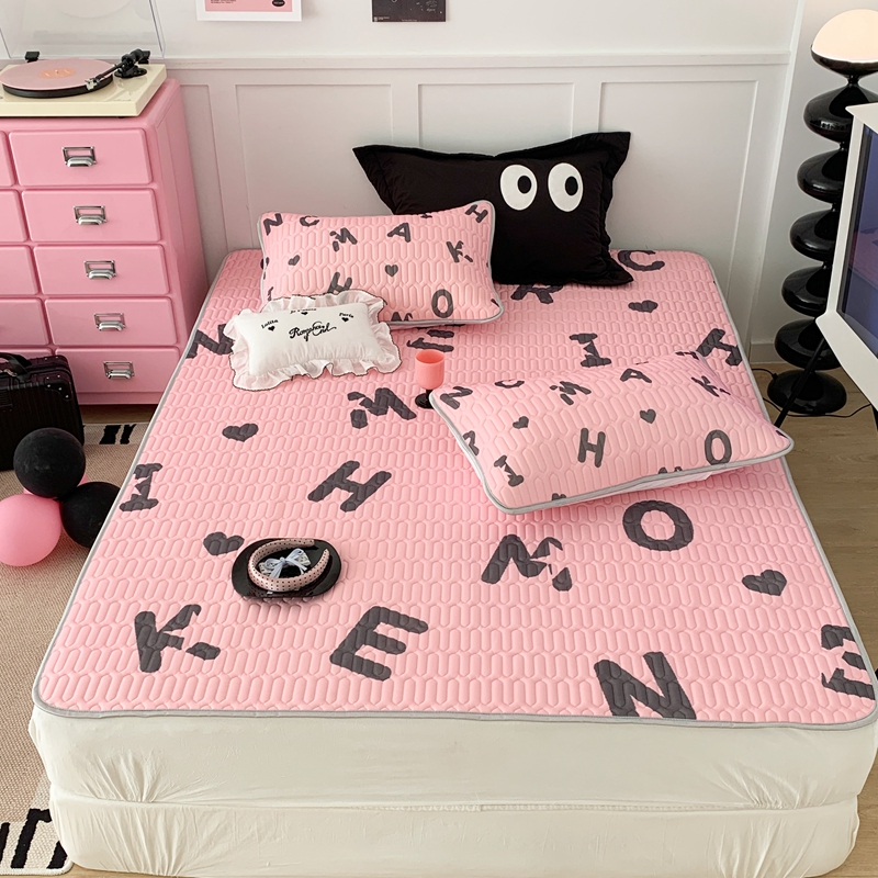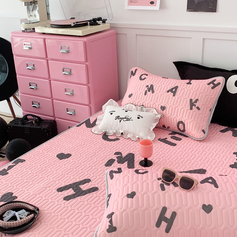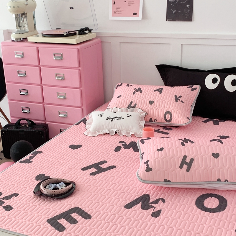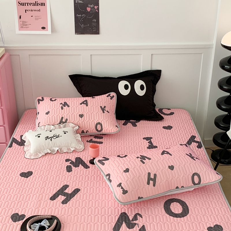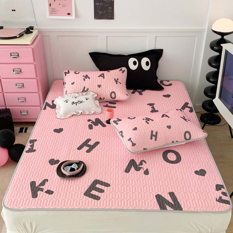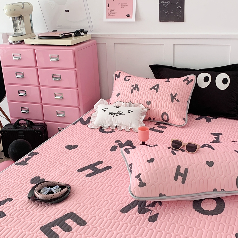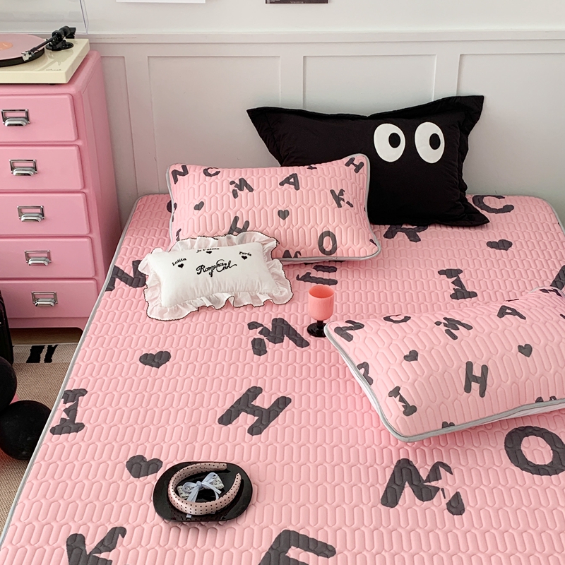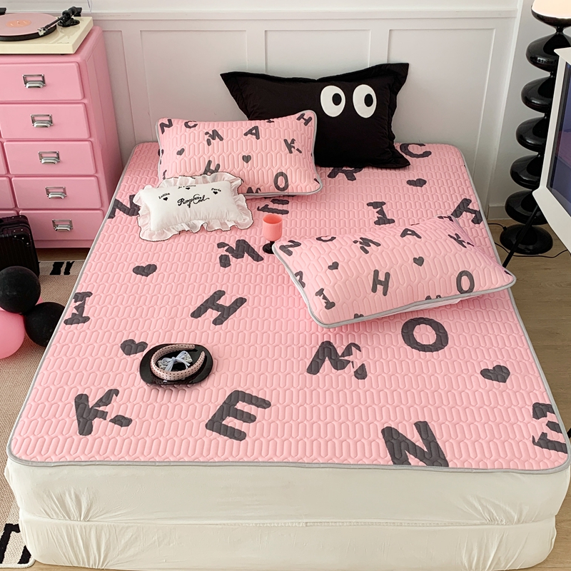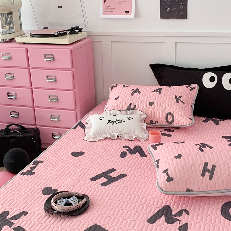 昔可家纺2023新款甜酷黑粉系列乳胶凉席 黑粉字母