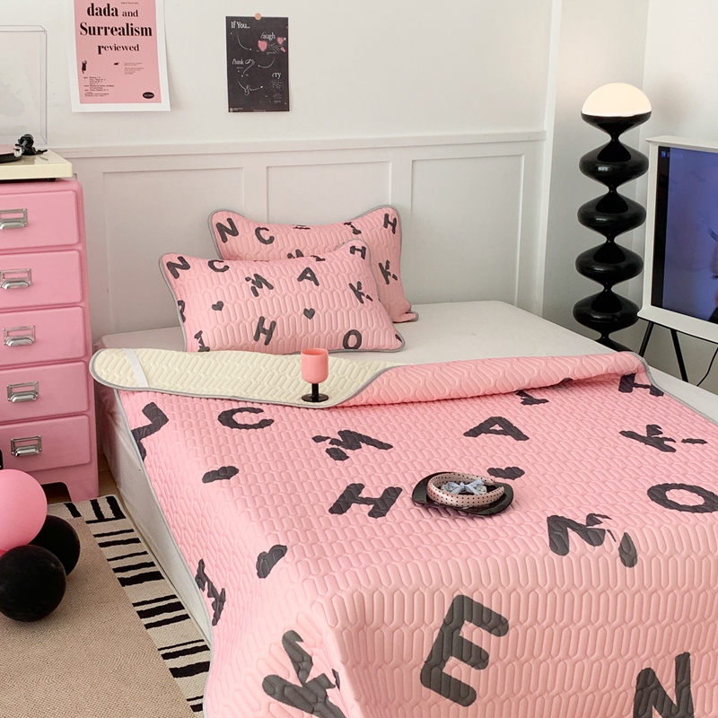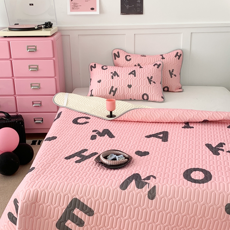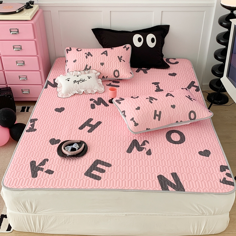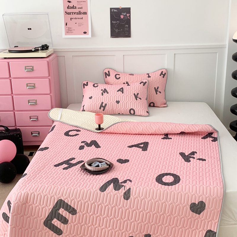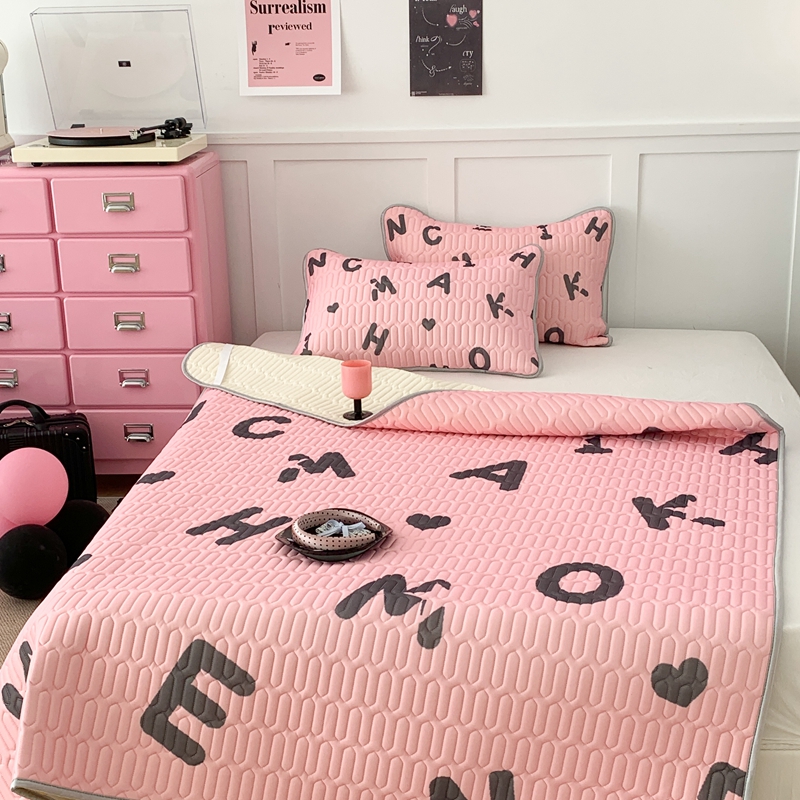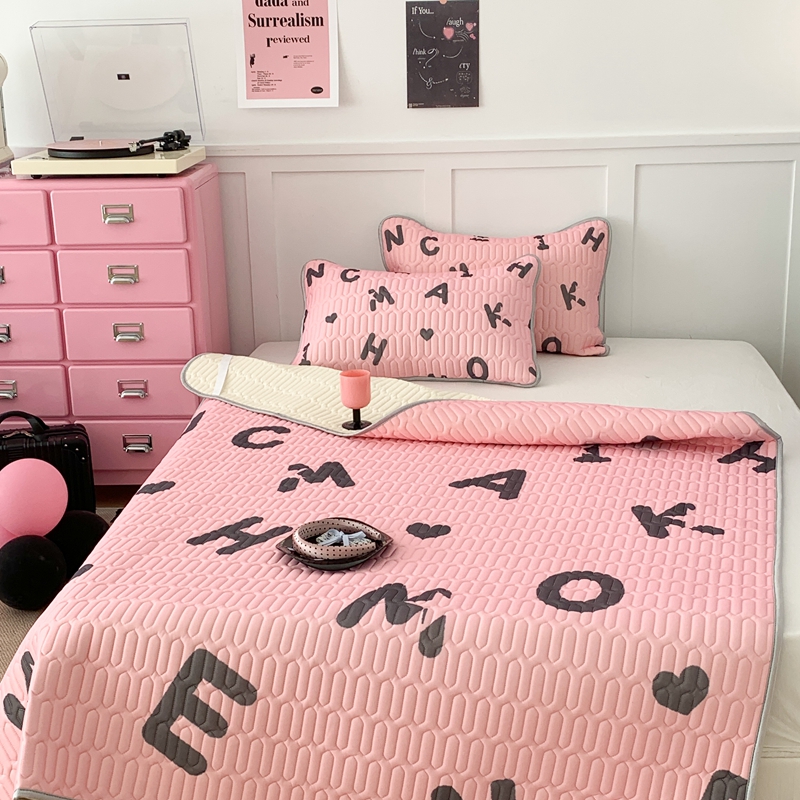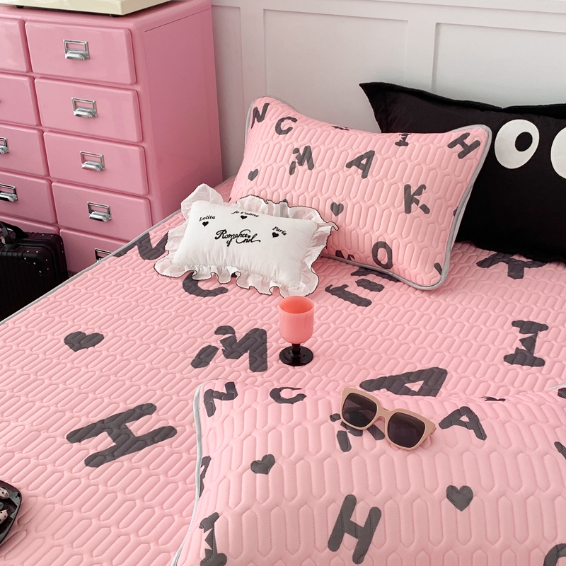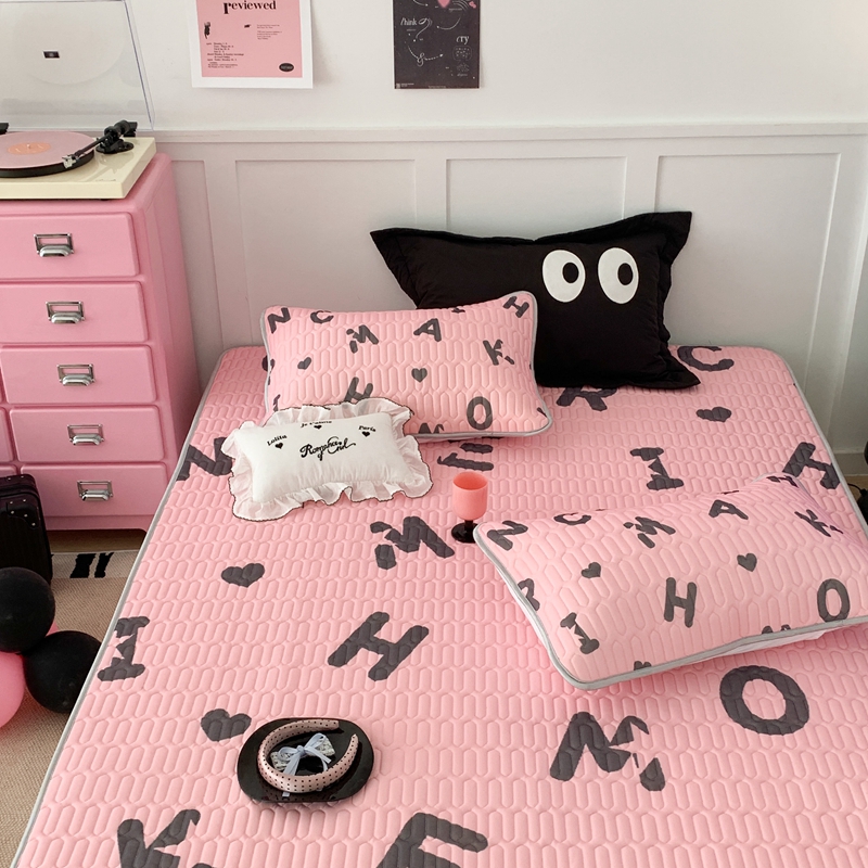 昔可家纺2023新款甜酷黑粉系列乳胶凉席 黑粉字母