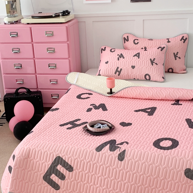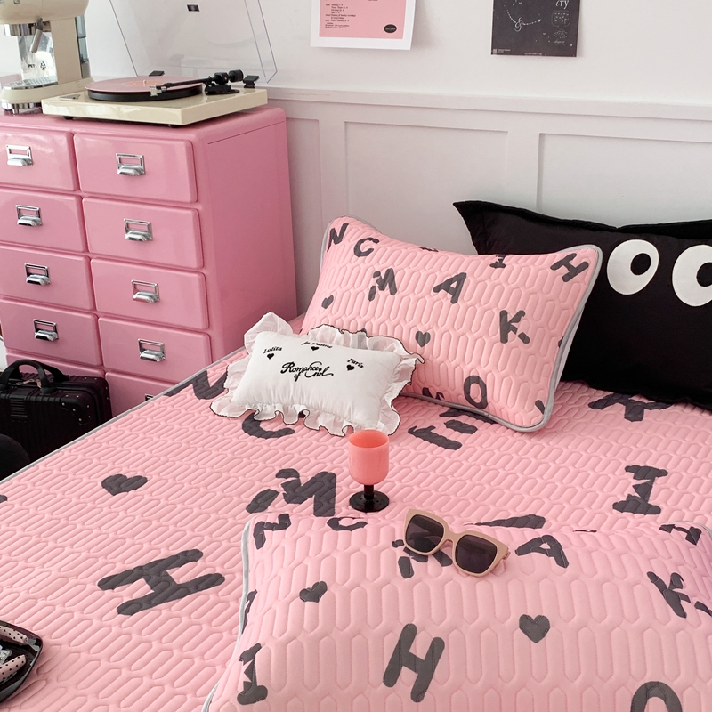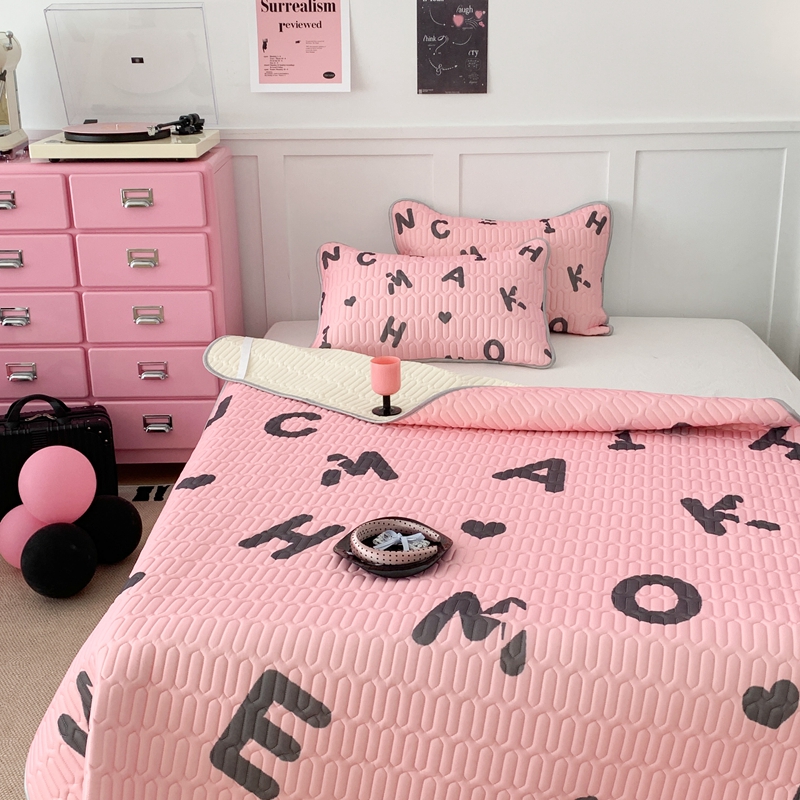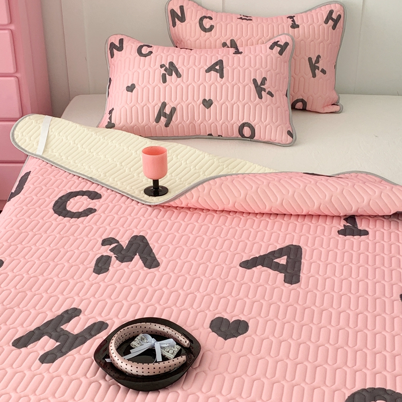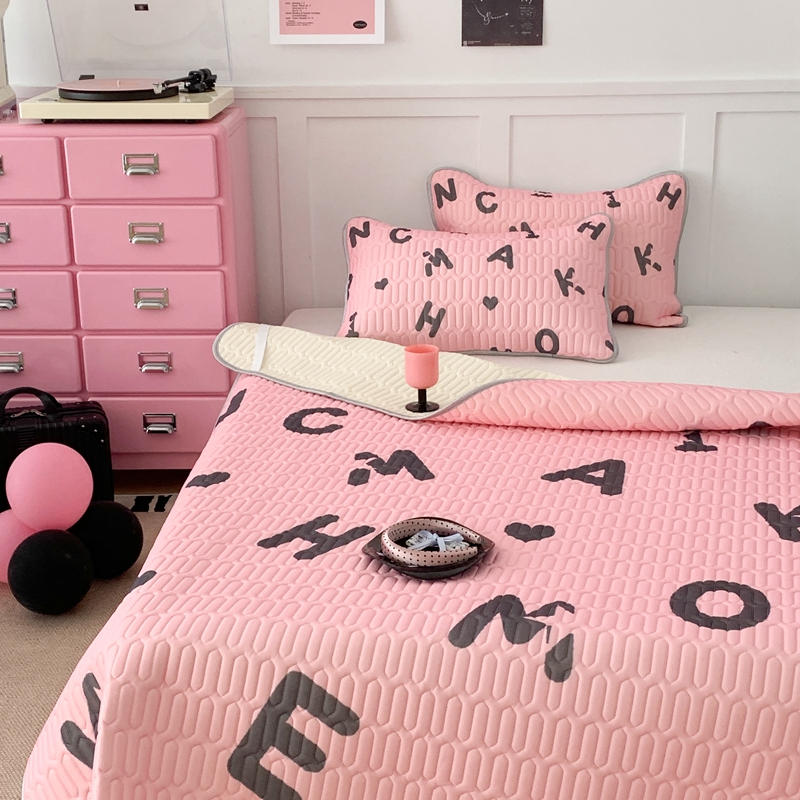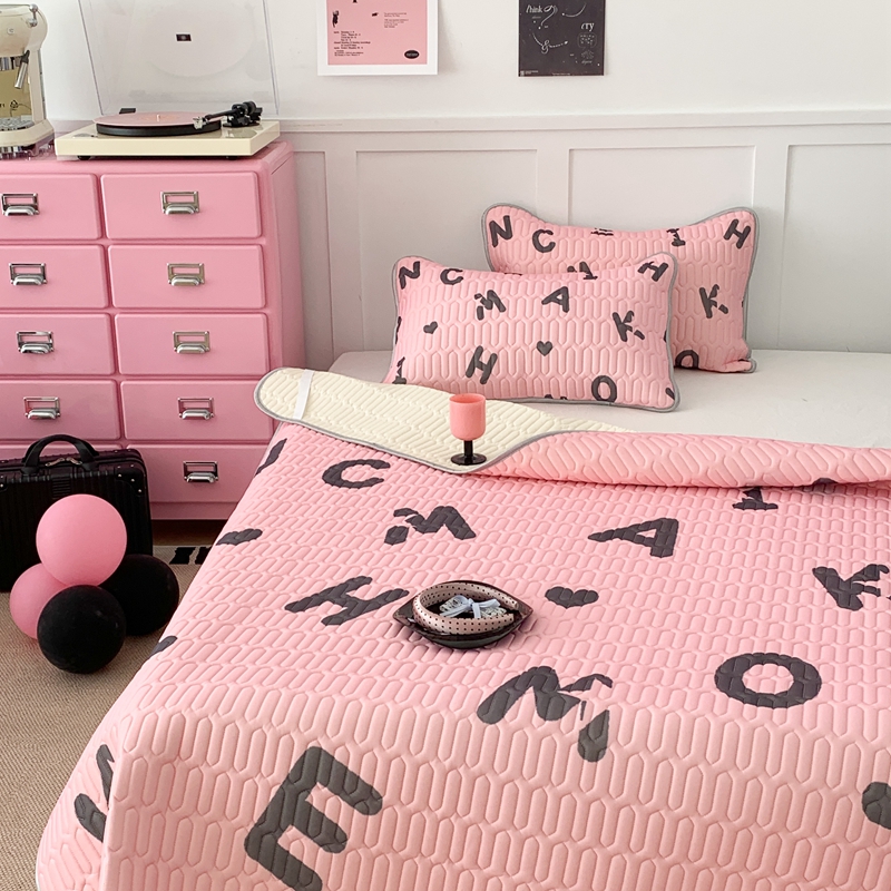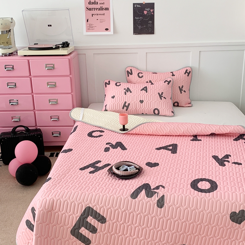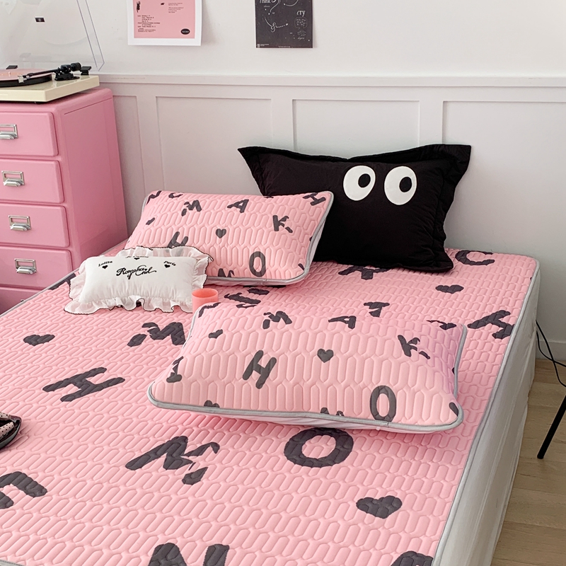 昔可家纺2023新款甜酷黑粉系列乳胶凉席 黑粉字母