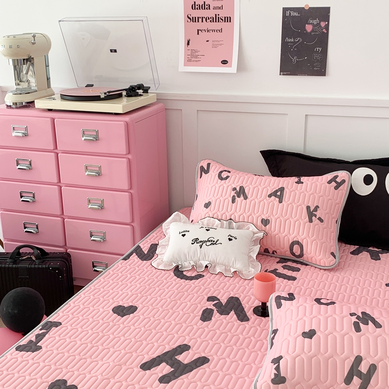 商品名称:昔可家纺2023新款甜酷黑粉系列乳胶凉席 黑粉字母