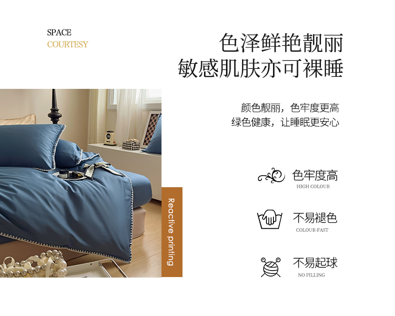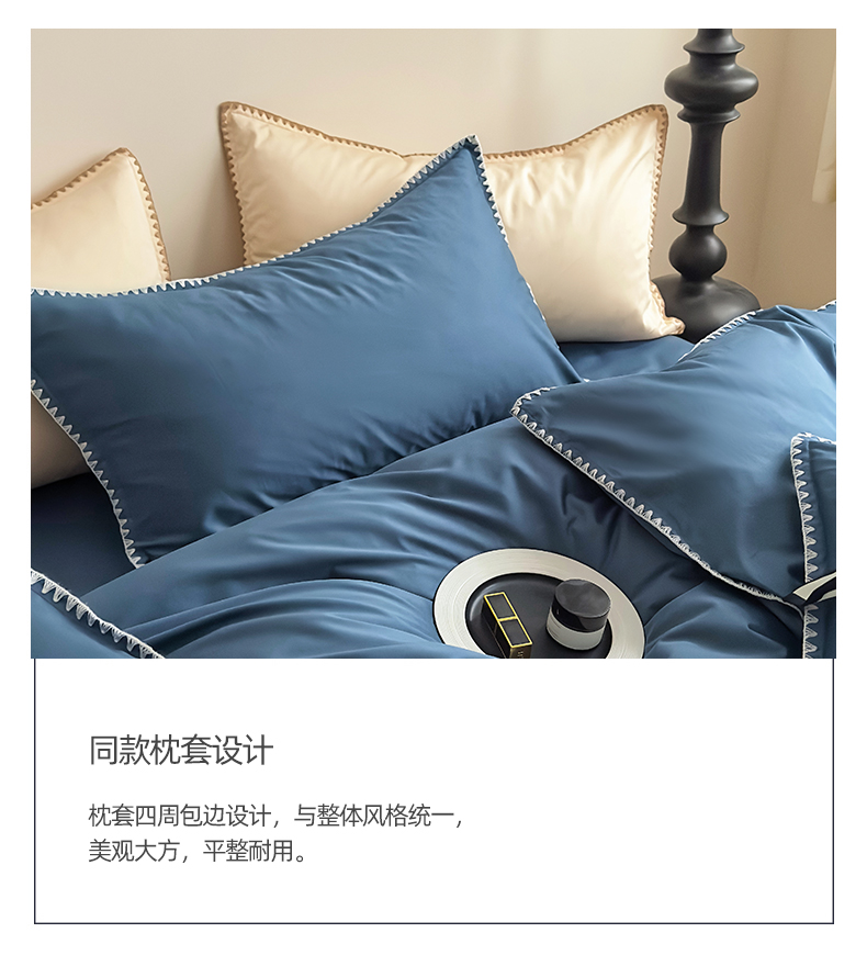 商品名称:怡家居2023新款100支长绒棉贝壳针四件套 梦幻蓝