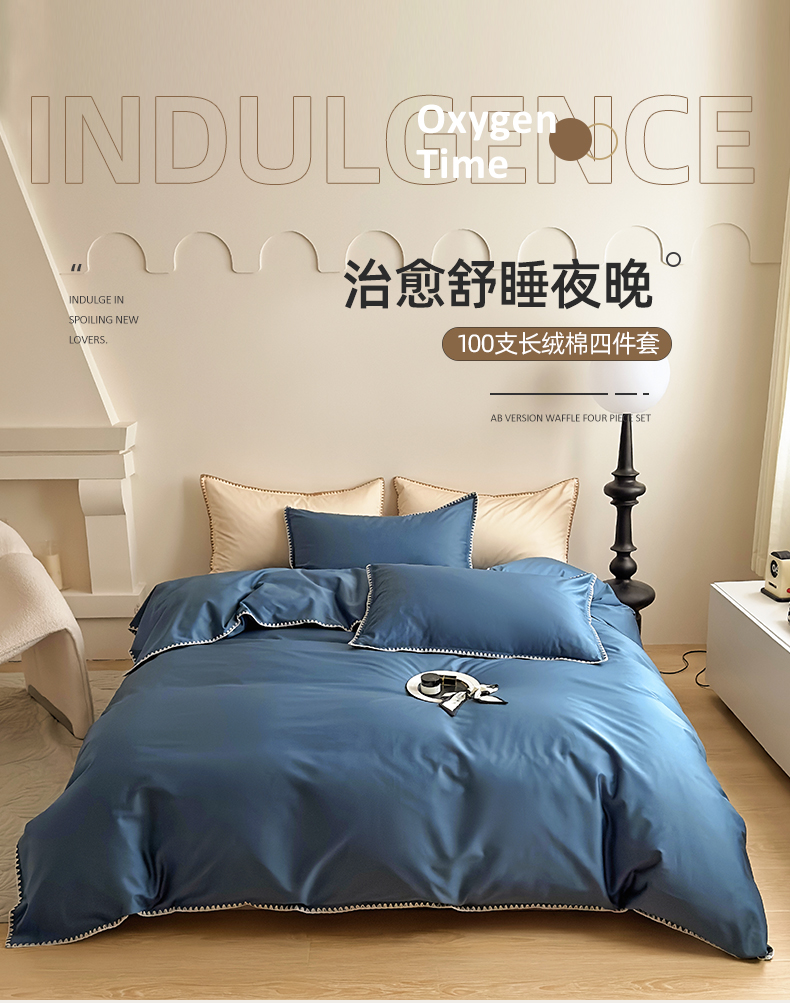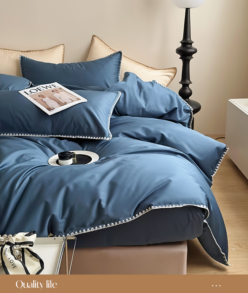 怡家居2023新款100支长绒棉贝壳针四件套 梦幻蓝