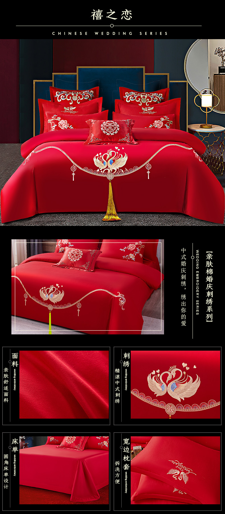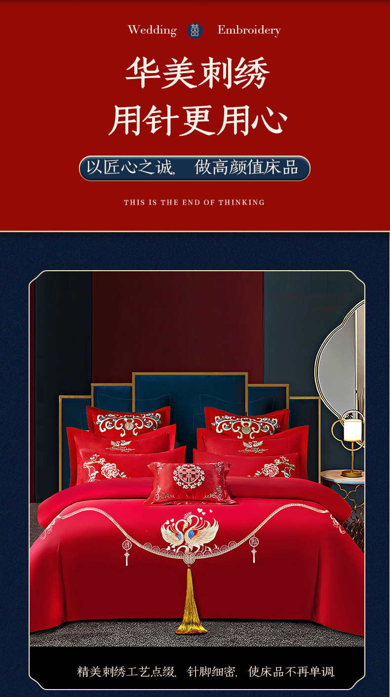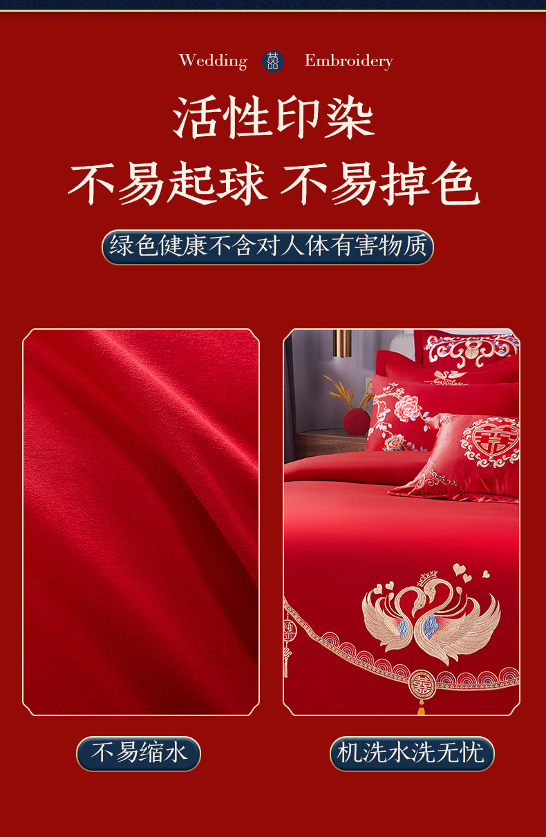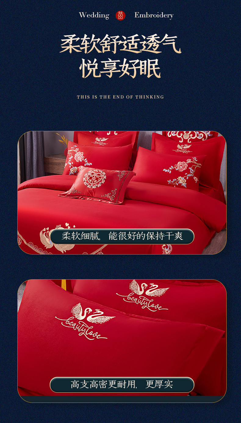 当前位置: 91家纺网 > 商品网购 > 床品套件 > 四件套 > 全棉普通四件套 > 2025新款亲肤棉绣花刺绣婚庆四件套 禧之恋
