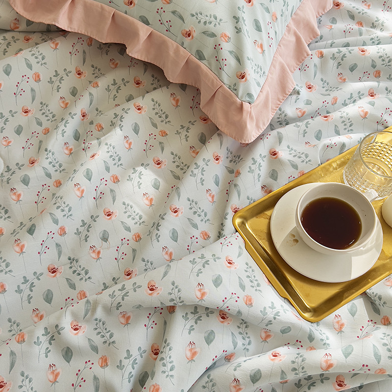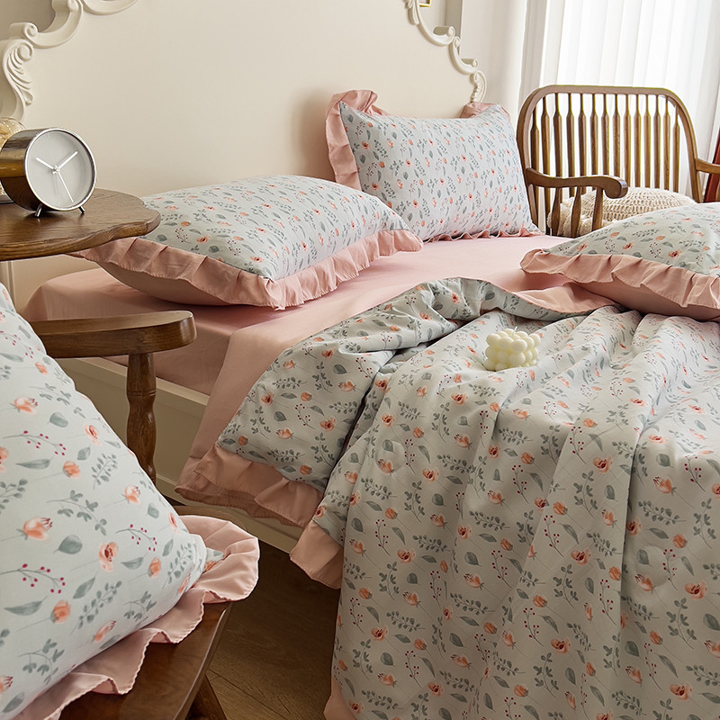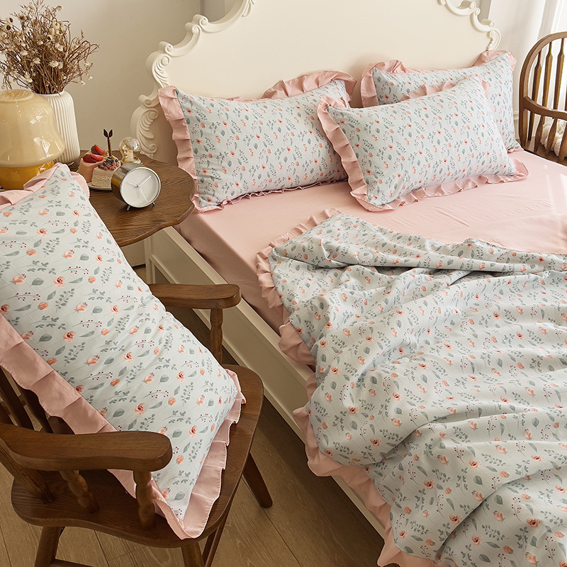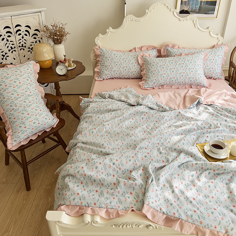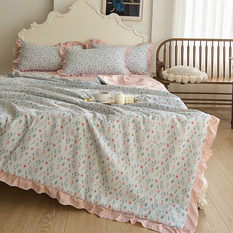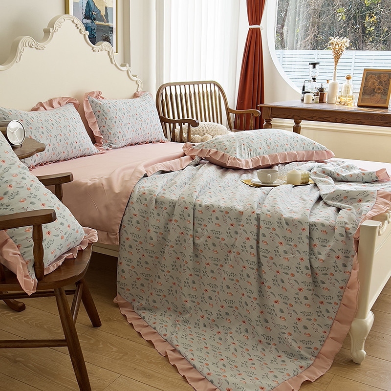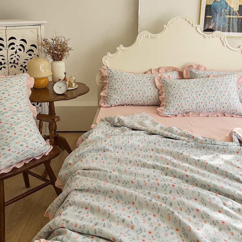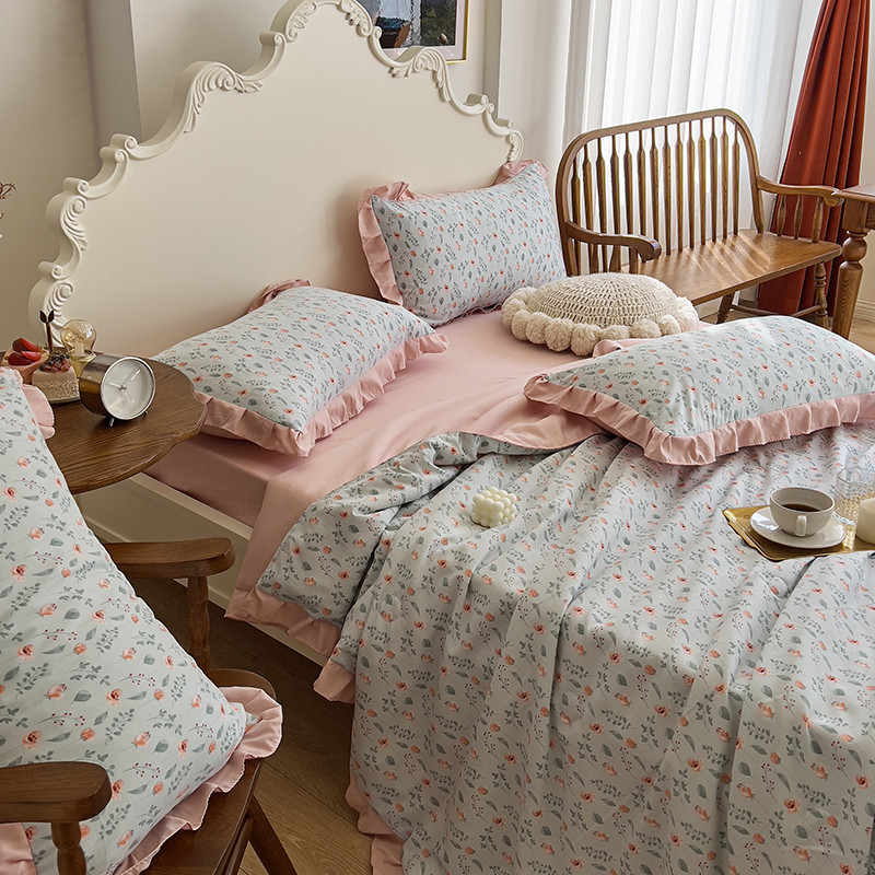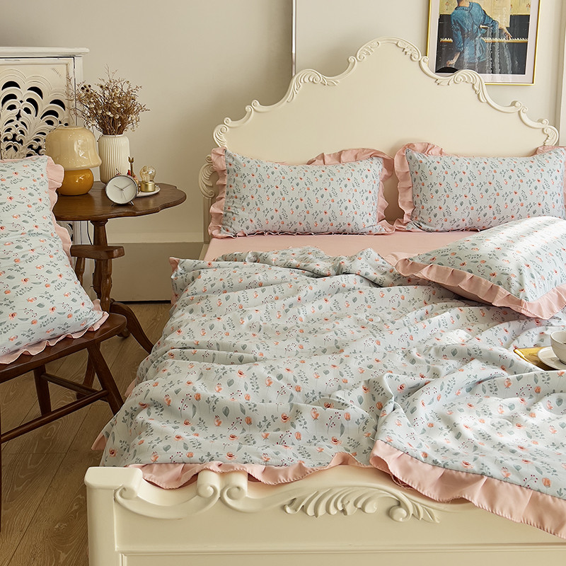 (总)梦莱斯 2025新款田园碎花纯棉花边四件套-床盖款,采薇,花精灵,花开半夏,莱茵,恋爱季,绿叶仙踪,糜花似锦,糜花熙悦,秘境花园