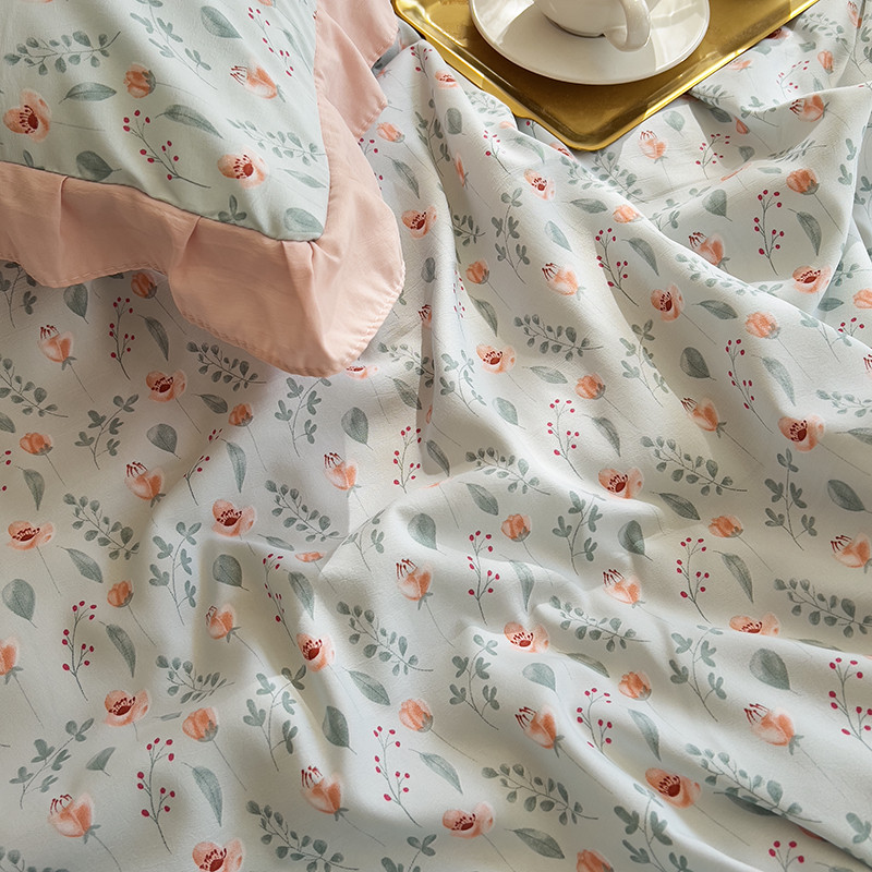 梦莱斯 2023新款水洗棉麻印花夏被四件套 暗香米色