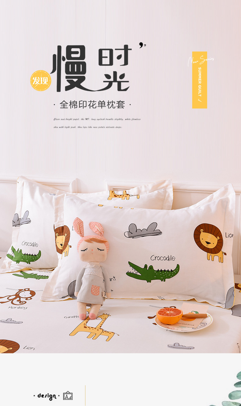 多品家纺 2023新款12868全棉双针单枕套 动物世界