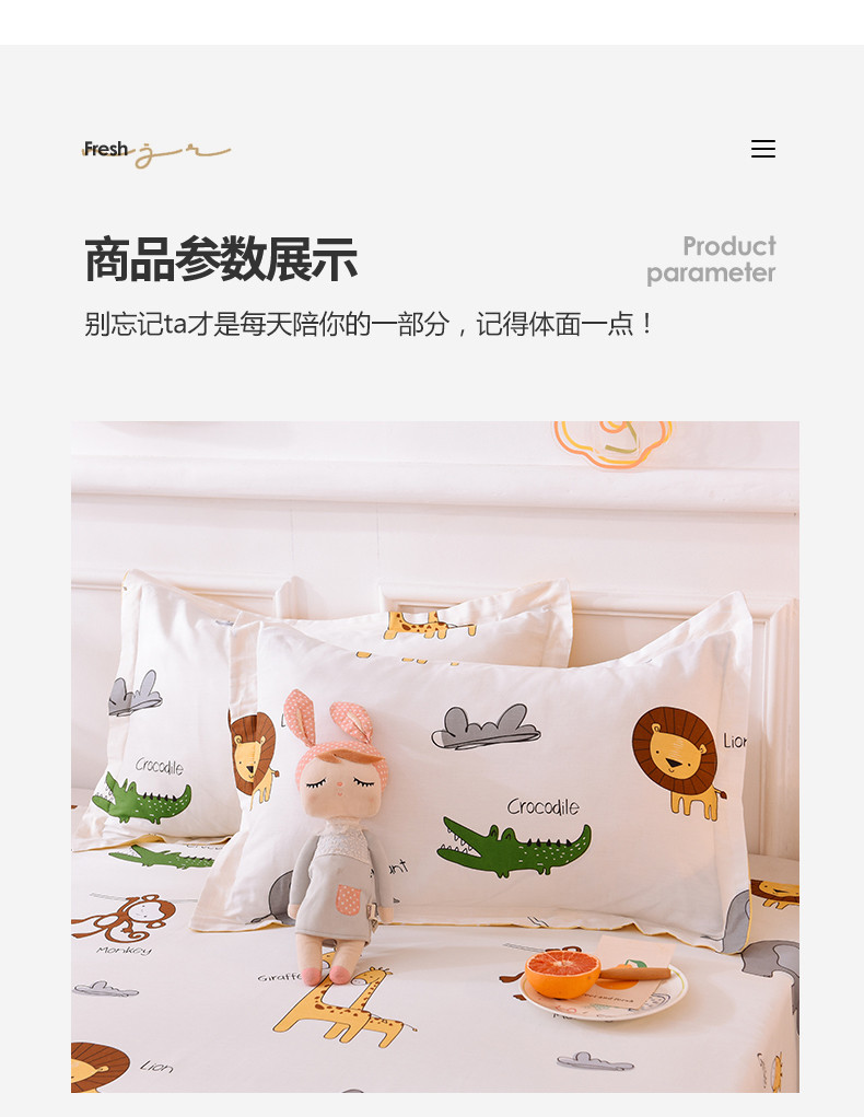 商品名称:多品家纺 2023新款12868全棉双针单枕套 动物世界
