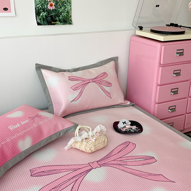 昔可家纺 2023新款高克重加厚华夫格凉感软席 爱心丝带