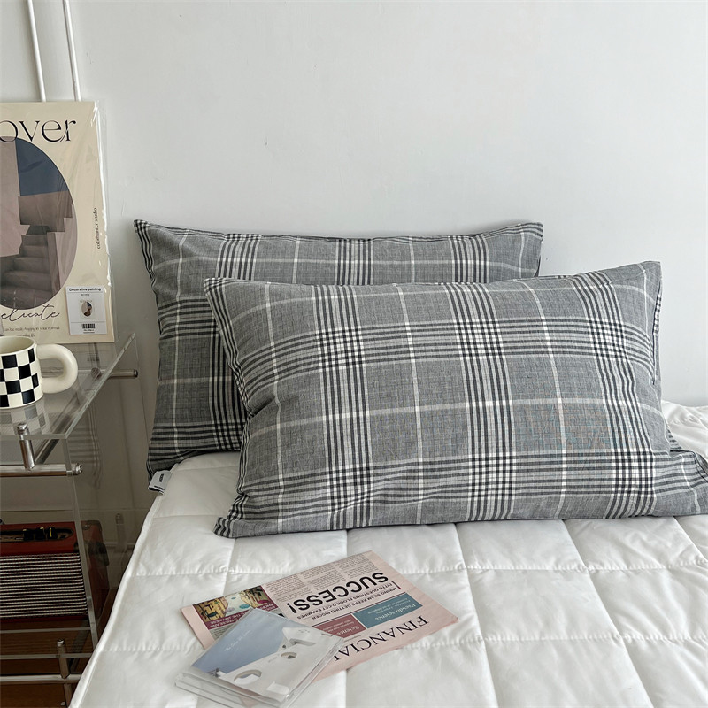 北欧良品 2023新款A类AB版双面色织水洗棉单枕套 格纹灰+岩石灰