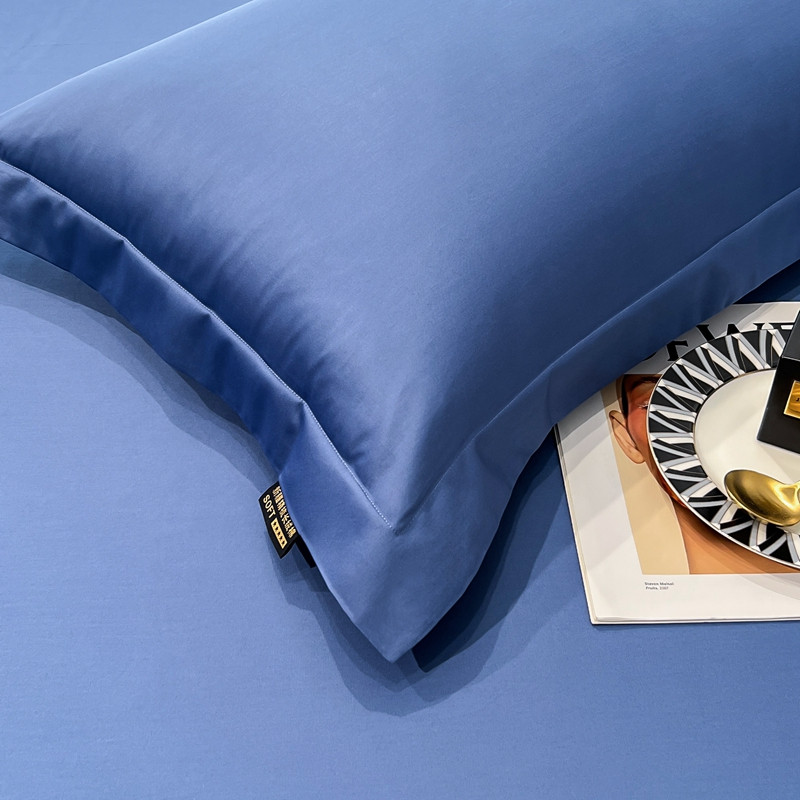 商品名称:莱阁亿 2023新款高支高密纯色新疆长绒棉四件套单品枕套 巴黎蓝