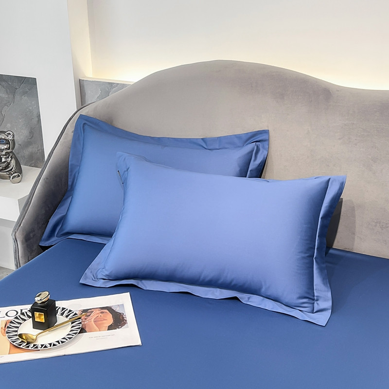 莱阁亿 2023新款高支高密纯色新疆长绒棉四件套单品枕套 巴黎蓝