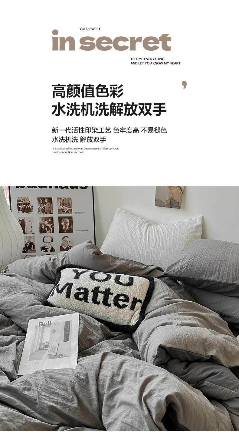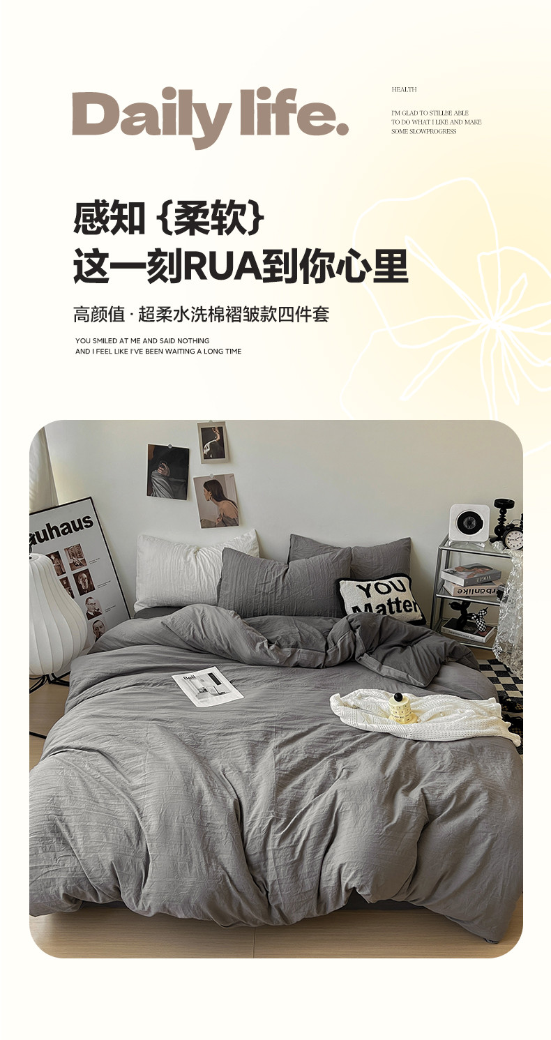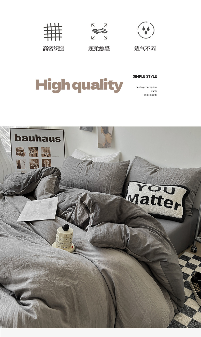 商品名称:水墨江南 2023新款超柔水洗棉简约纯色四件套 浅灰深灰