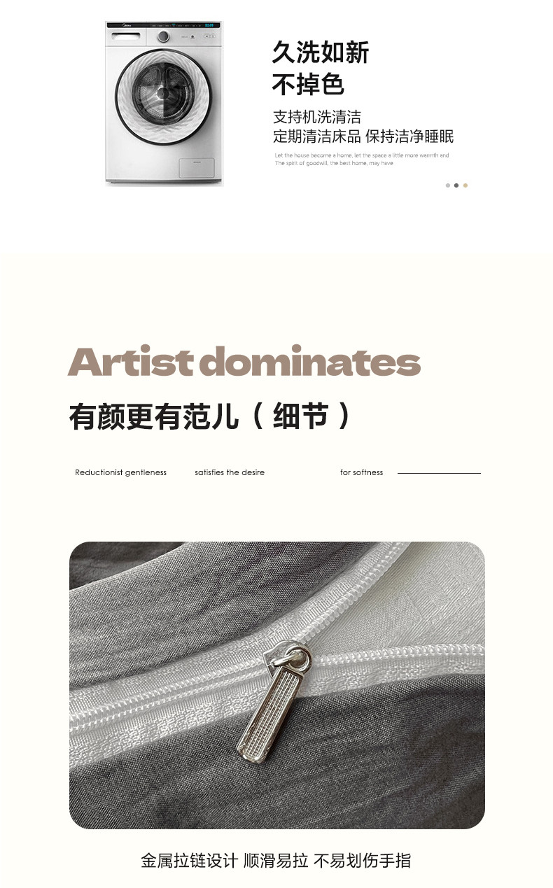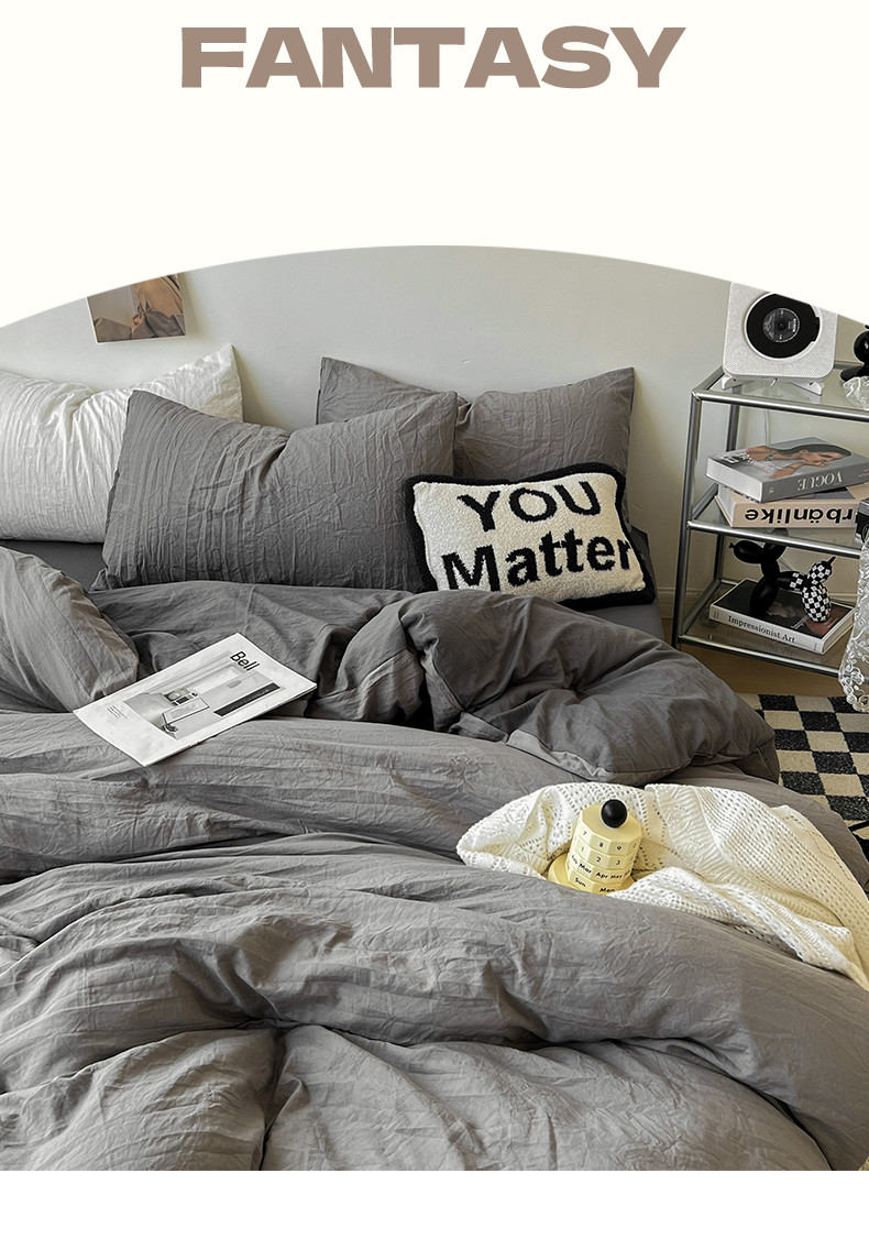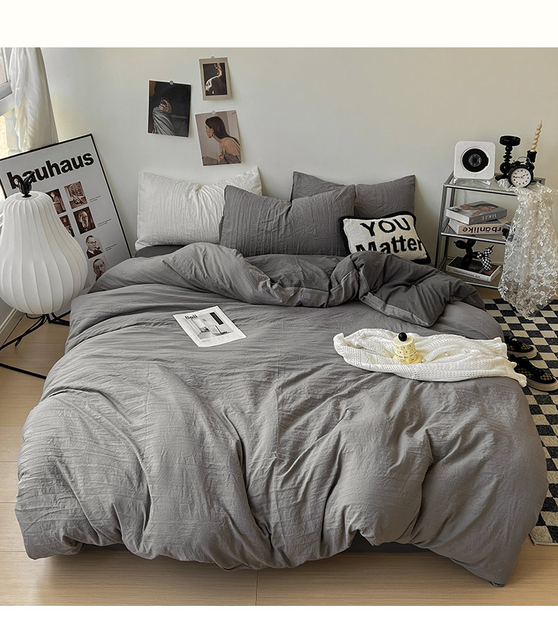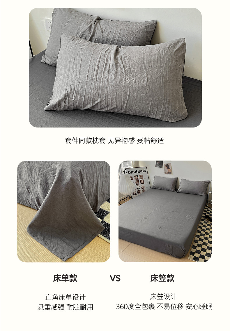 商品名称:水墨江南 2023新款超柔水洗棉简约纯色四件套 浅灰深灰