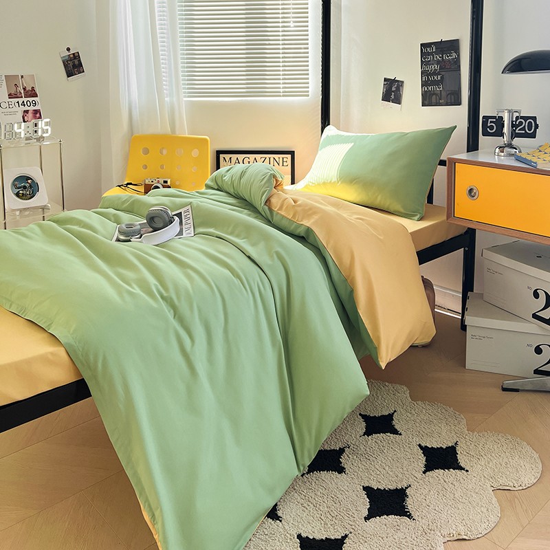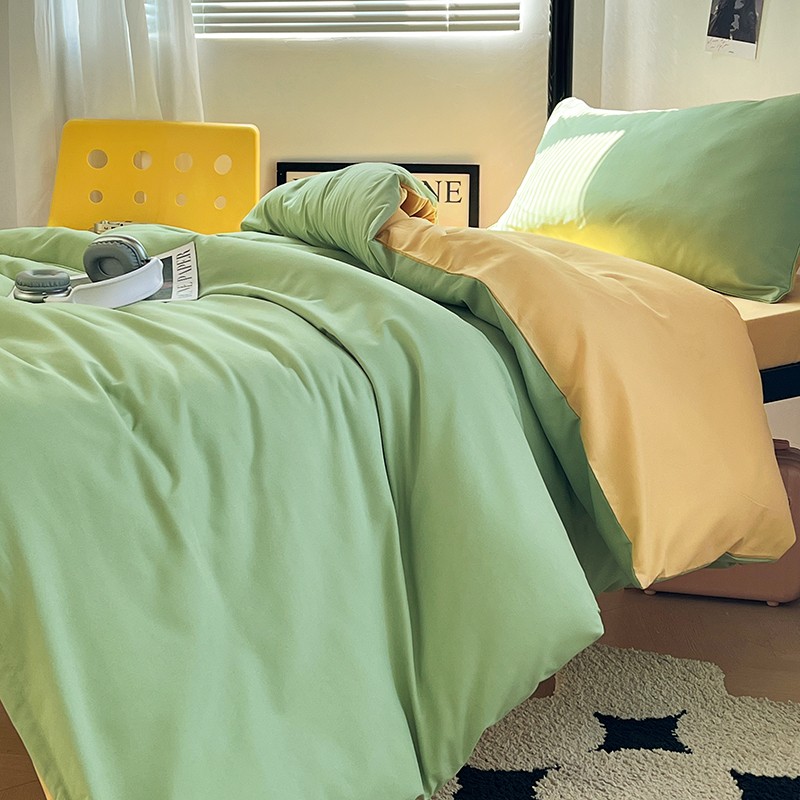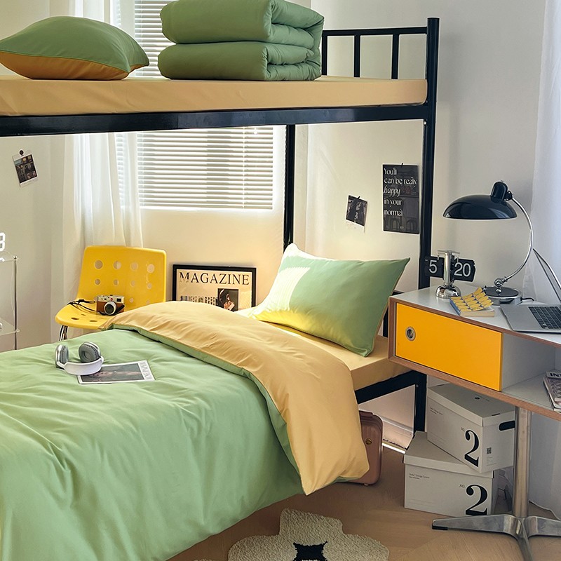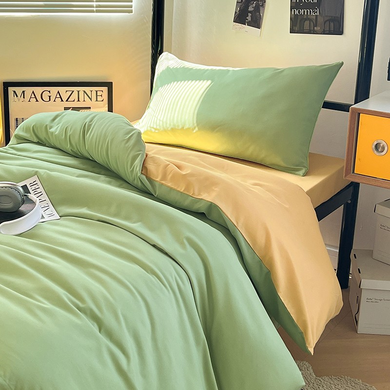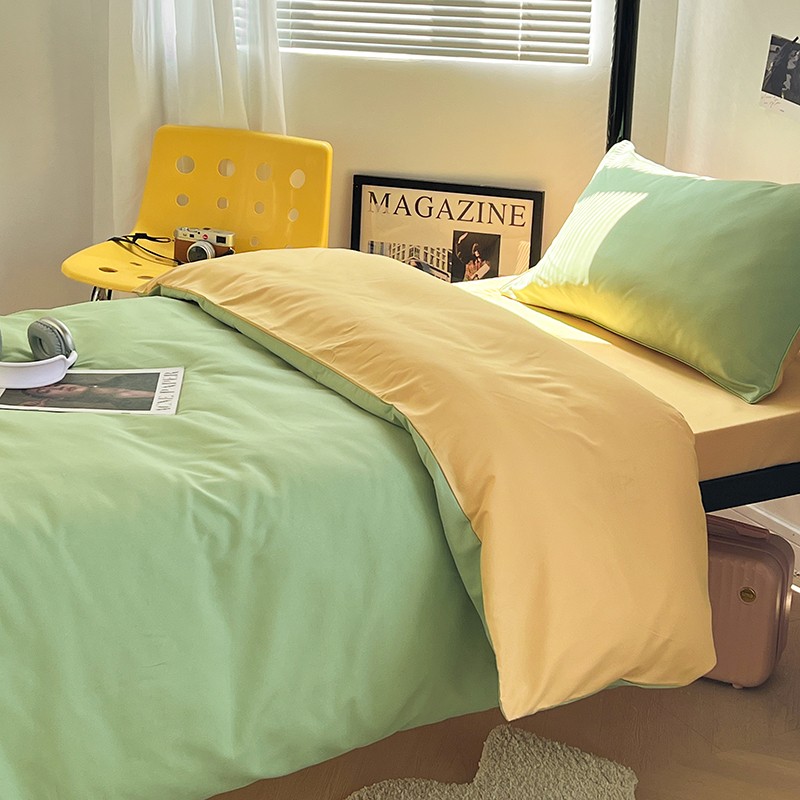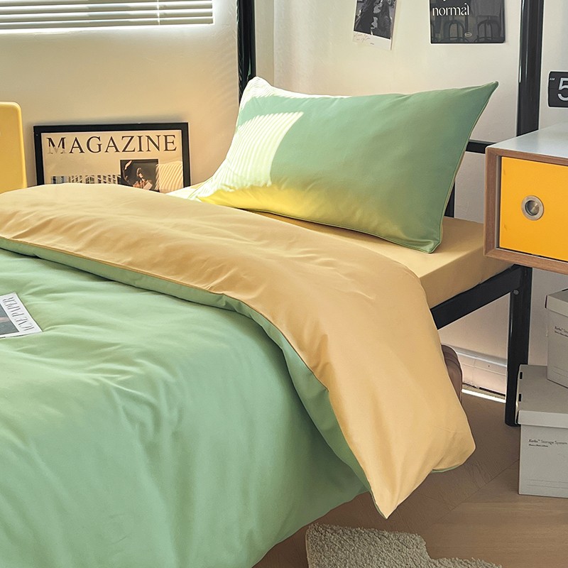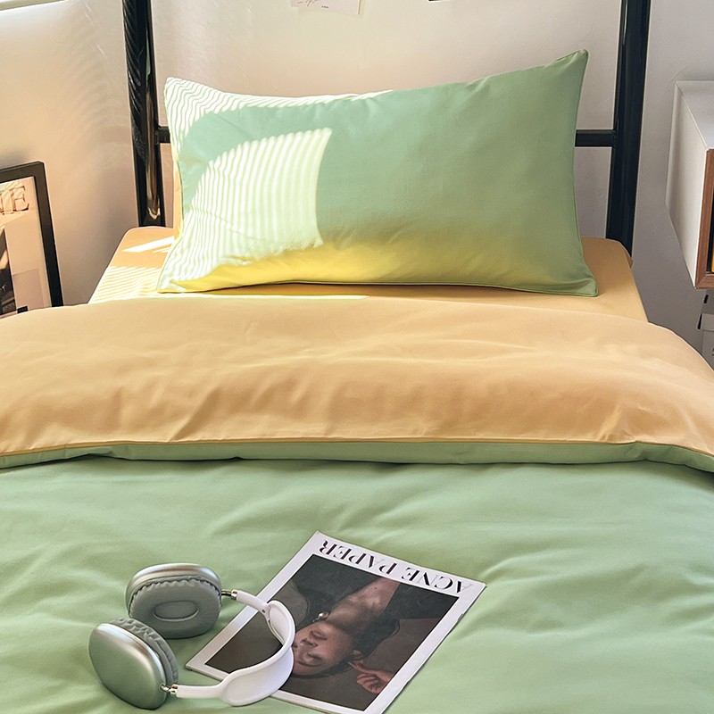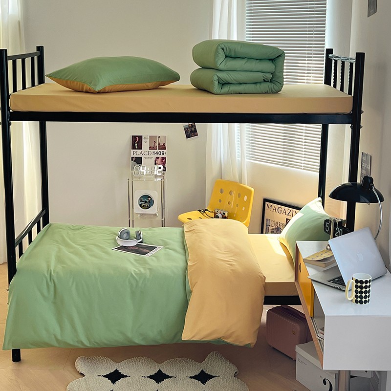 当前位置: 91家纺网 > 商品网购 > 床品套件 > 四件套 > 化纤普通四件套 > 蓝淋家纺 2023新款水洗棉学生宿舍亲肤三件套四件套 浅绿浅驼